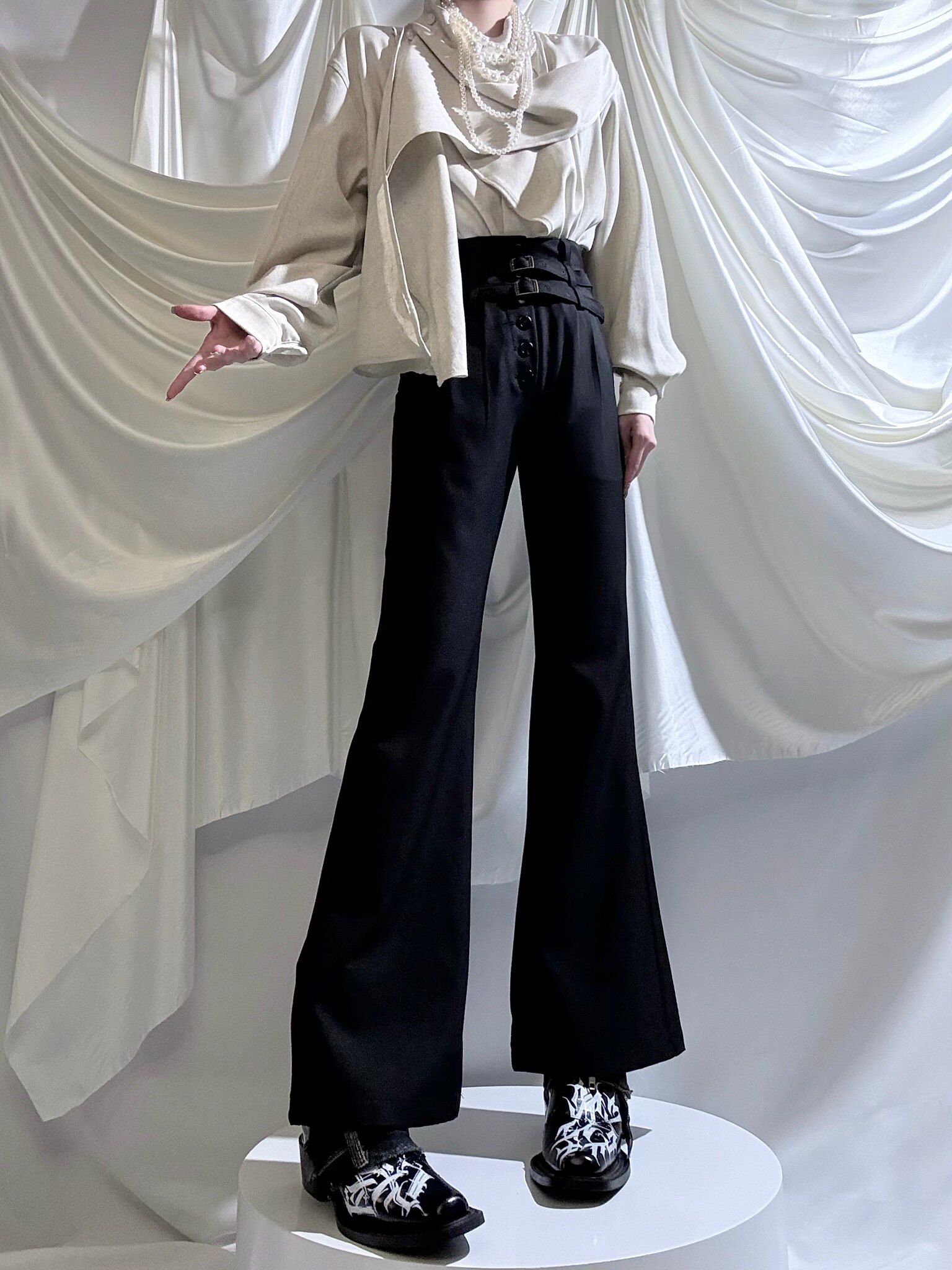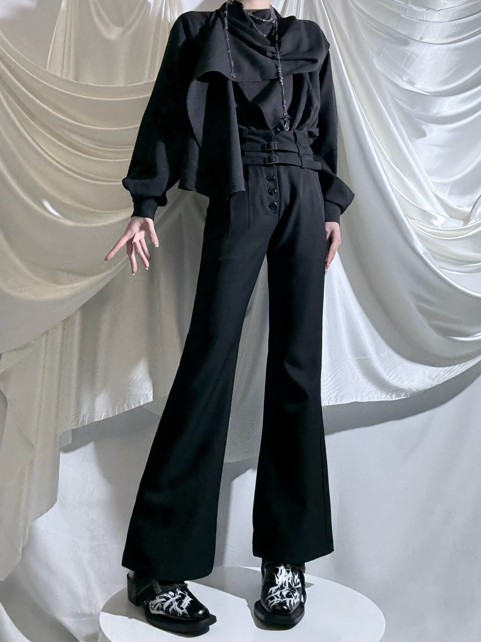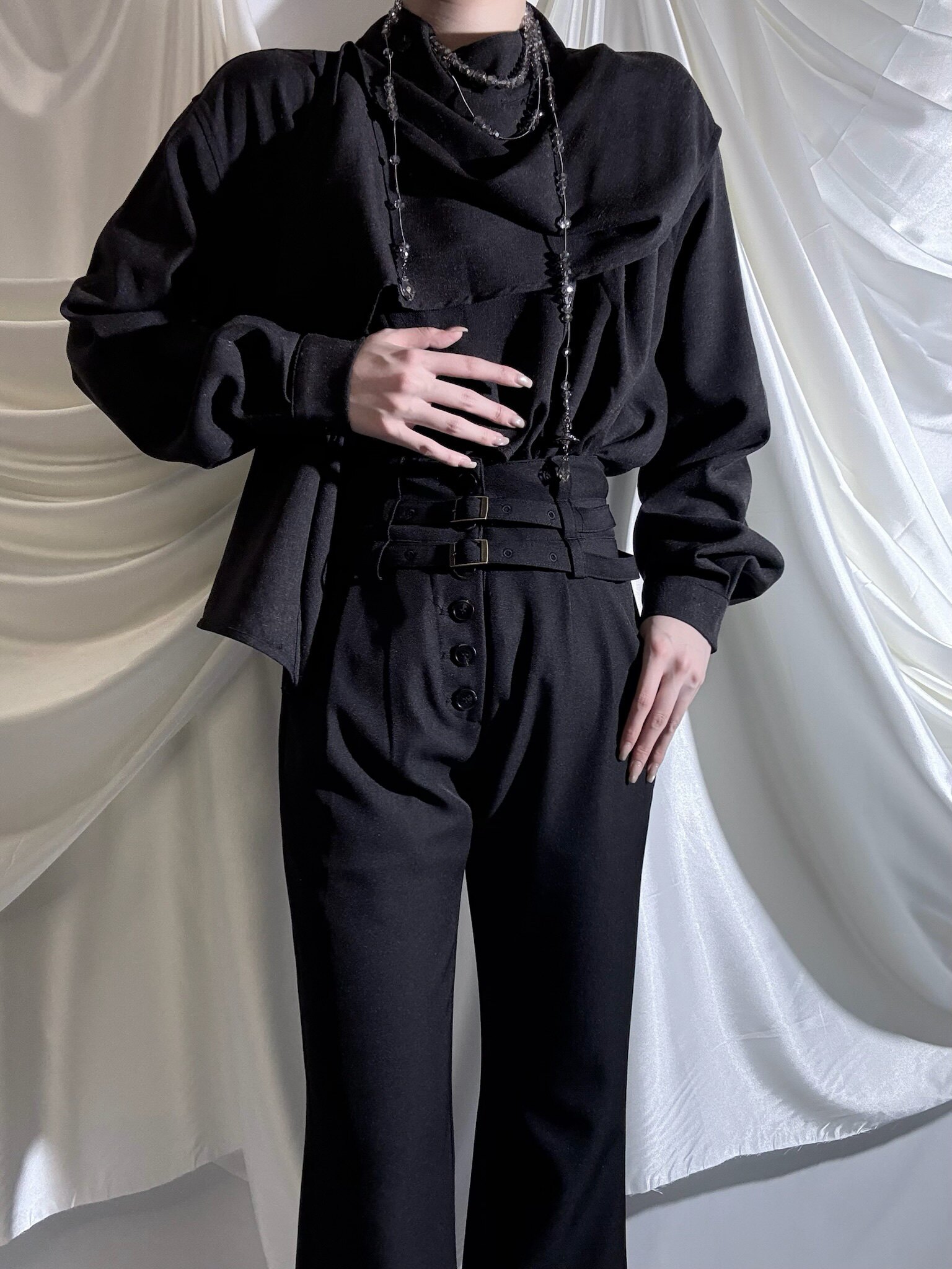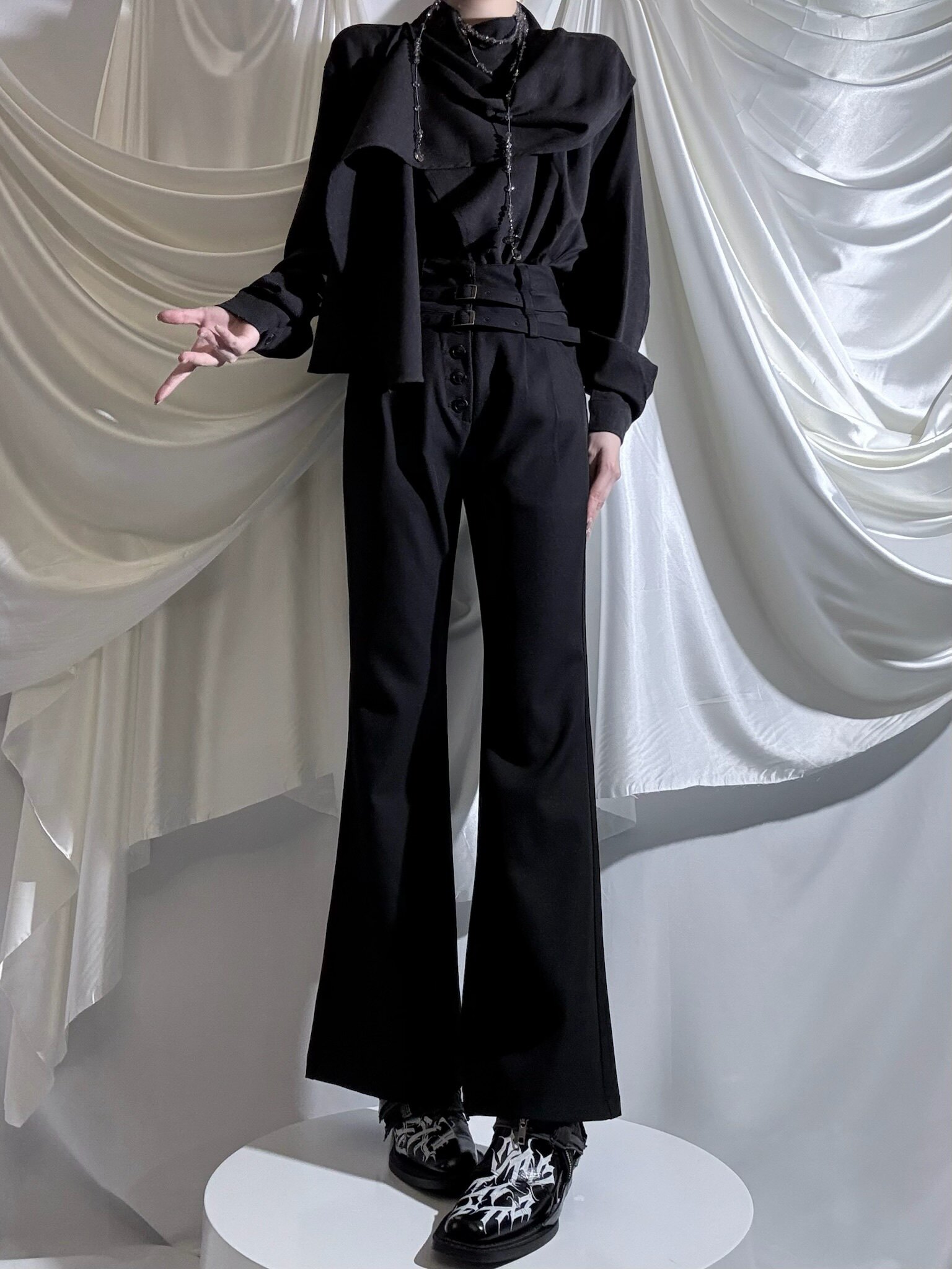 Aont【秋冬加絨版】雙生子套裝原創設計感襯衫高級感雙腰帶騎士褲