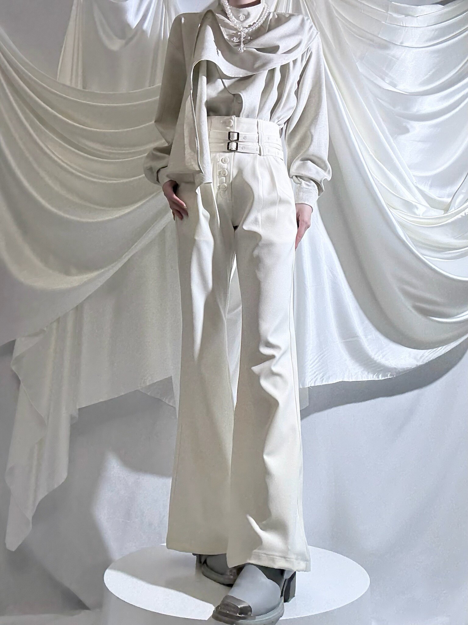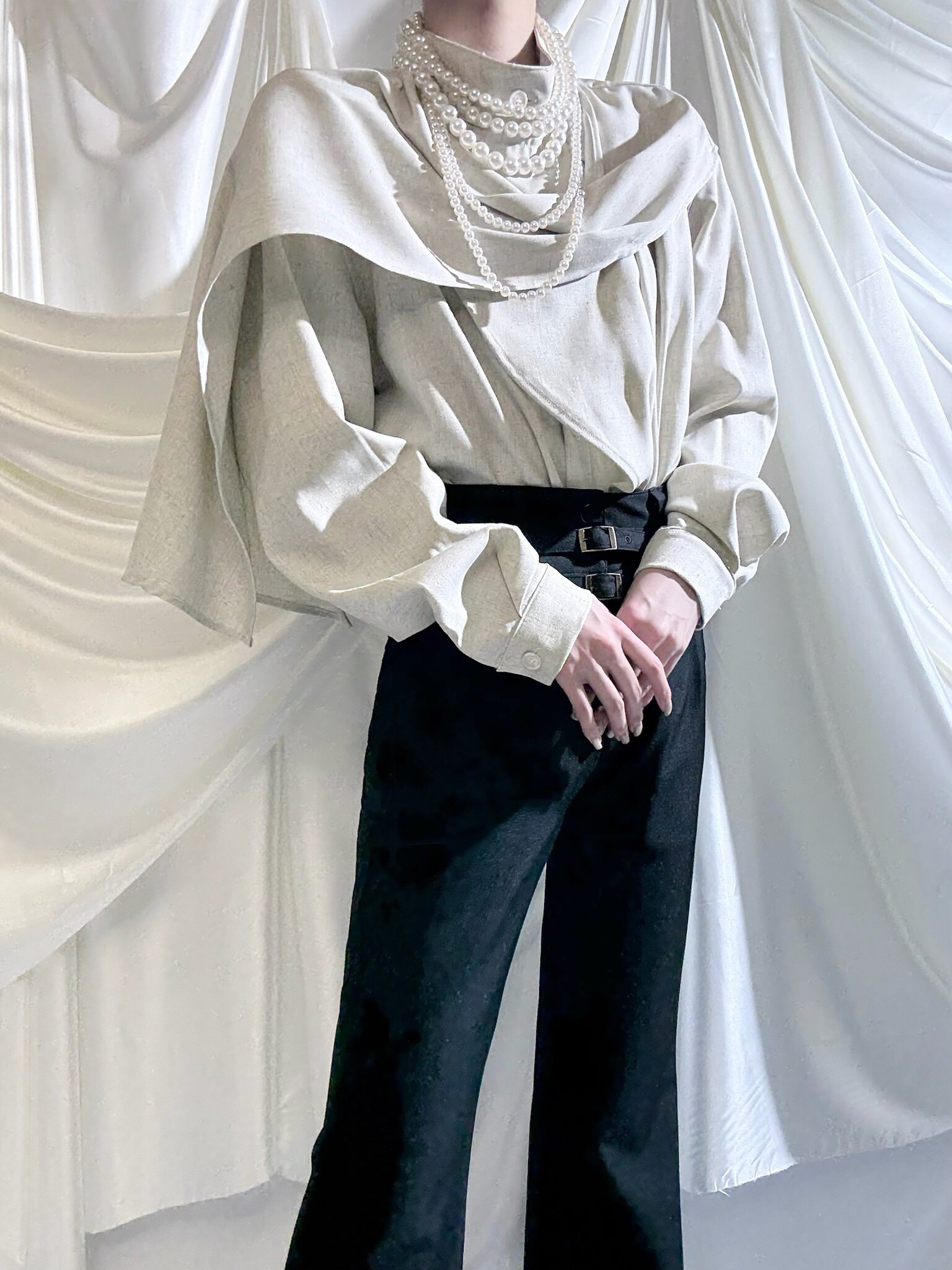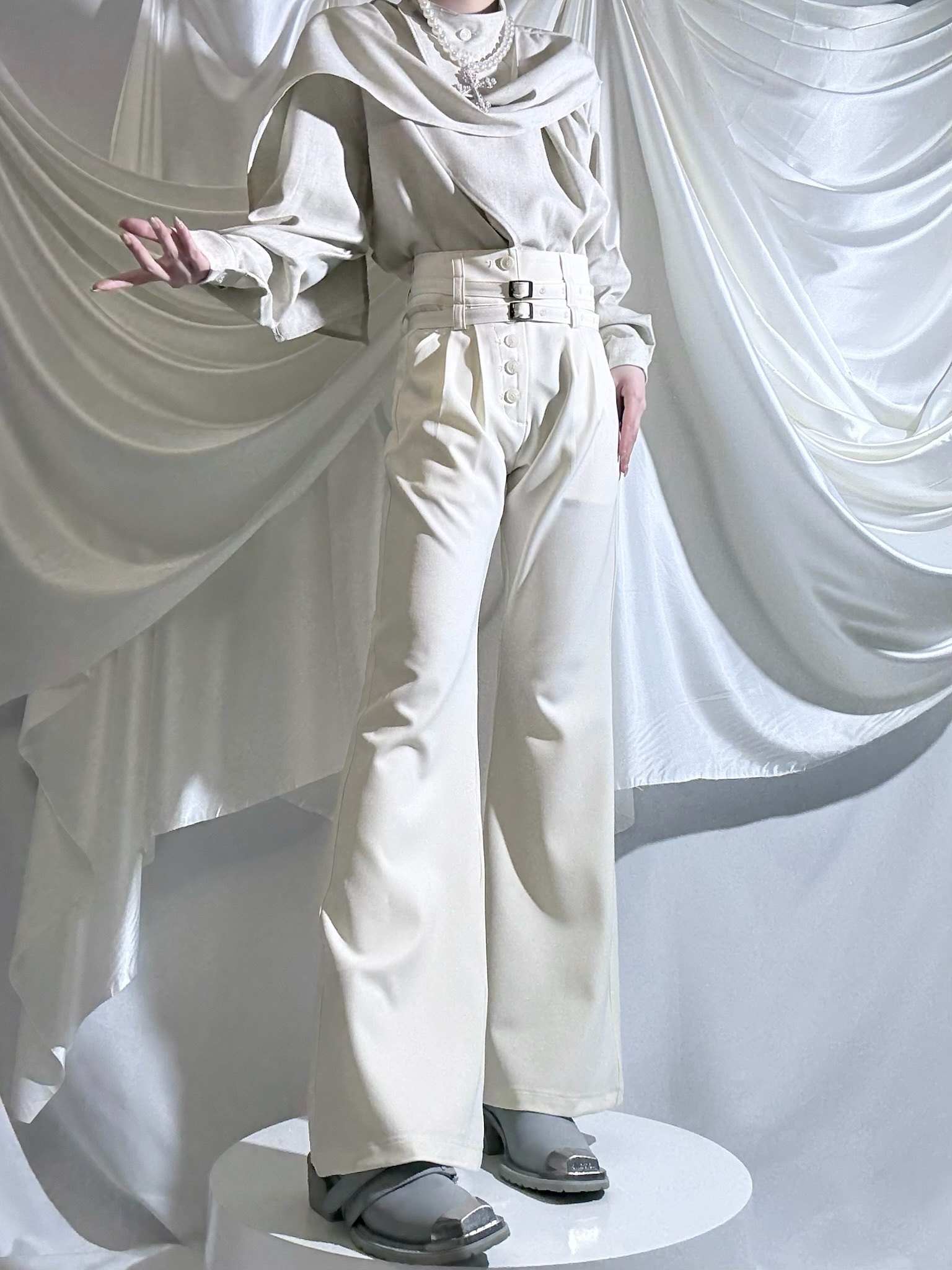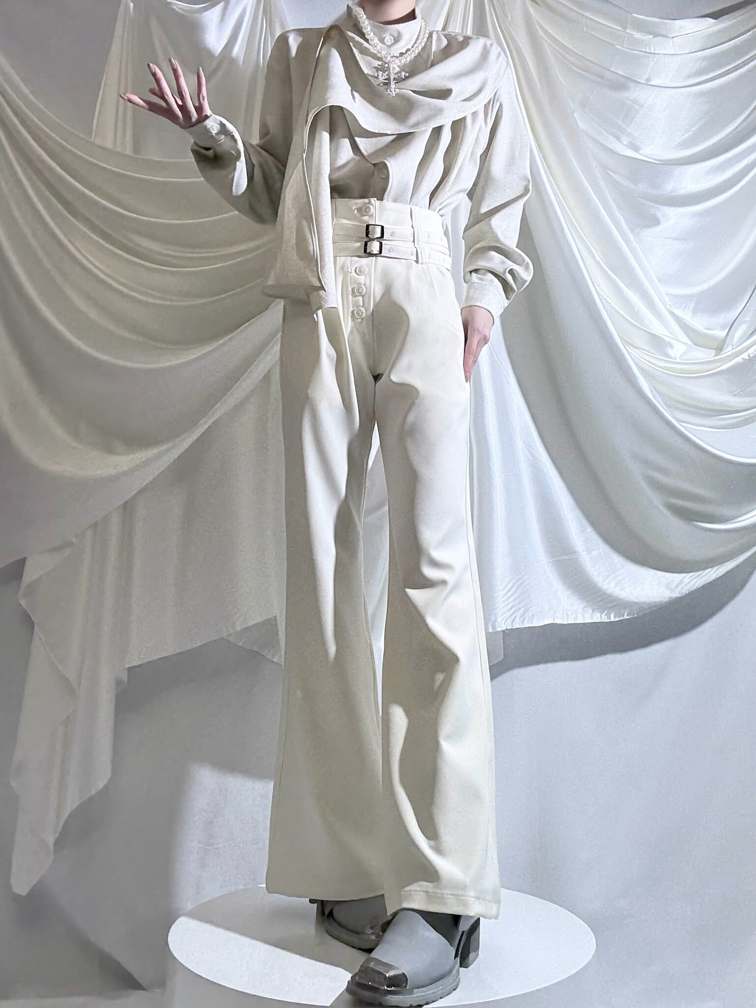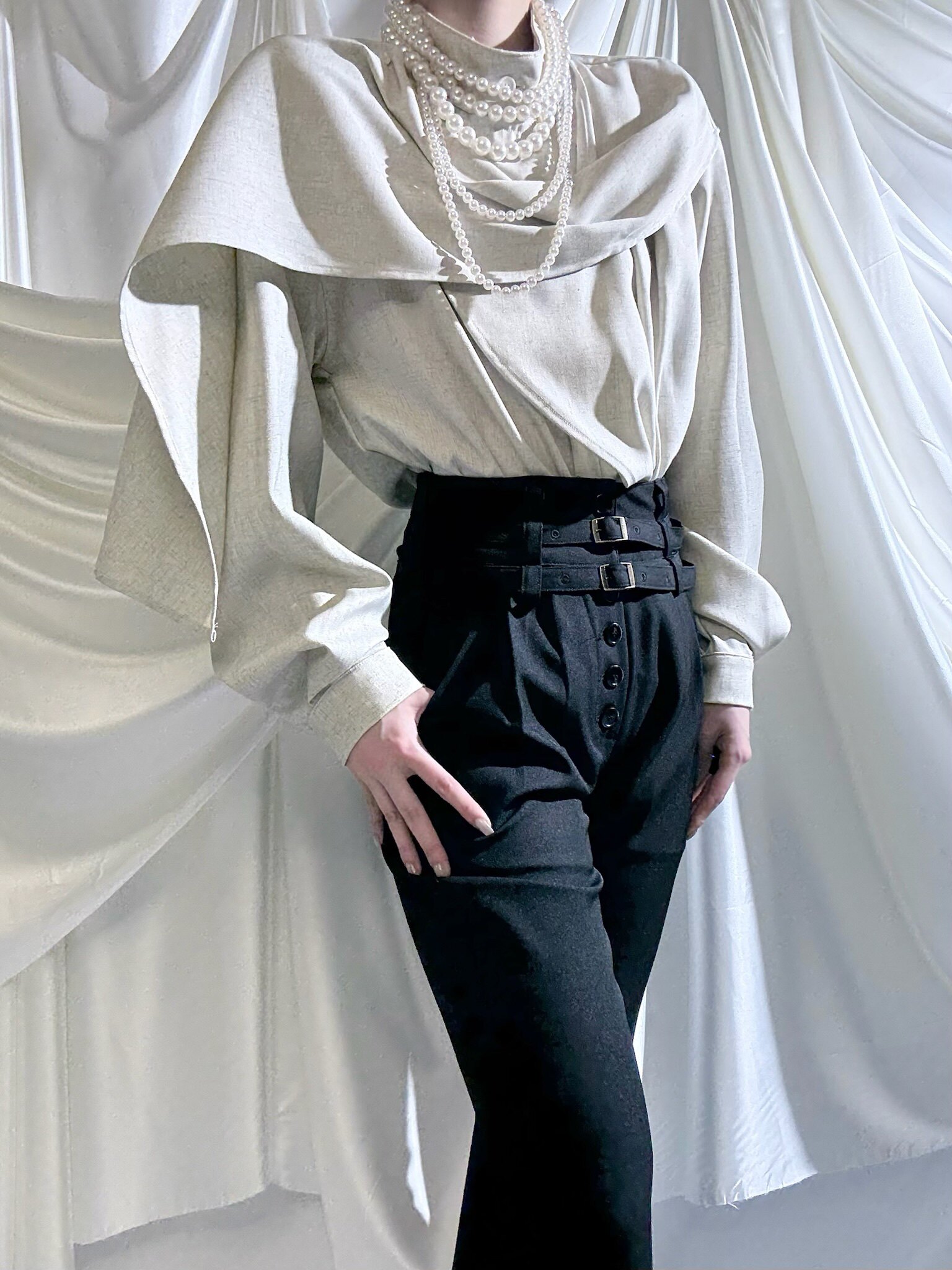 Aont【秋冬加絨版】雙生子套裝原創設計感襯衫高級感雙腰帶騎士褲