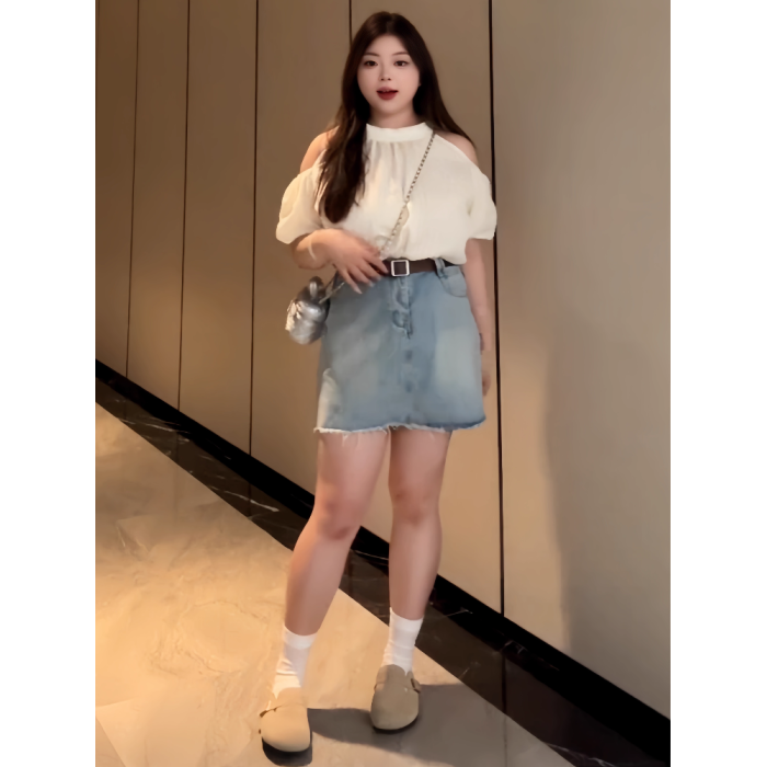 大碼女裝法式絕美氣質短袖襯衫夏季胖mm今年流行漂亮小衫露肩上衣