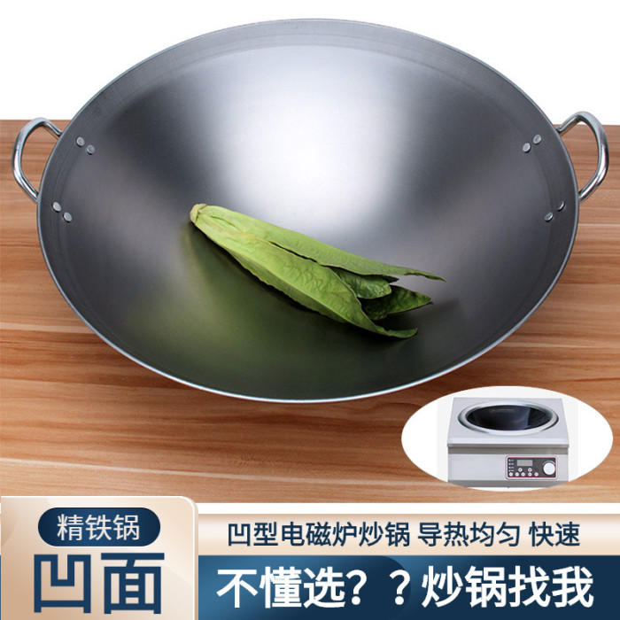 酒店凹面火鍋電磁爐灶炒鐵鍋老鐵炒菜鍋不鏽鋼不沾鍋通用鍋具