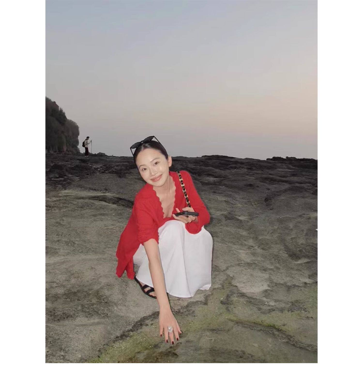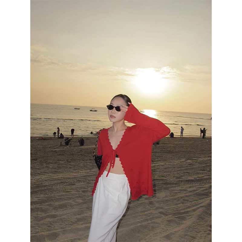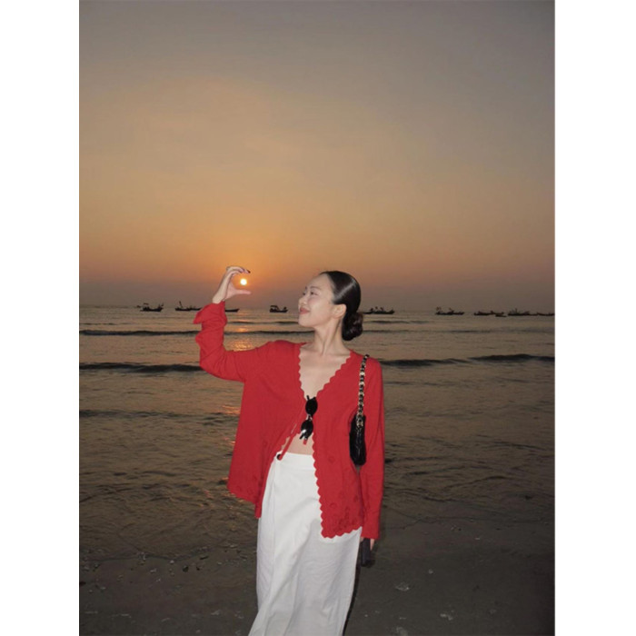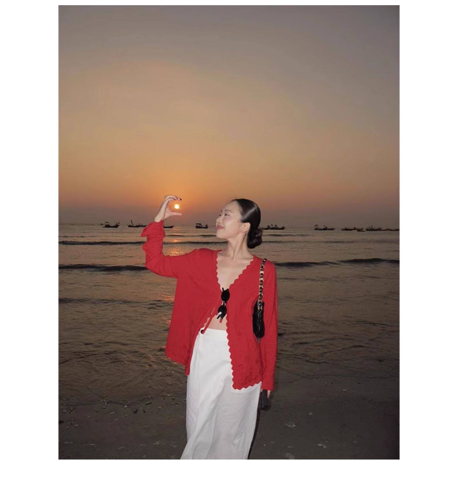 Turn right/陳大腿 美式復古設計感系帶針織開衫高級百搭長袖上衣