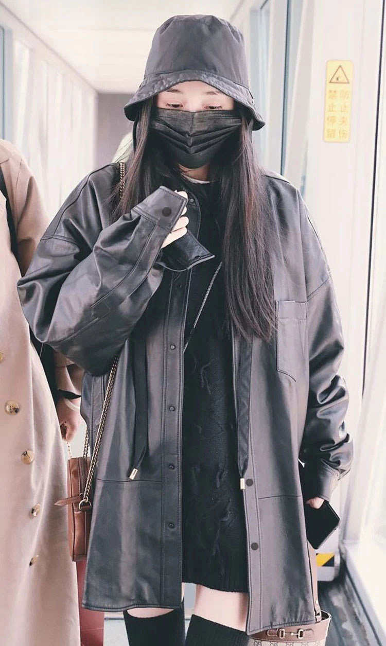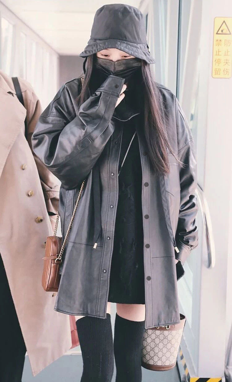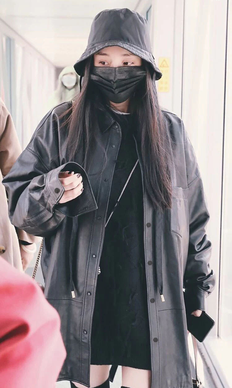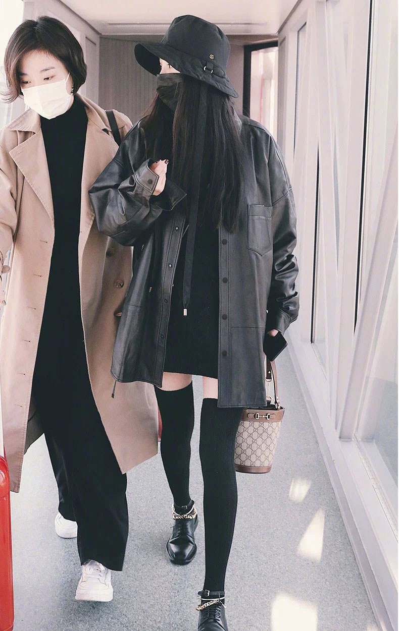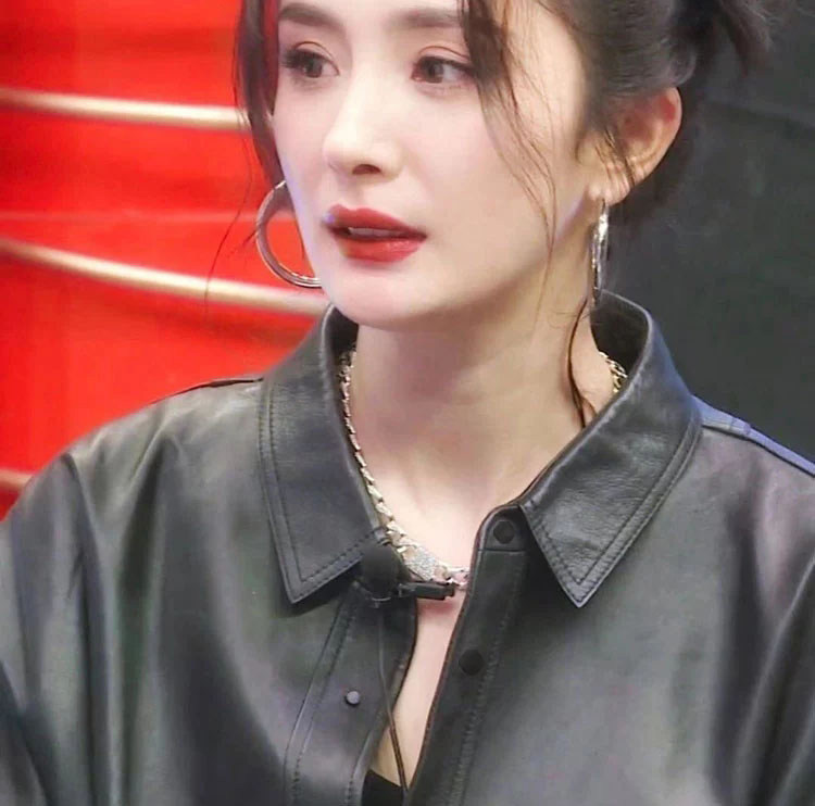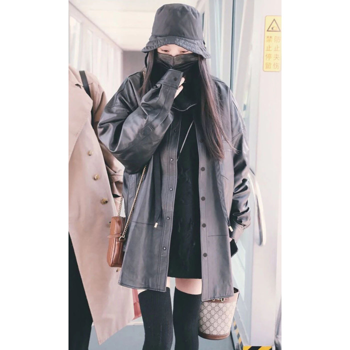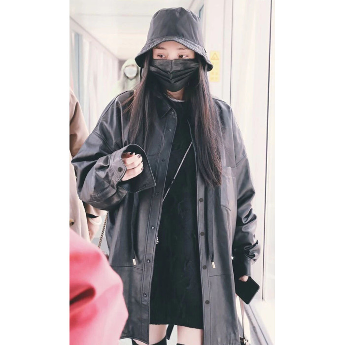 楊冪明星同款女春秋季法式機車PU皮衣外套中長款洋氣黑色襯衫衣服