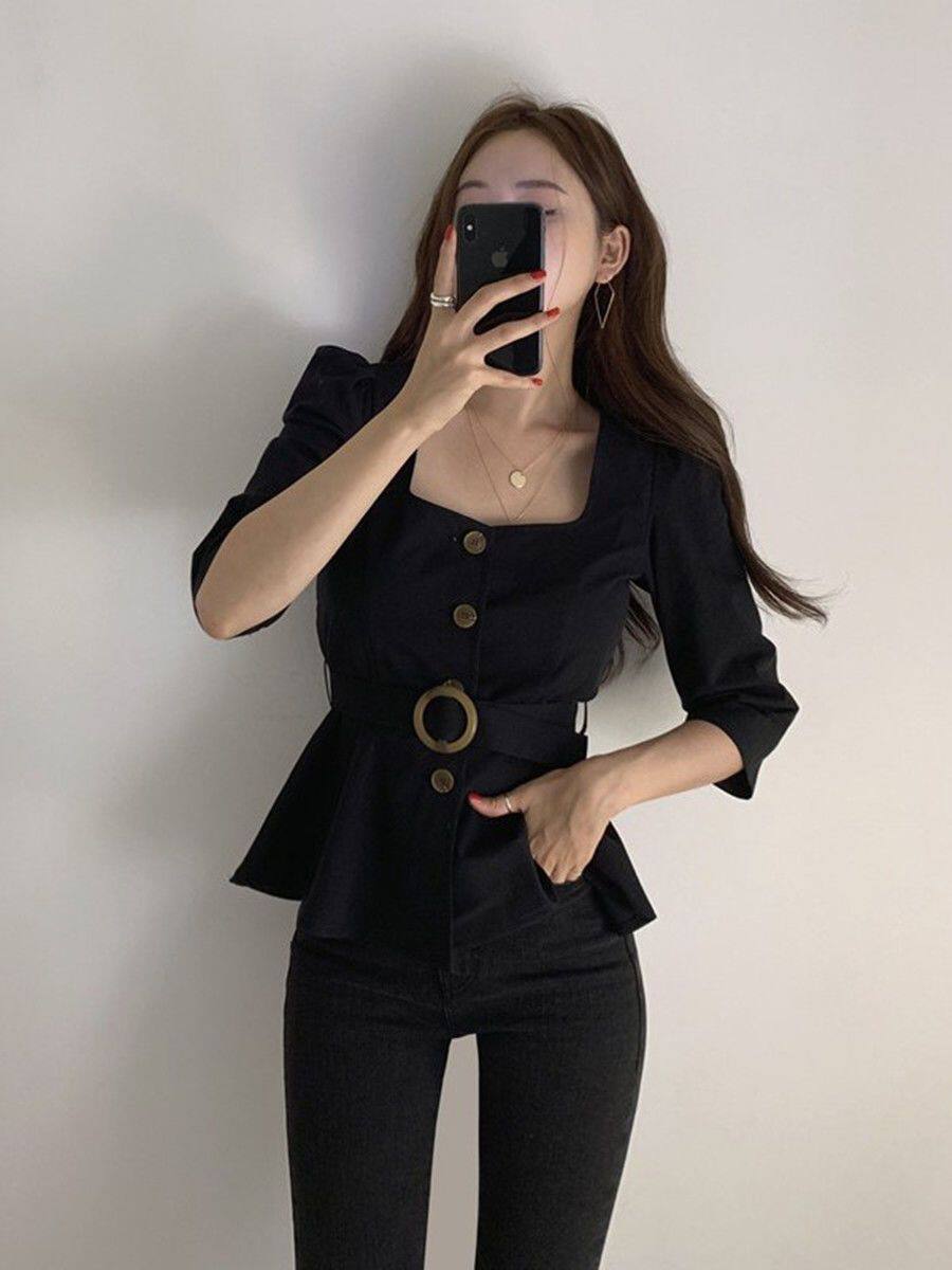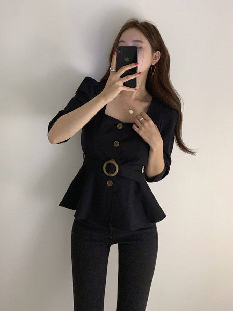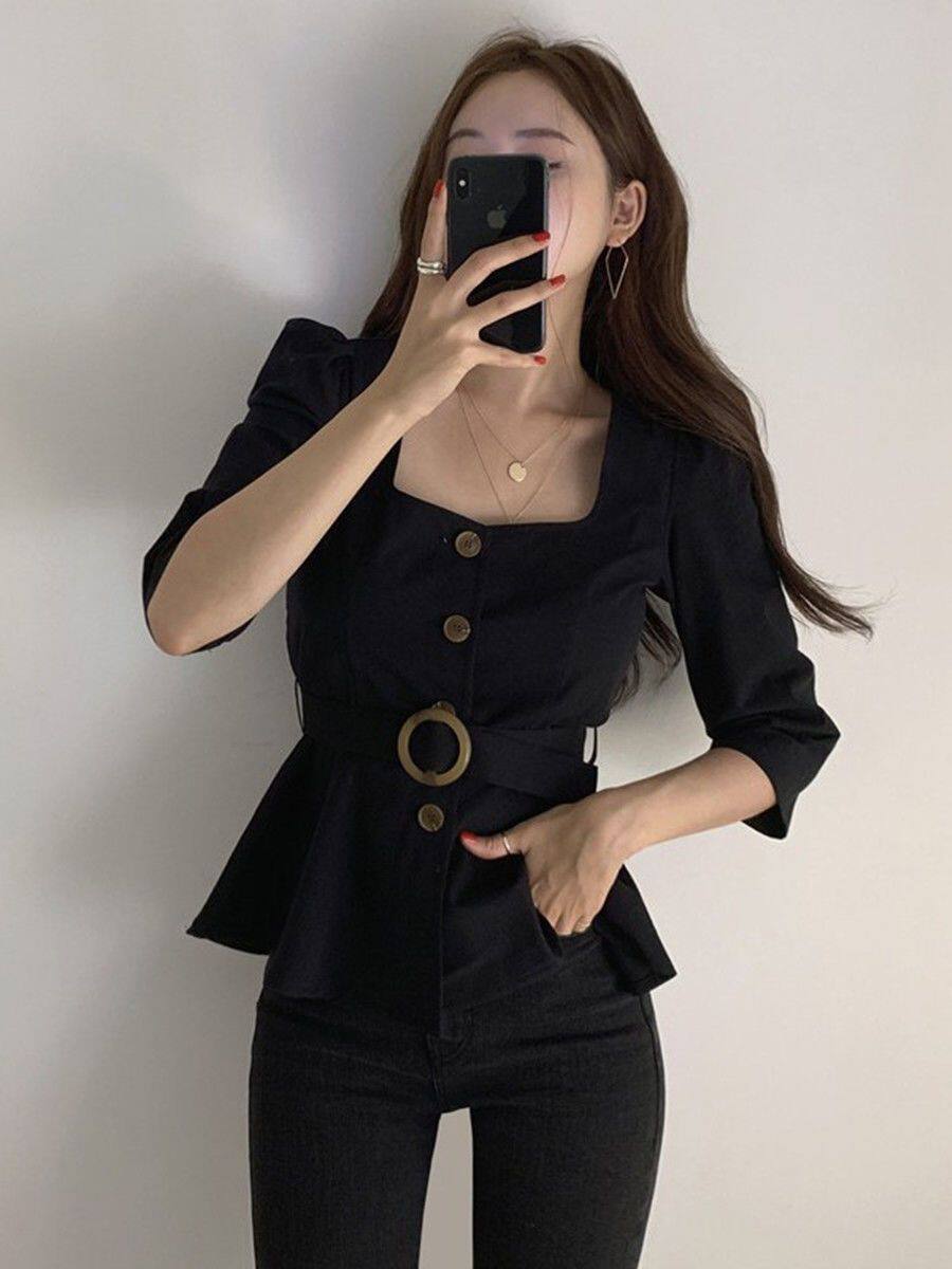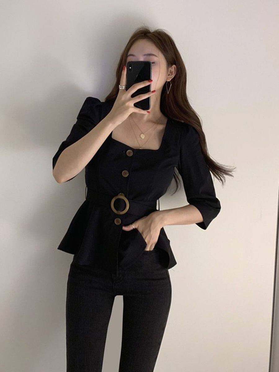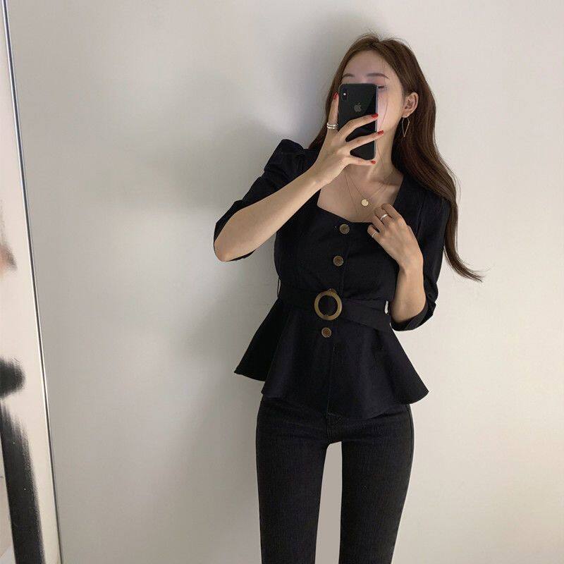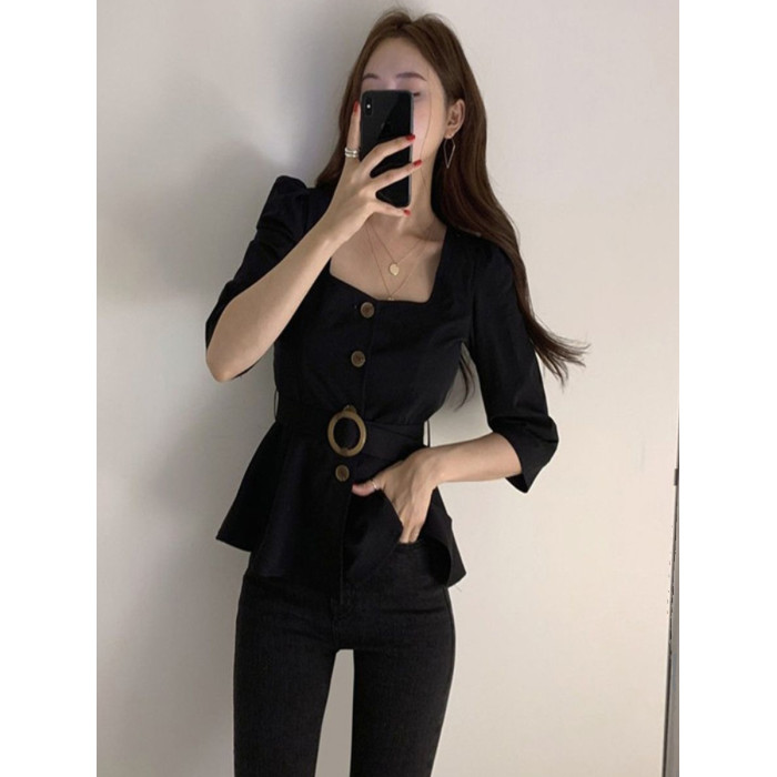法式設計感小衆氣質泡泡袖襯衫女七分袖小衫春夏新款收腰顯瘦上衣