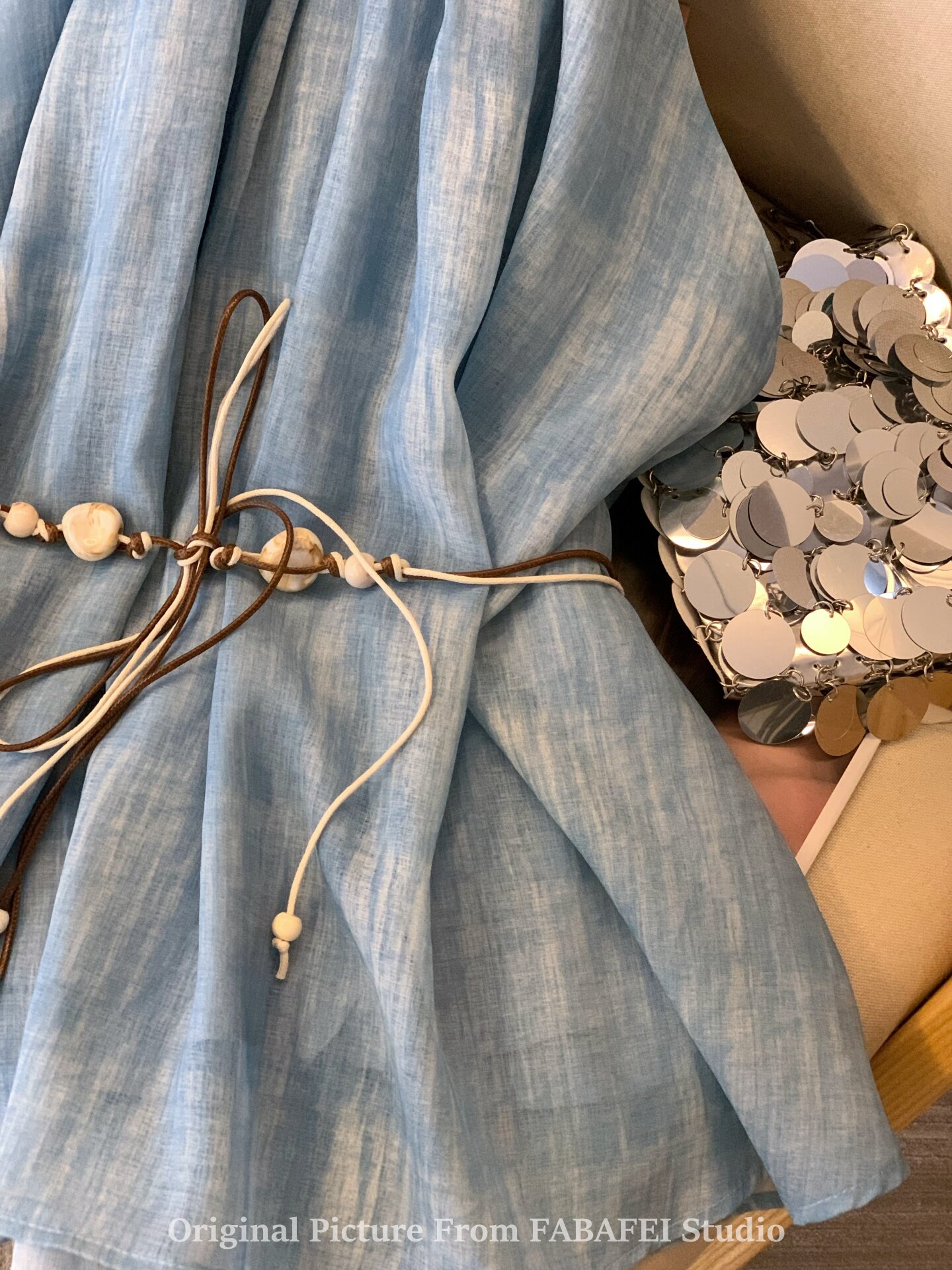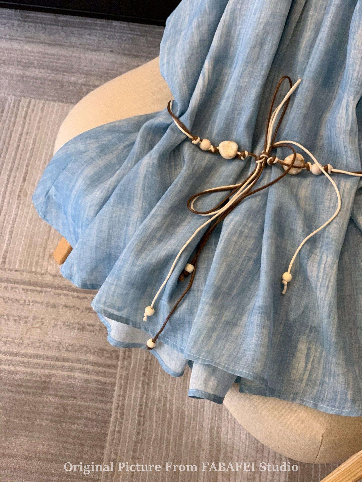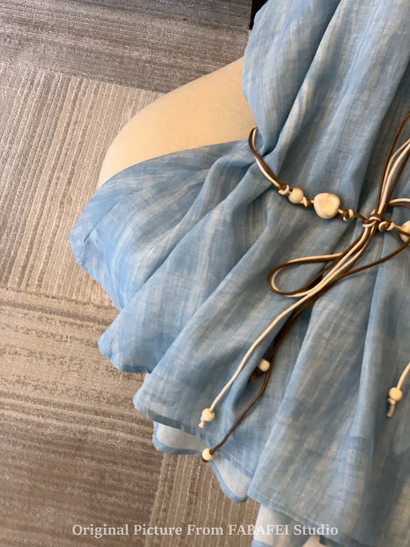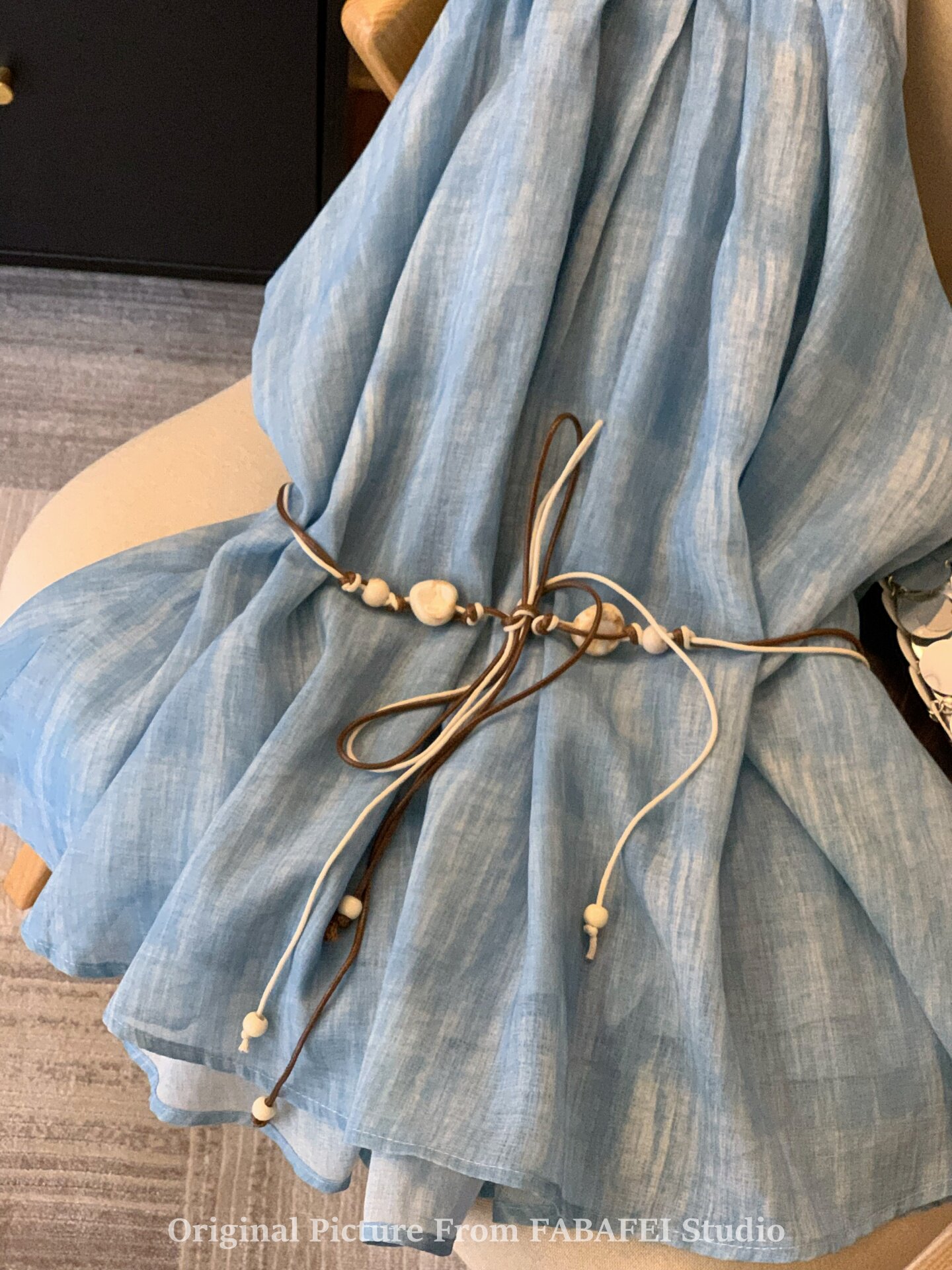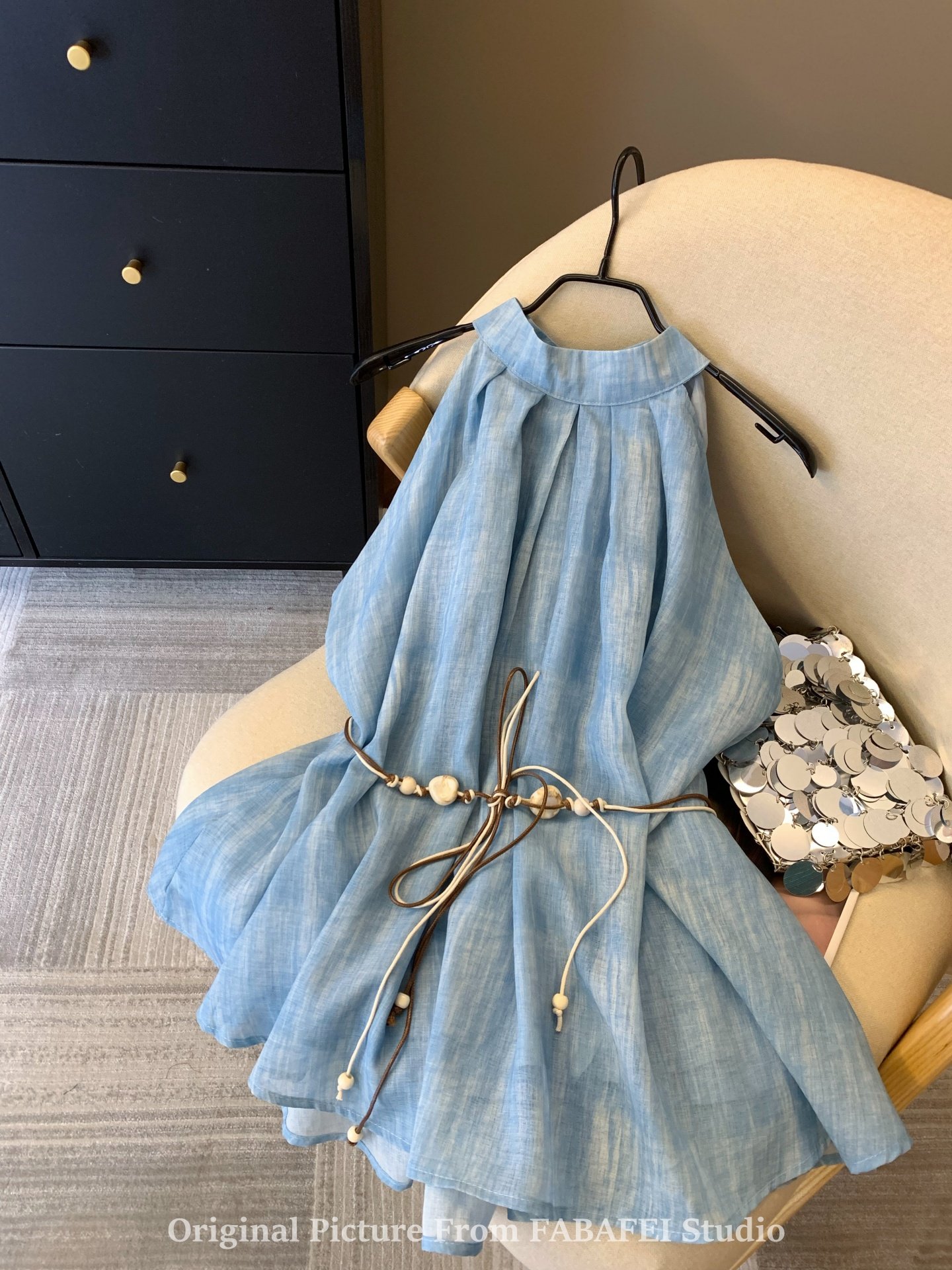 專櫃撤廻剪標波嬉風漸變藍色掛脖背心襯衫女夏季辣妹削肩雪紡上衣