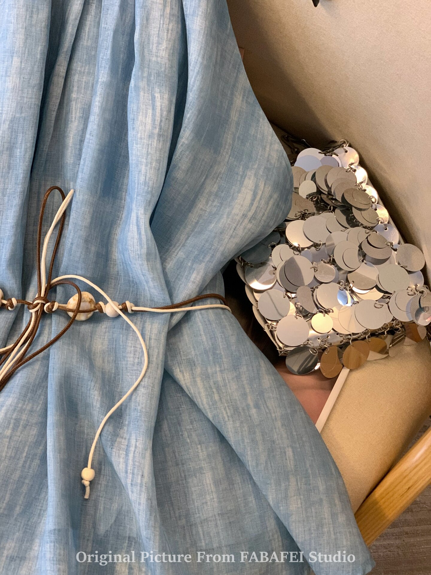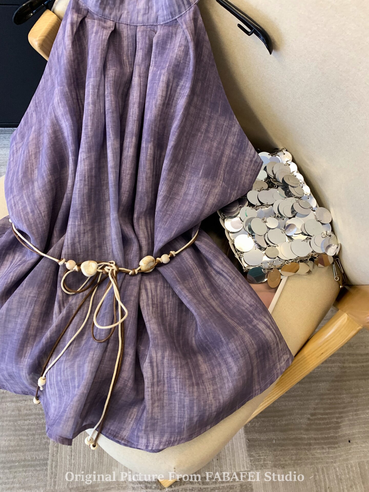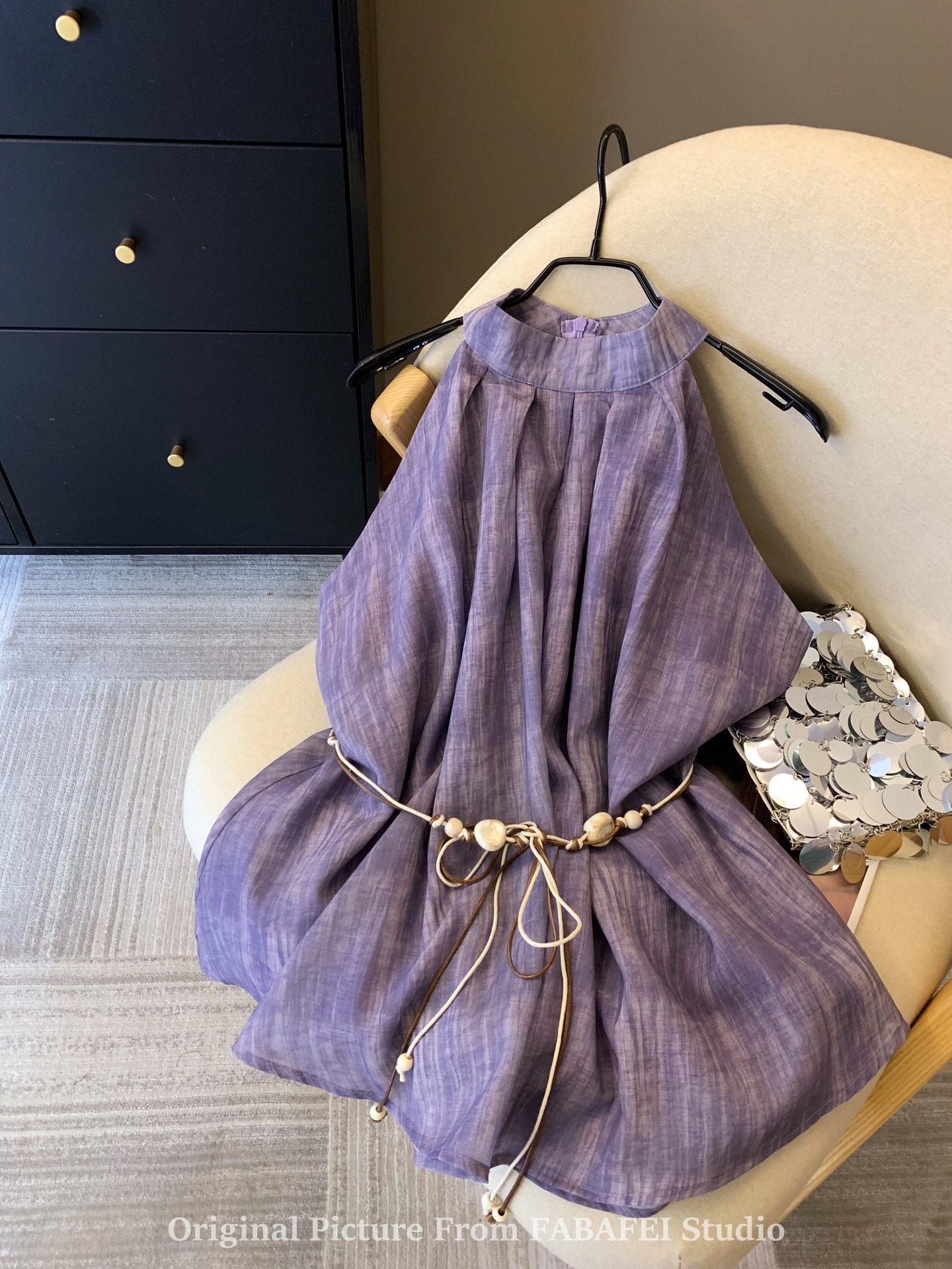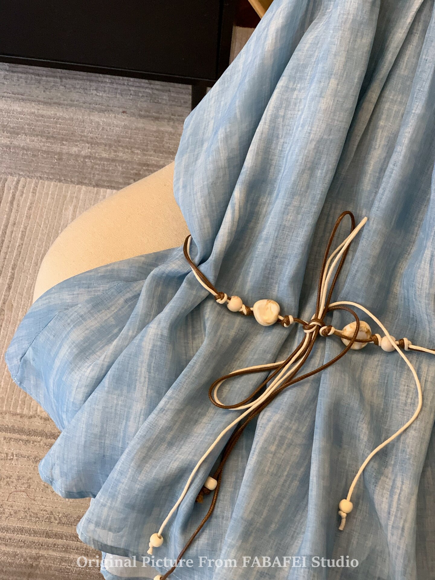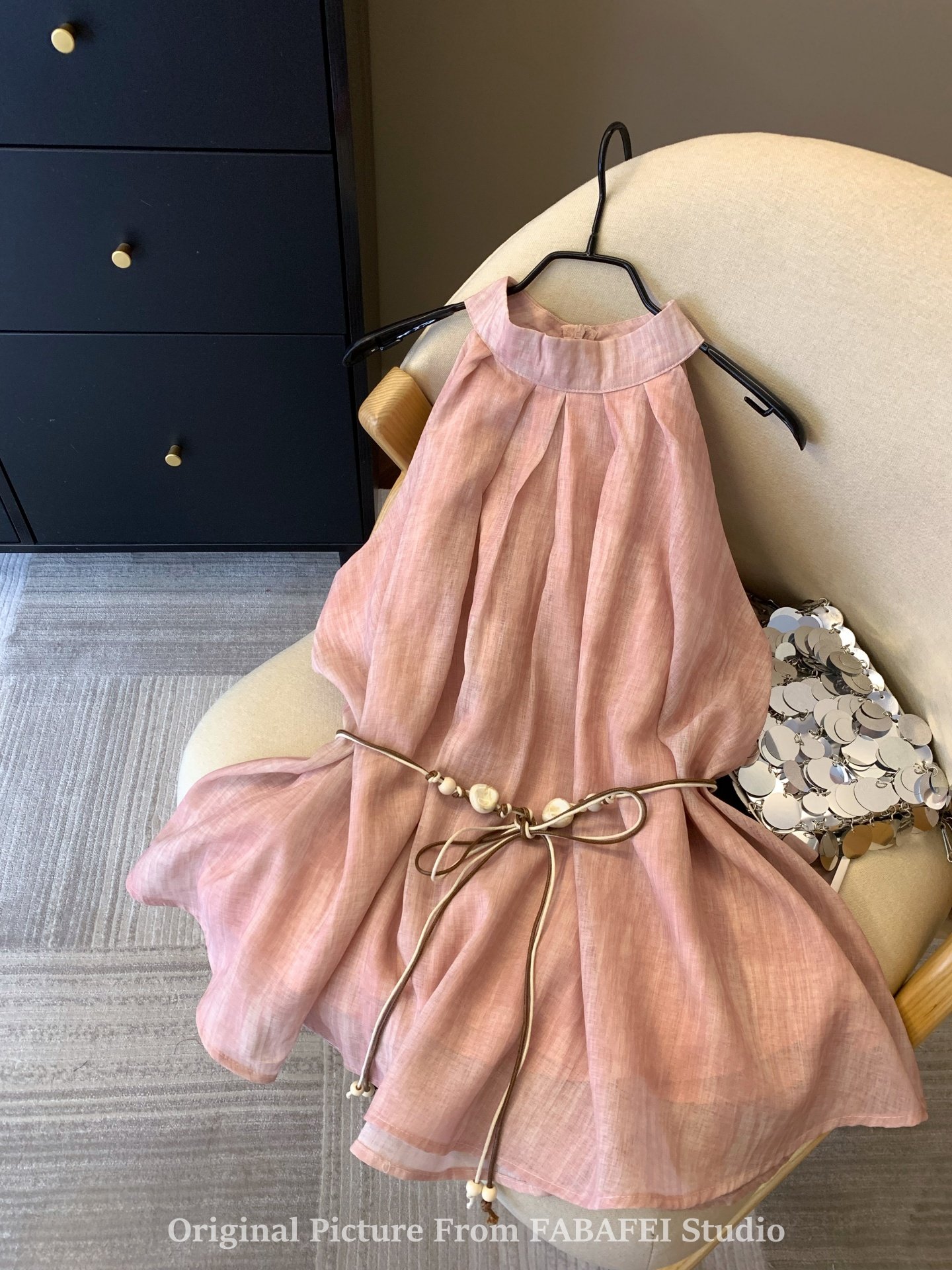 專櫃撤廻剪標波嬉風漸變藍色掛脖背心襯衫女夏季辣妹削肩雪紡上衣