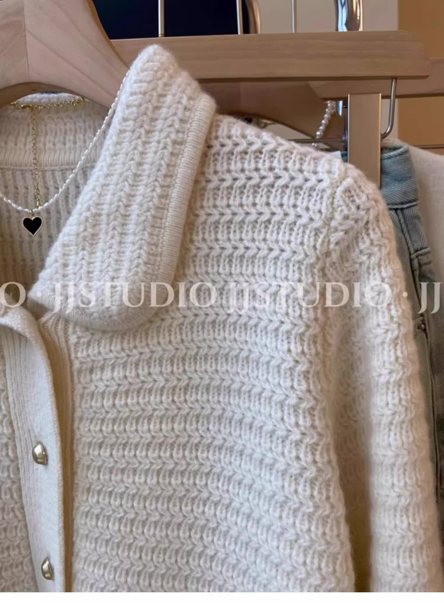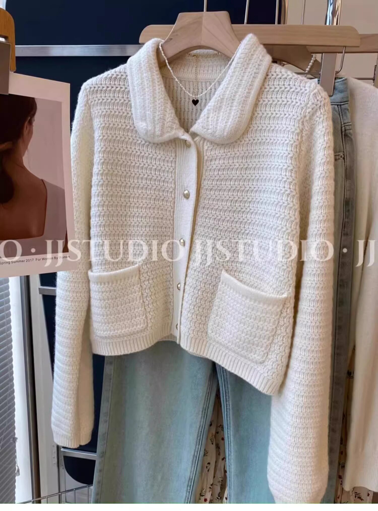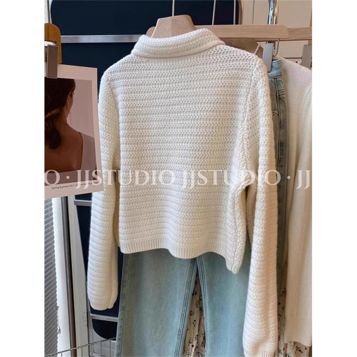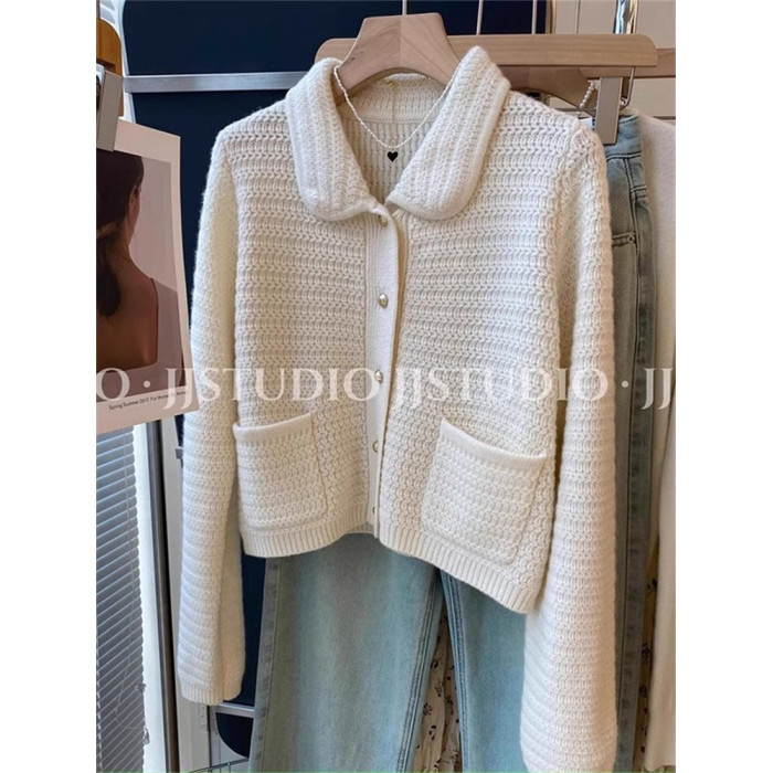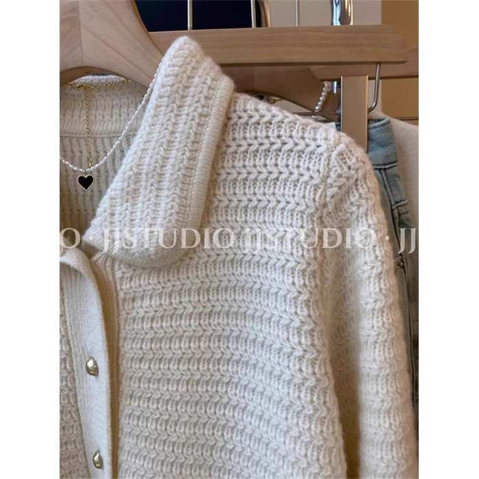 廣州十三行高貨小香風繙領針織開衫女秋冬高級感溫柔氣質毛衣外套