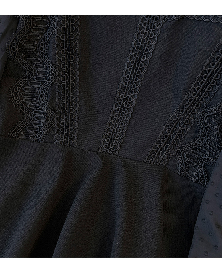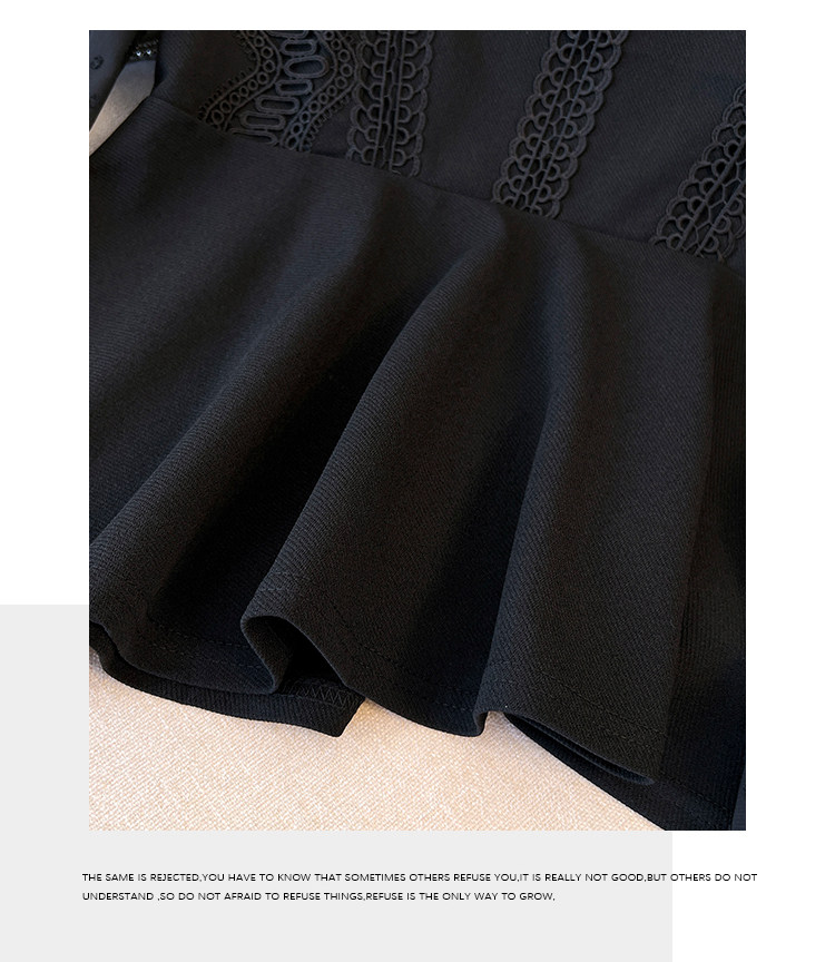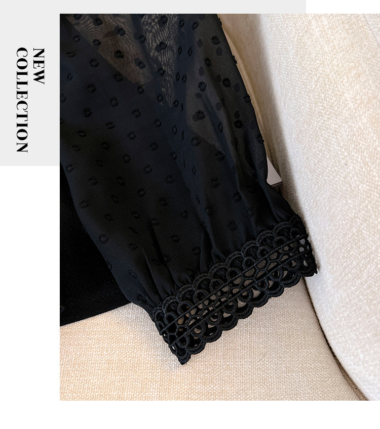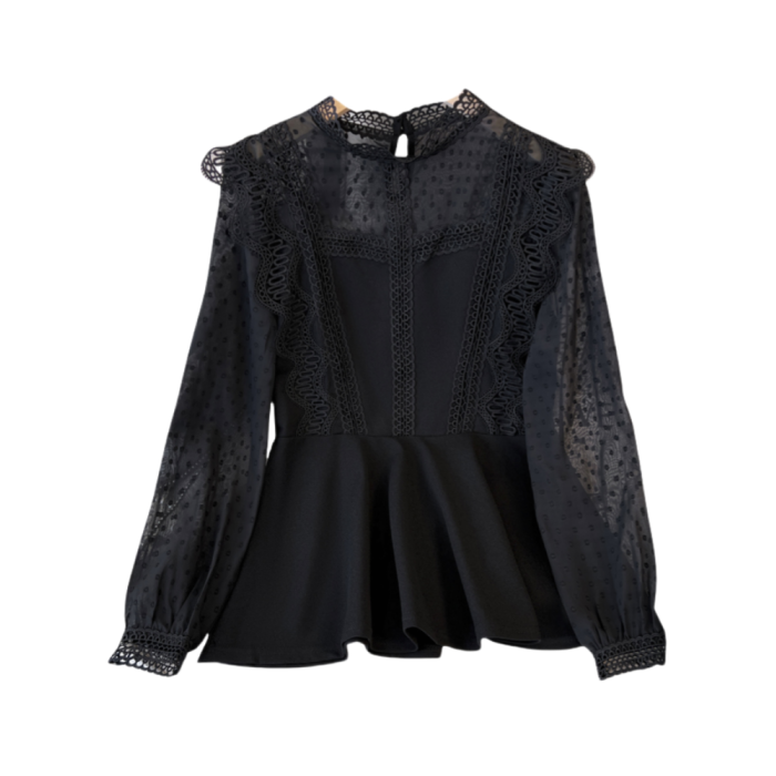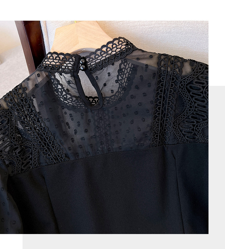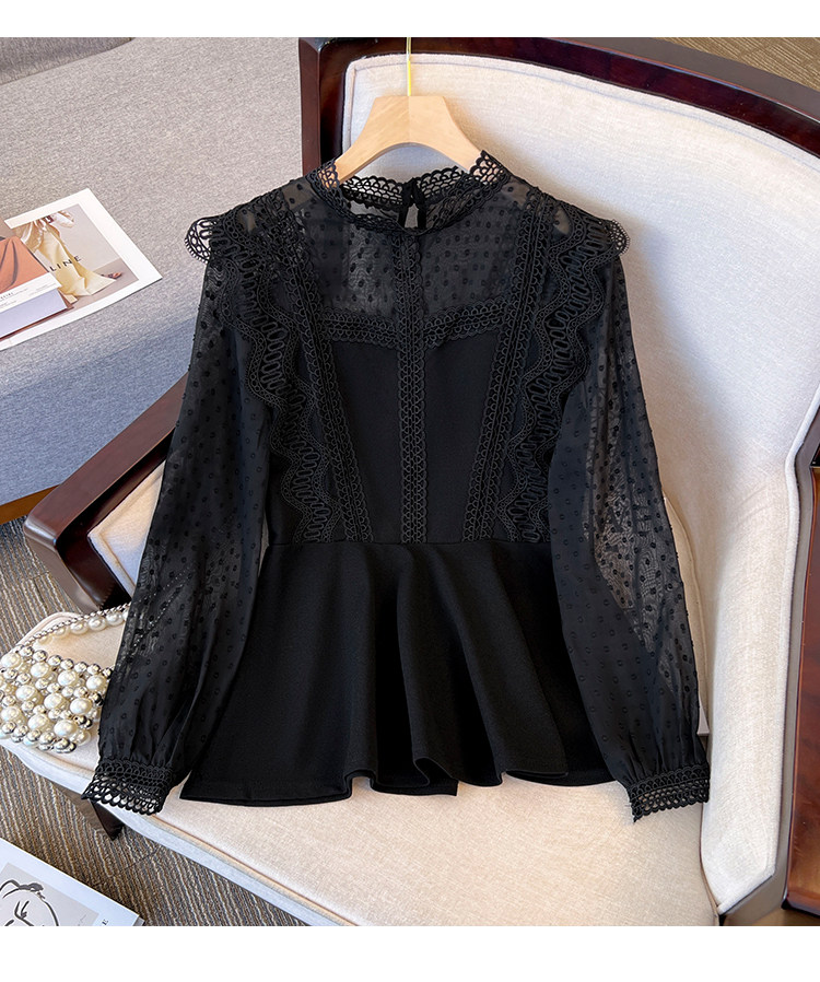 黑色鏤空雪紡長袖襯衫女春秋2025大碼胖mm高級感蕾絲拼接打底上衣