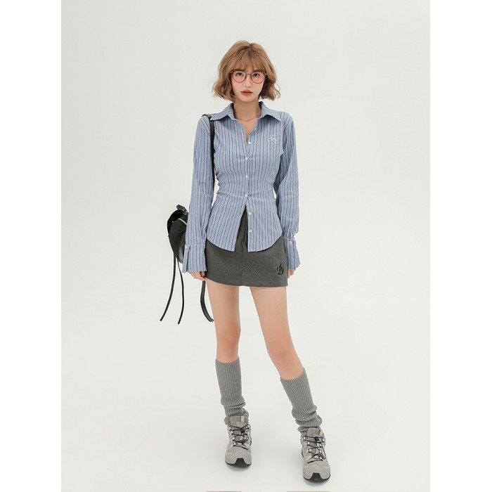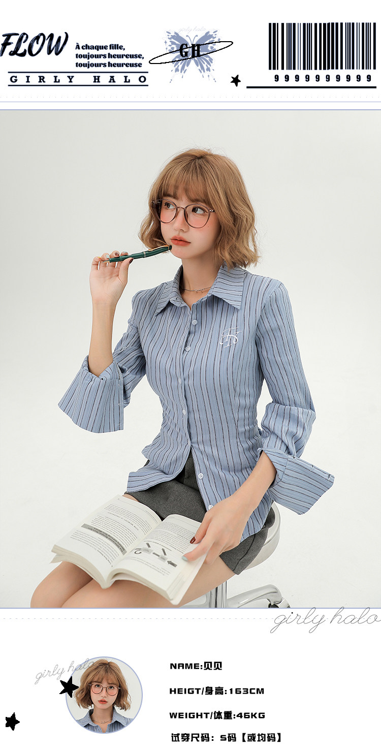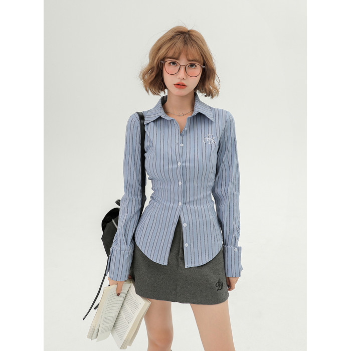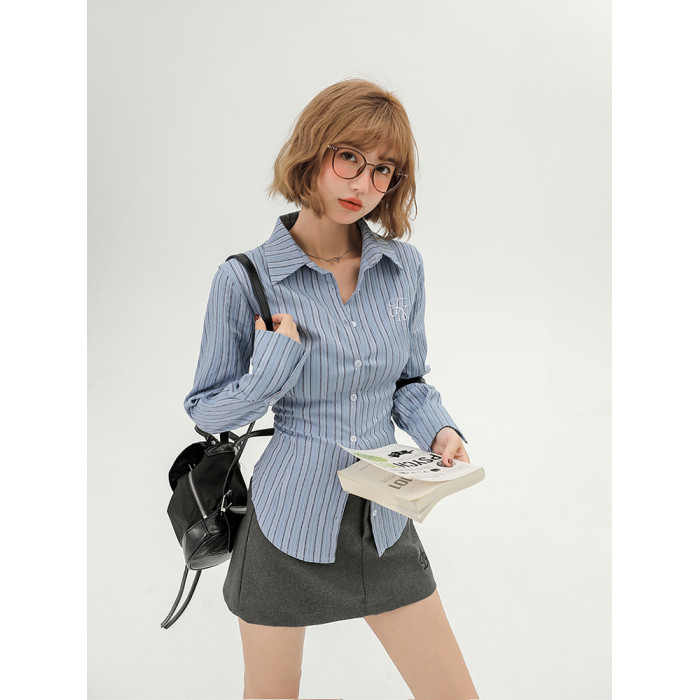 Girlyhalo美式學院風辣妹襯衫長袖女秋季條紋設計感修身收腰襯衣
