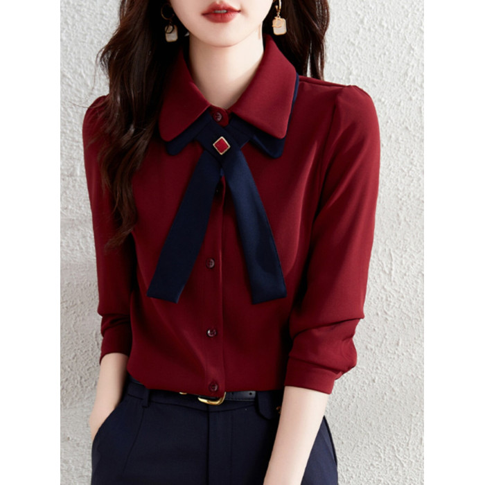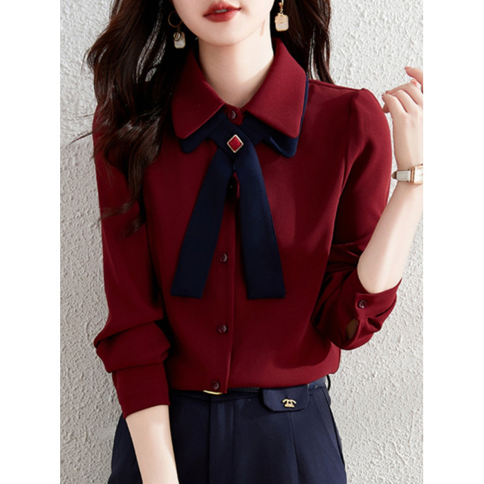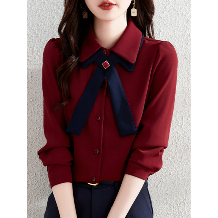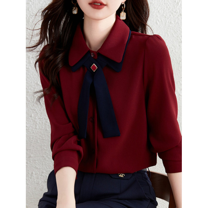 今年流行漂亮襯衫女士早春季2025年新款洋氣紅色上衣小衫長袖襯衣