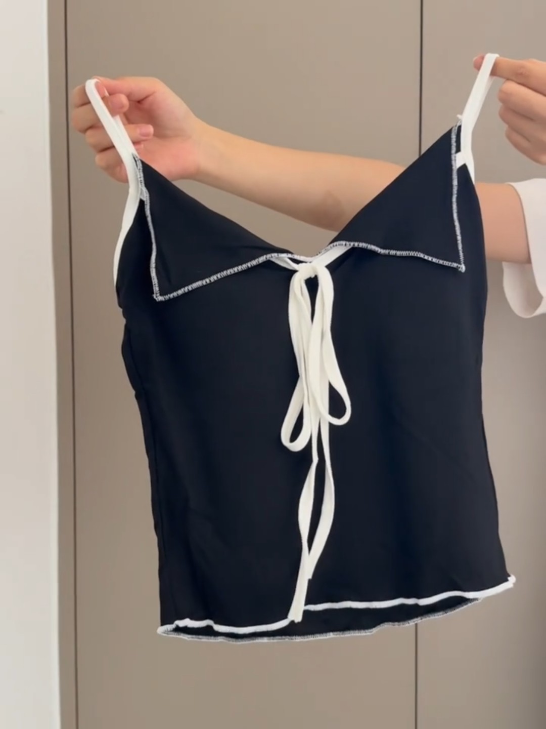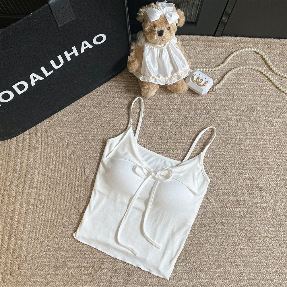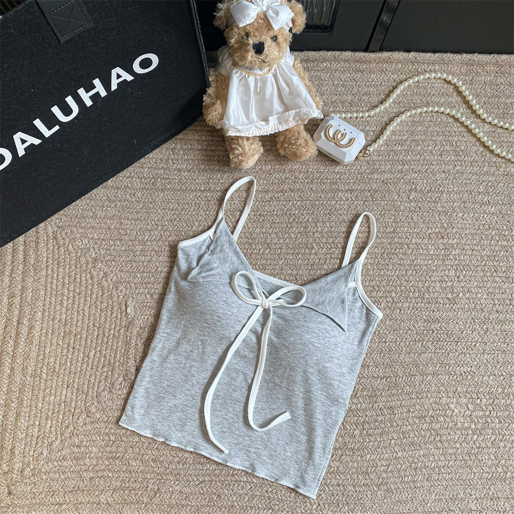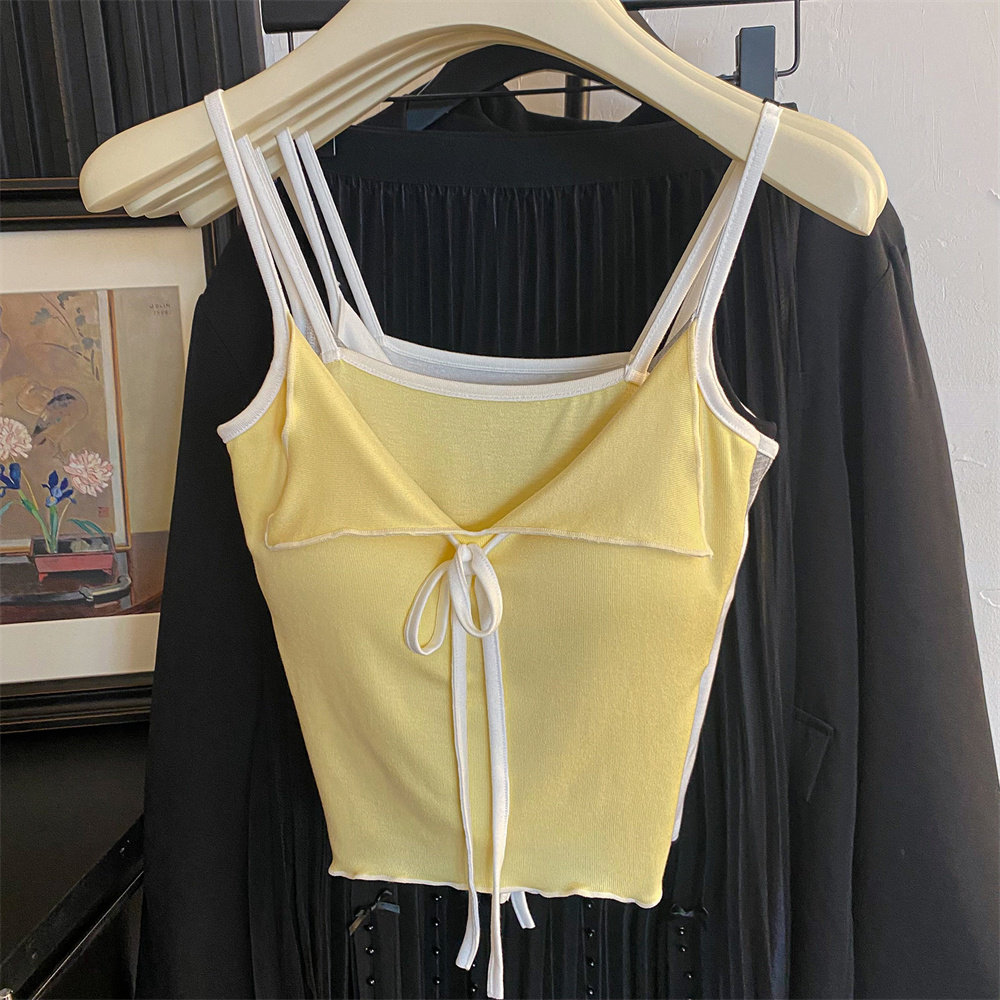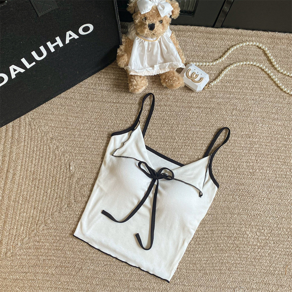 黑色百搭又顯瘦~小繙領設計撞色吊帶夏季新款性感辣妹帶胸墊上衣