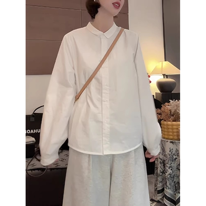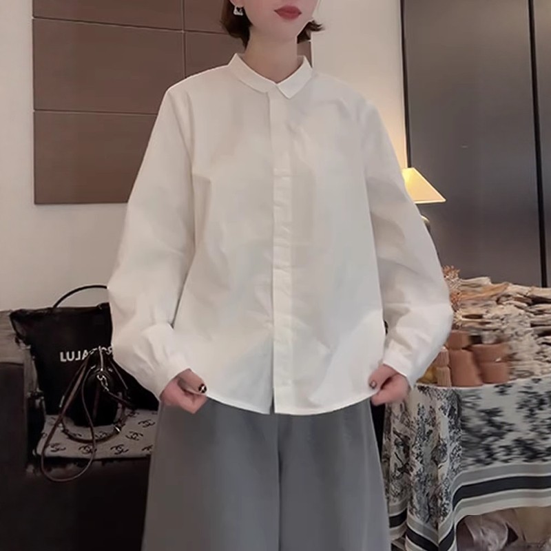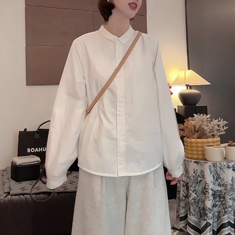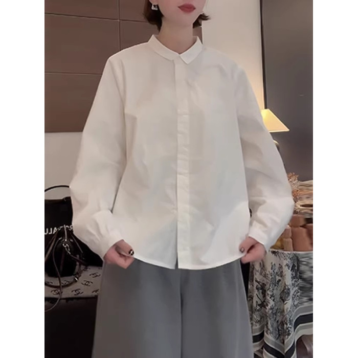韓版白色繙領長袖襯衫女2026早春款大碼胖MM簡約時尚襯衣氣質上衣