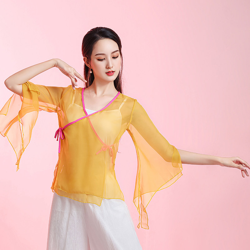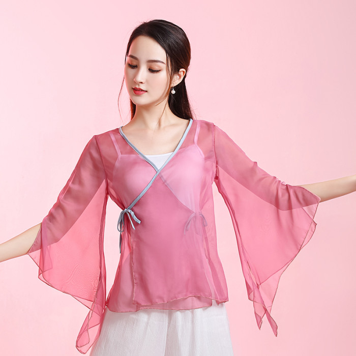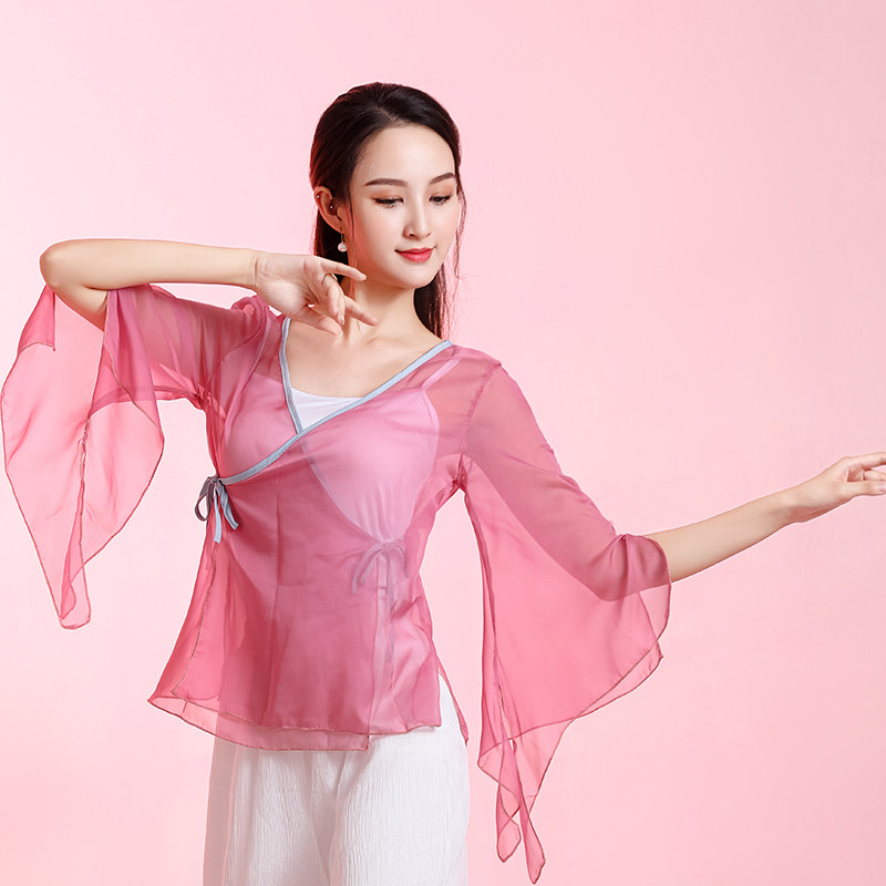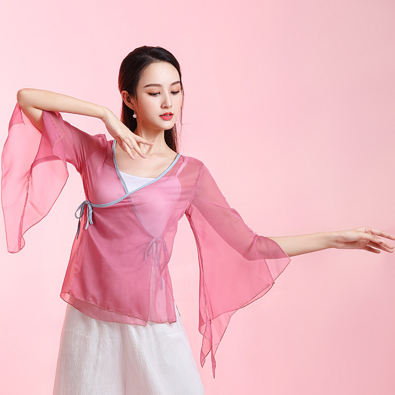 古典舞舞蹈服練功服女身韻紗衣仙氣飄逸上衣民族舞演出服