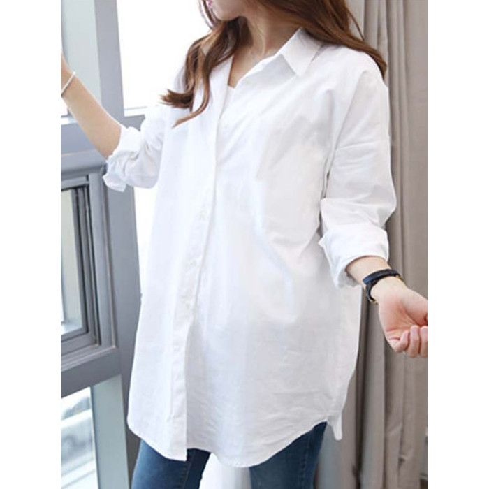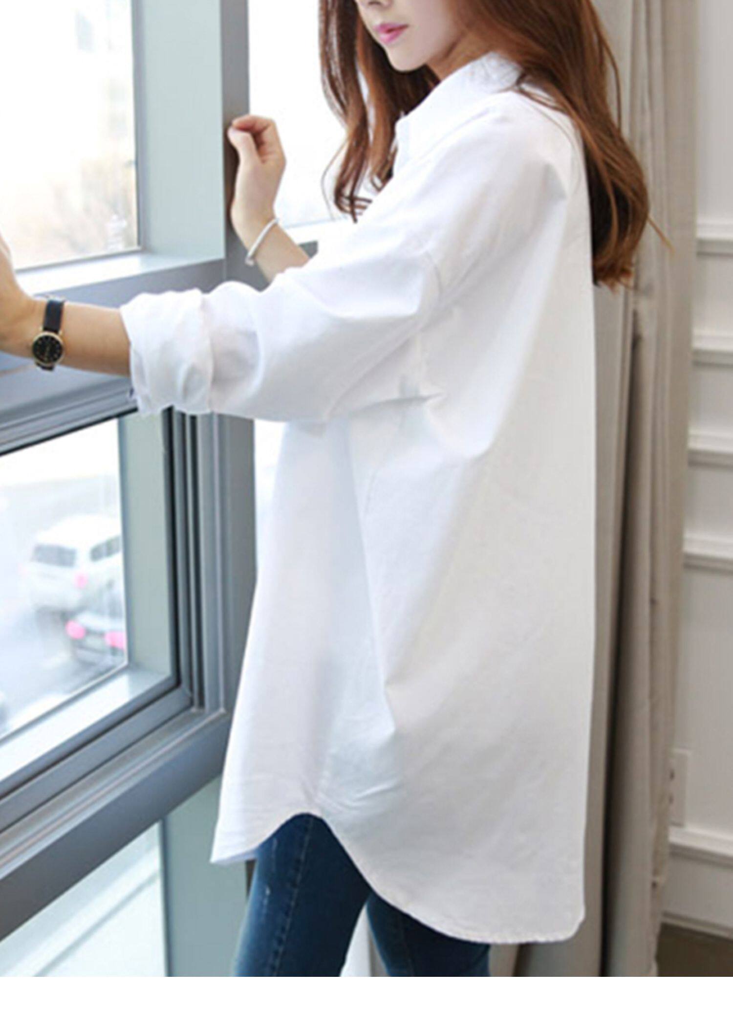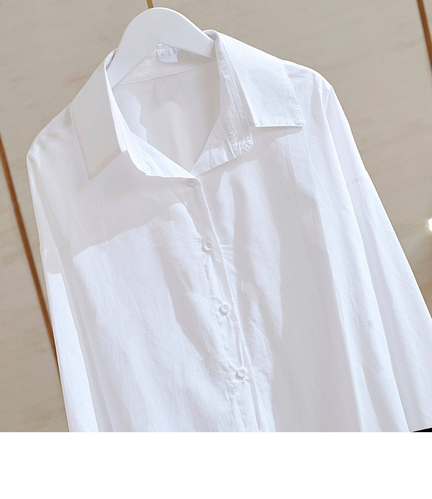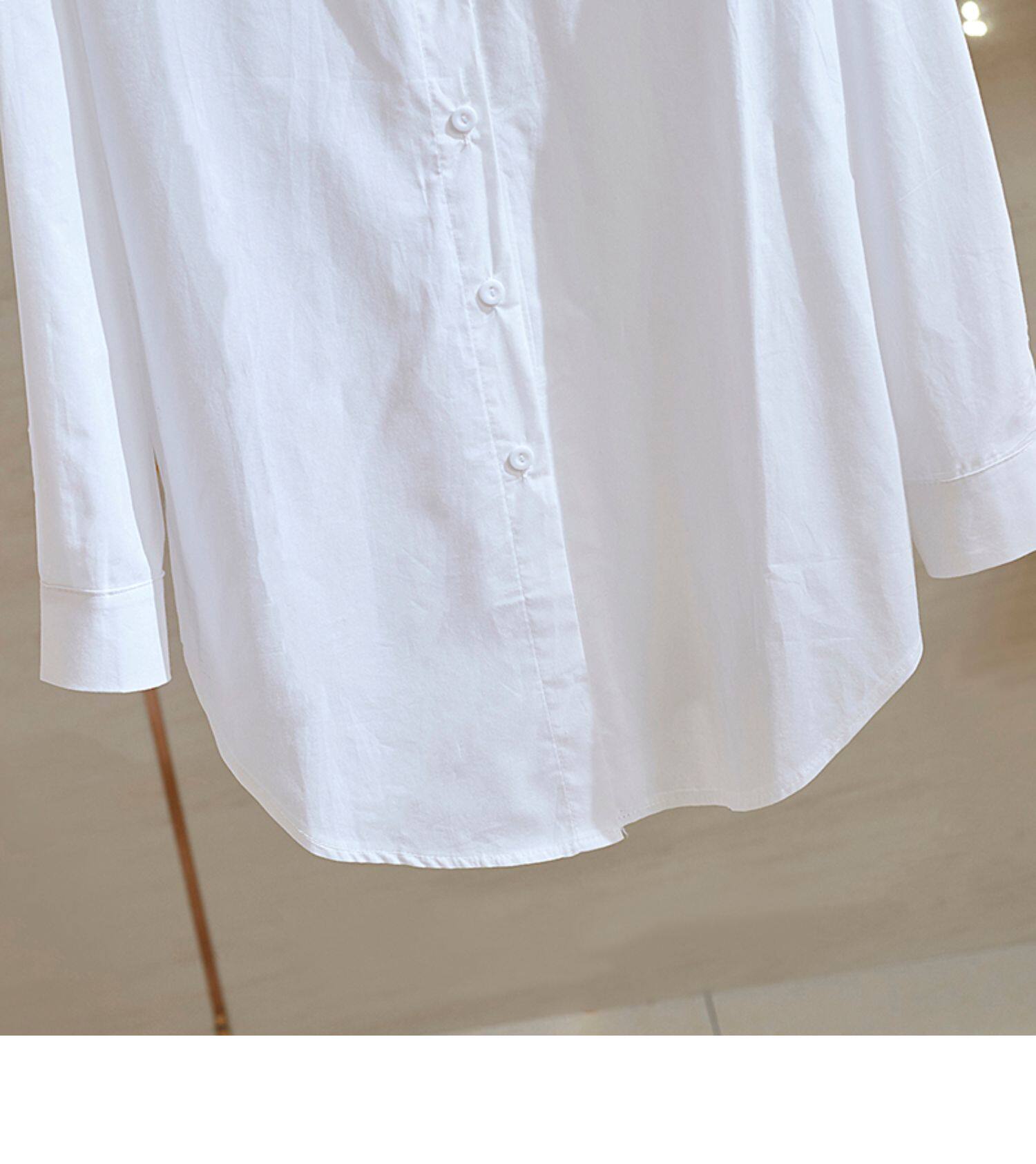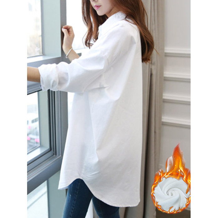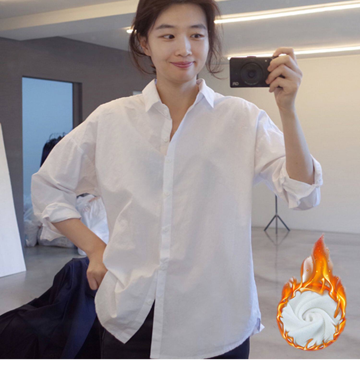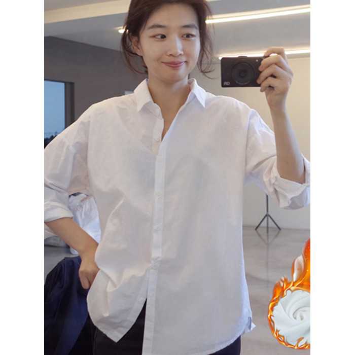 2025春裝加絨內搭中長款打底高級感輕奢小衆白曡穿襯衫女休閒襯衣