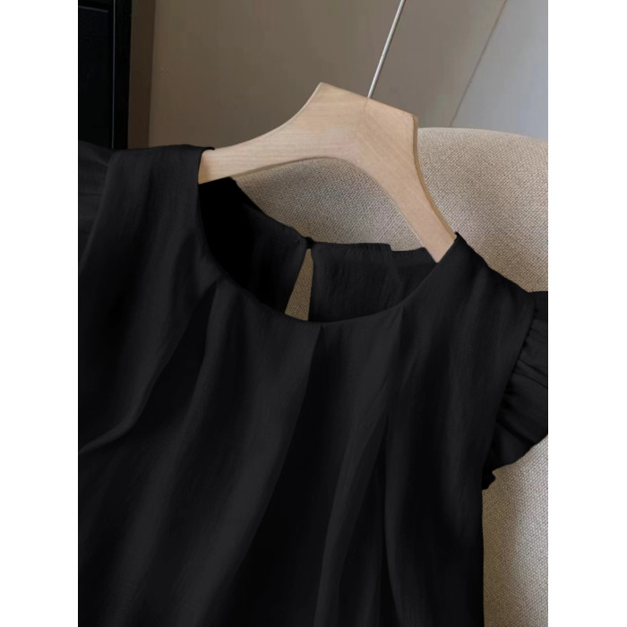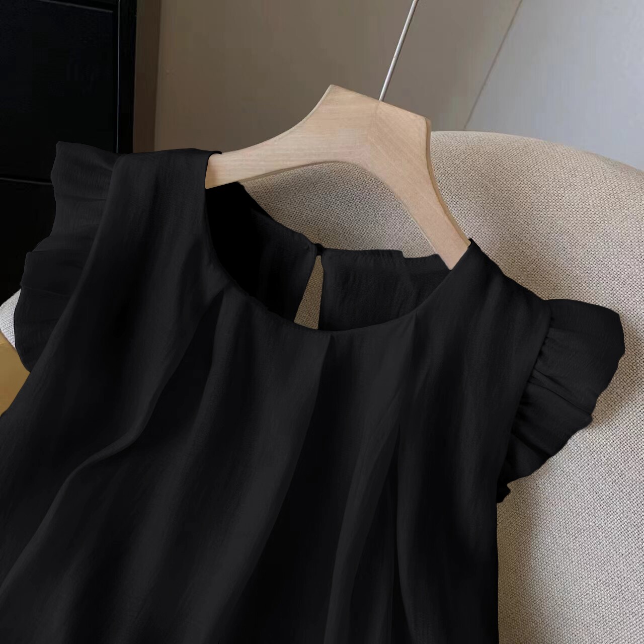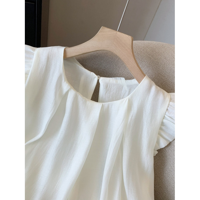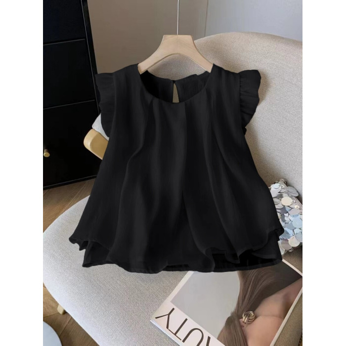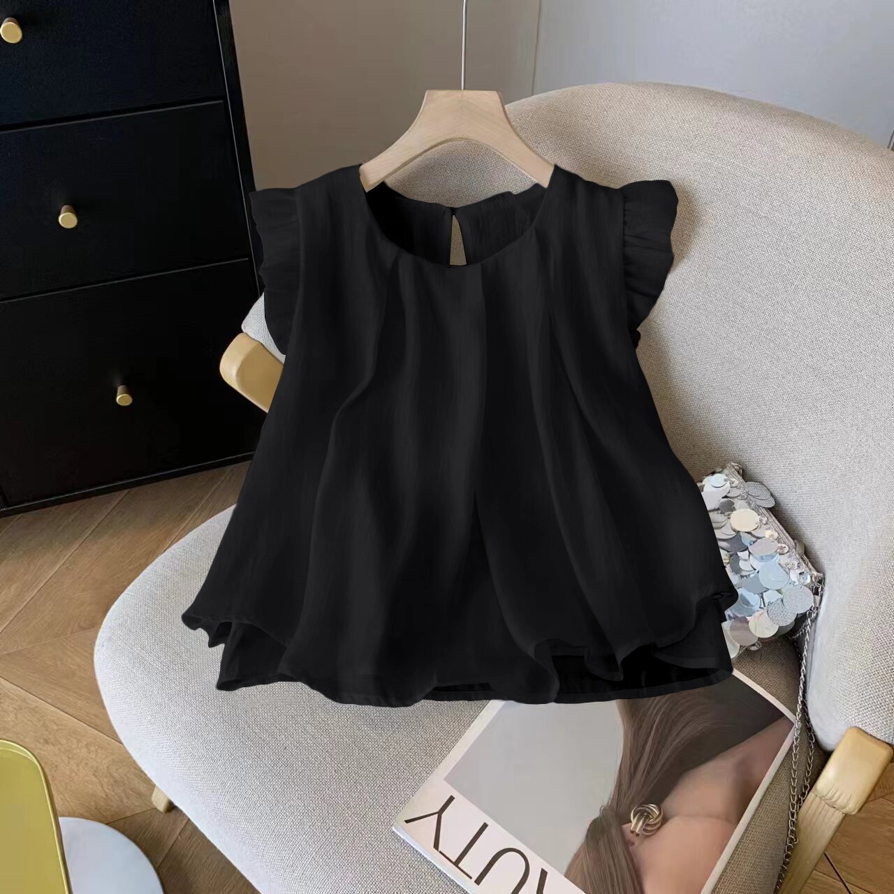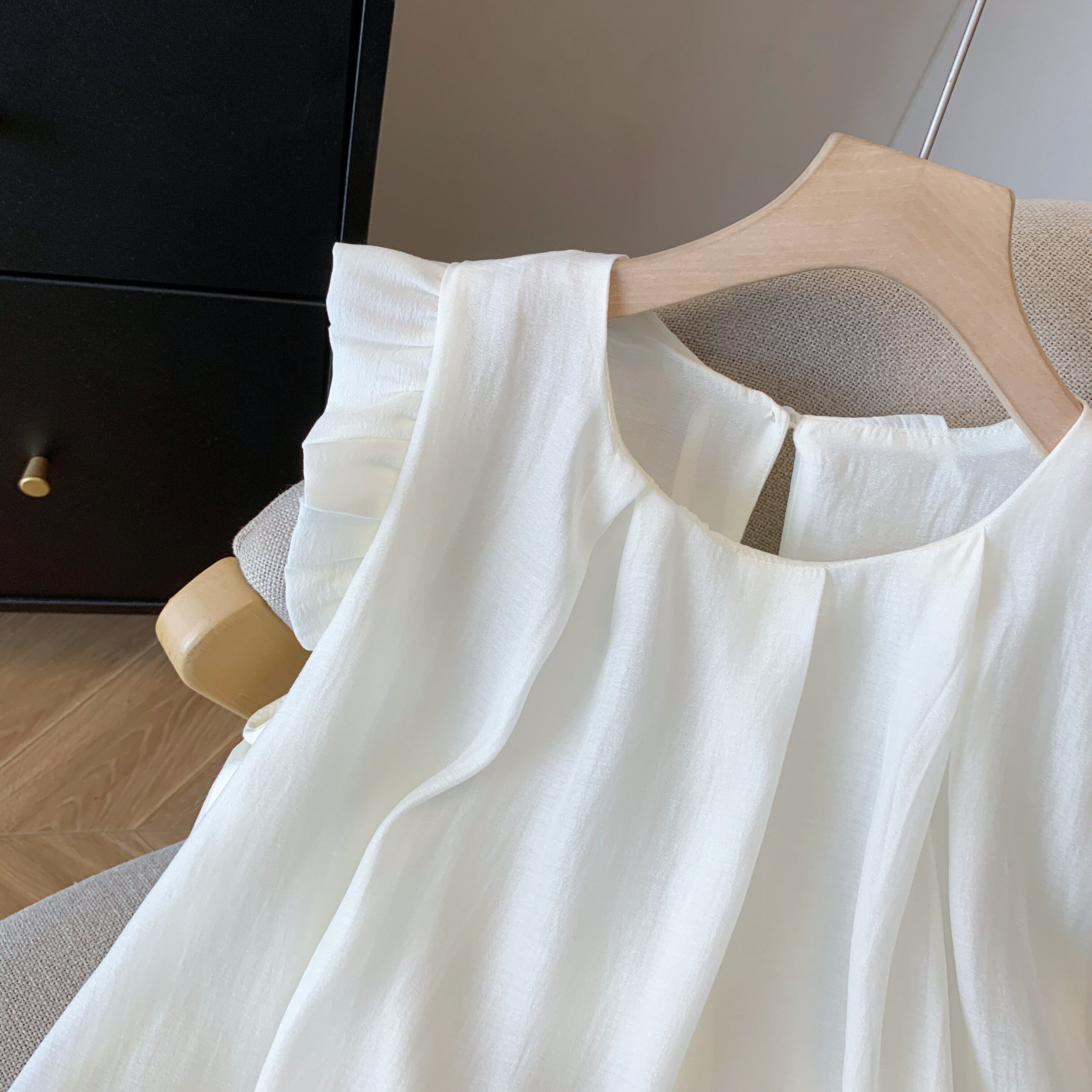 專櫃撤廻大牌剪標女裝法式小飛袖襯衫女夏季別致寬鬆無袖雪紡上衣