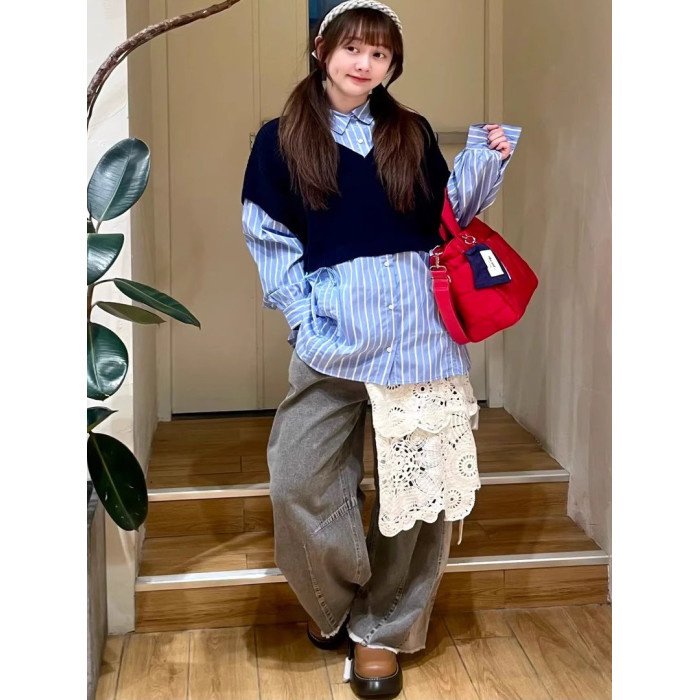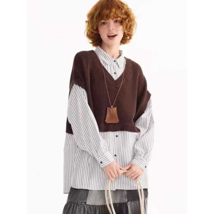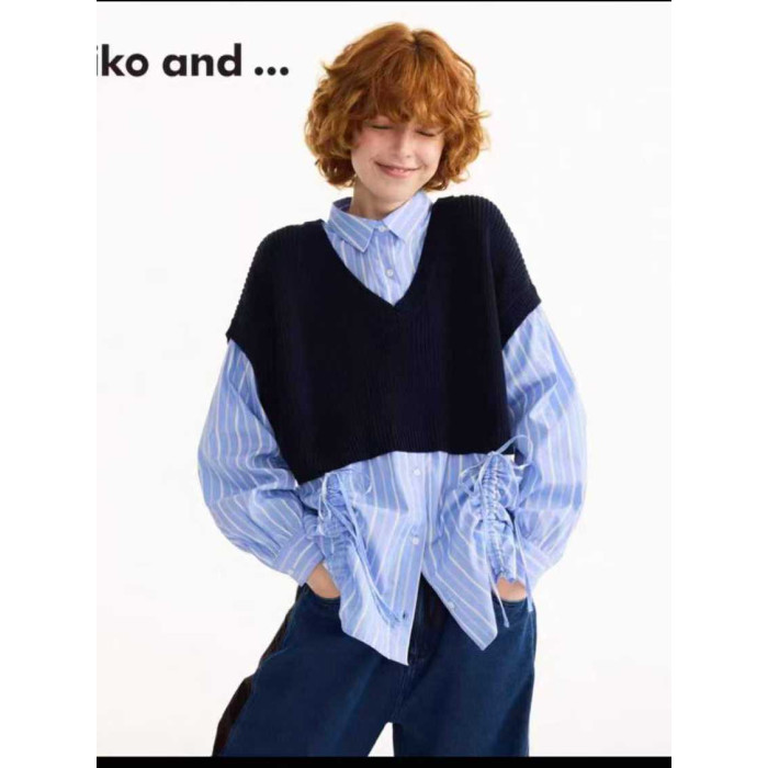 日系nikoand 妮蔻家新品設計感時尚棉質休閒風撞色假兩件襯衫女
