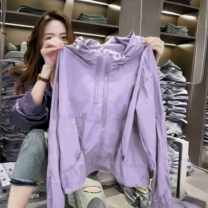 2025夏新款慵懶風設計感純色大碼寬鬆防曬沖鋒衣開衫防曬上衣外套