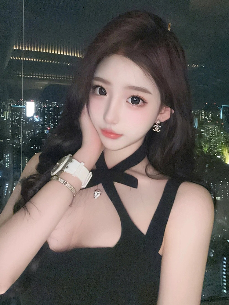 赫本風蝴蝶結掛脖吊帶連衣裙春夏季女2025新款收腰修身A字短裙子