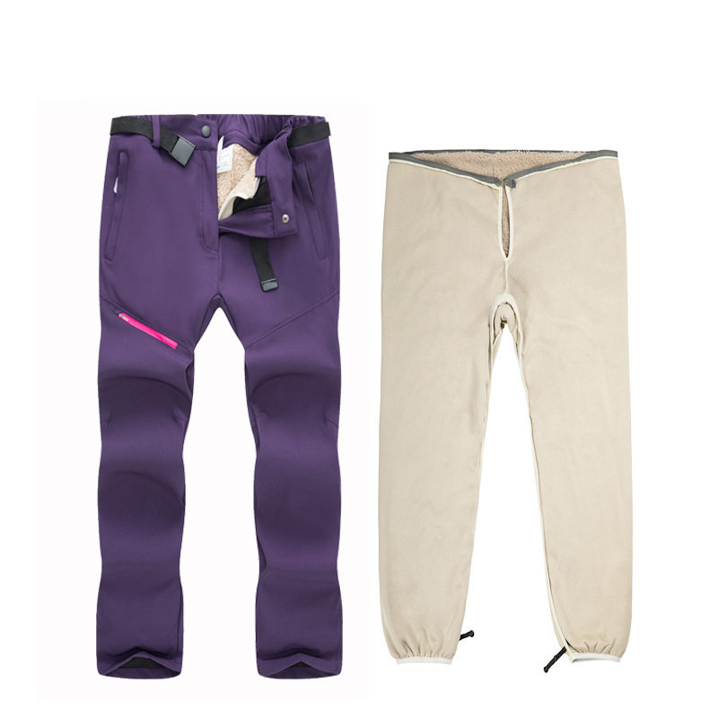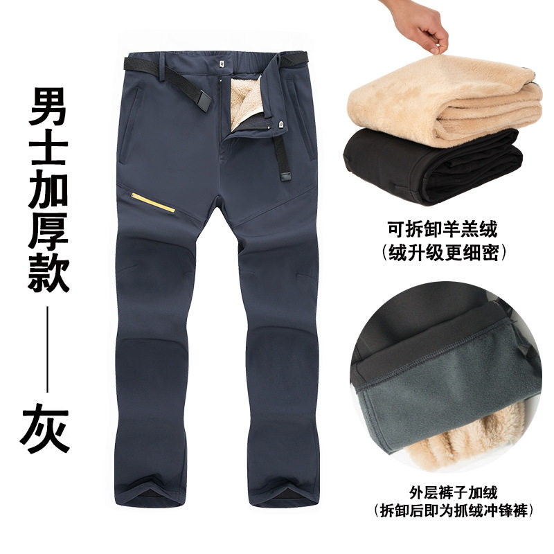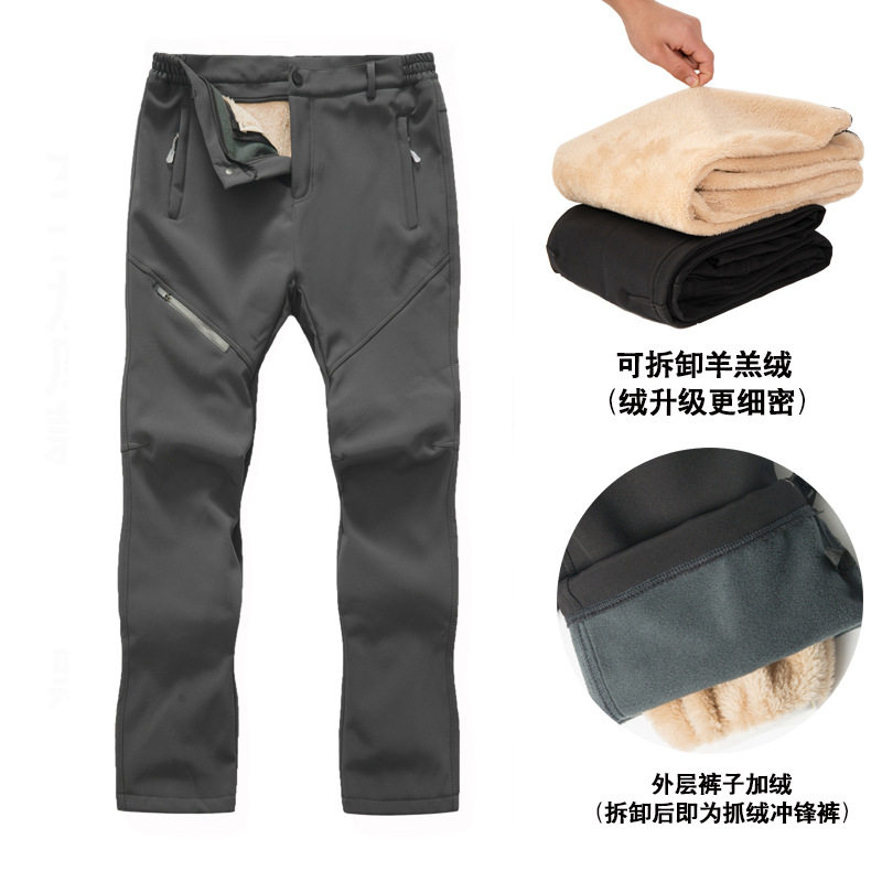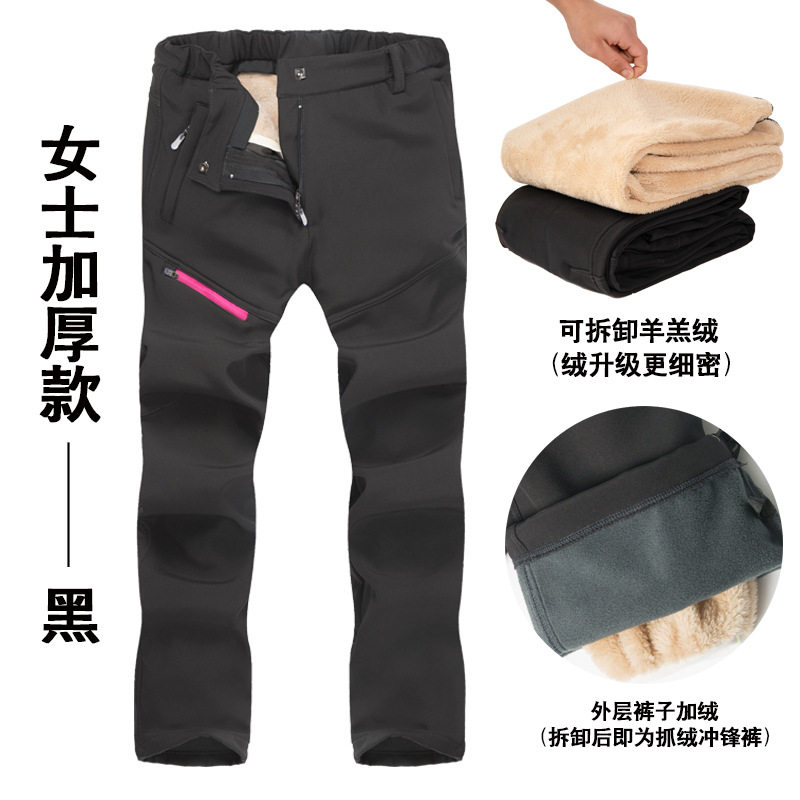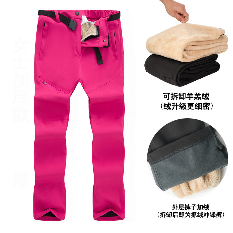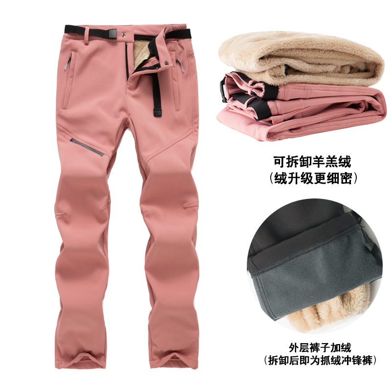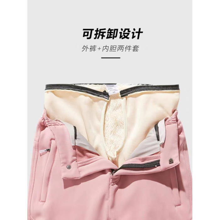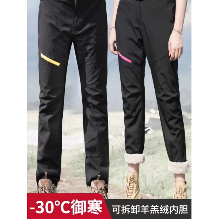 東北羊羔絨可拆卸沖鋒褲男女戶外防風防水加厚加絨雪鄕登山滑雪褲