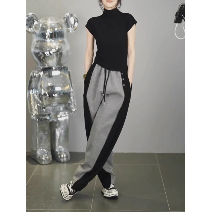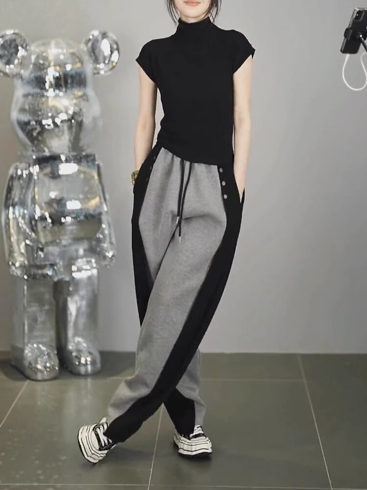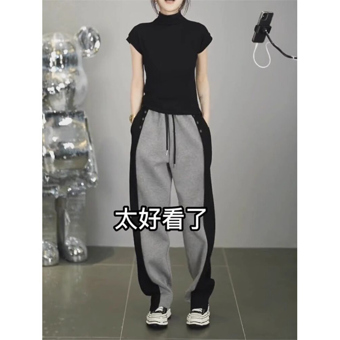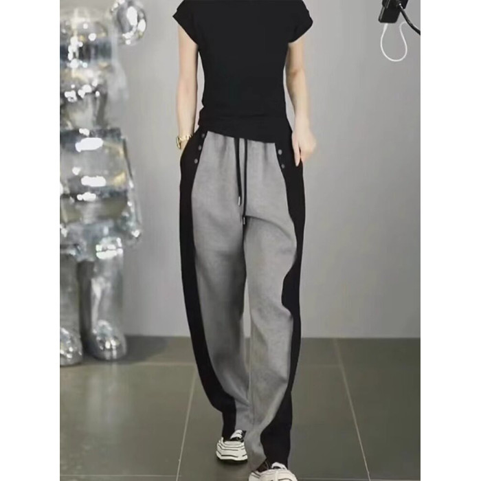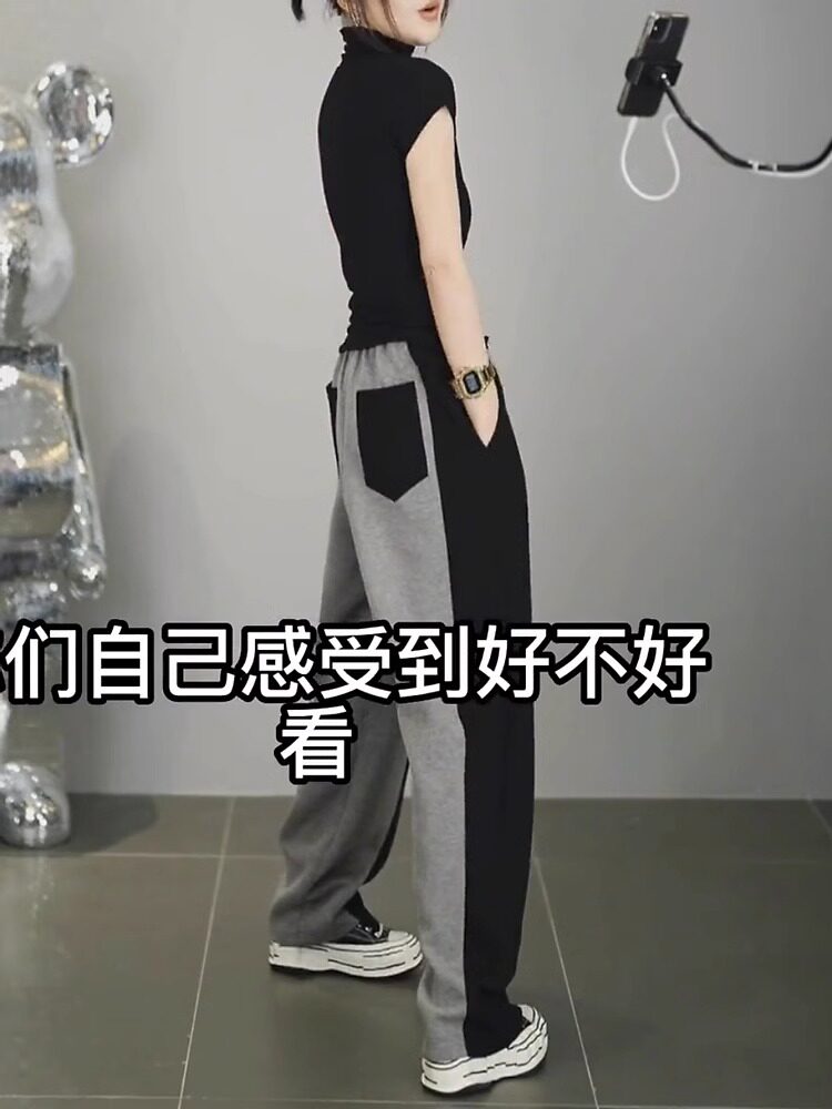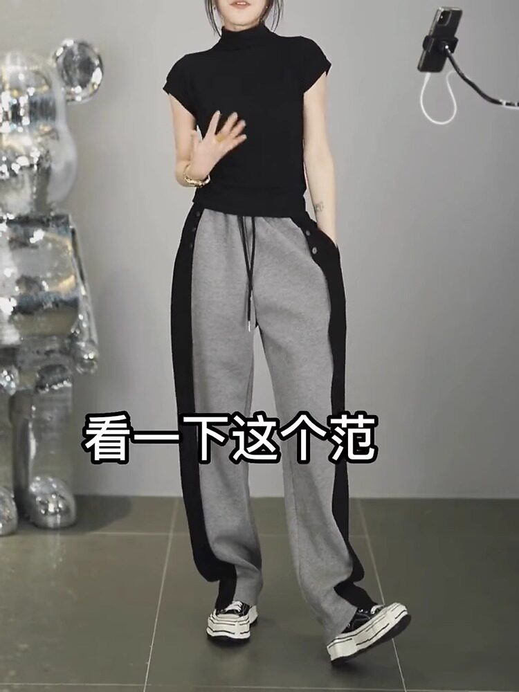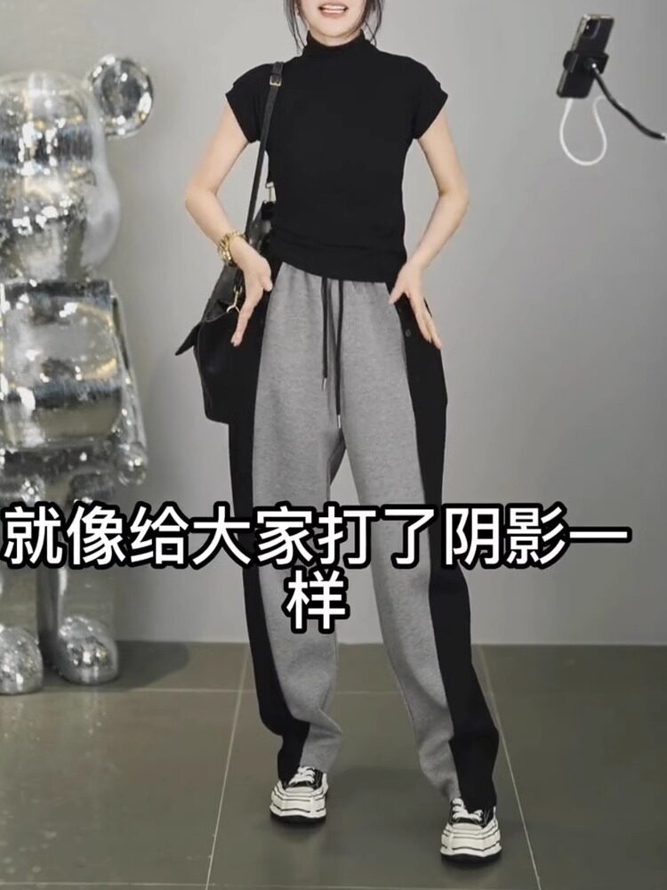 春秋新款潮搭高腰顯瘦修容休閒褲女潮流微胖寬鬆濶腿褲隂影直筒褲
