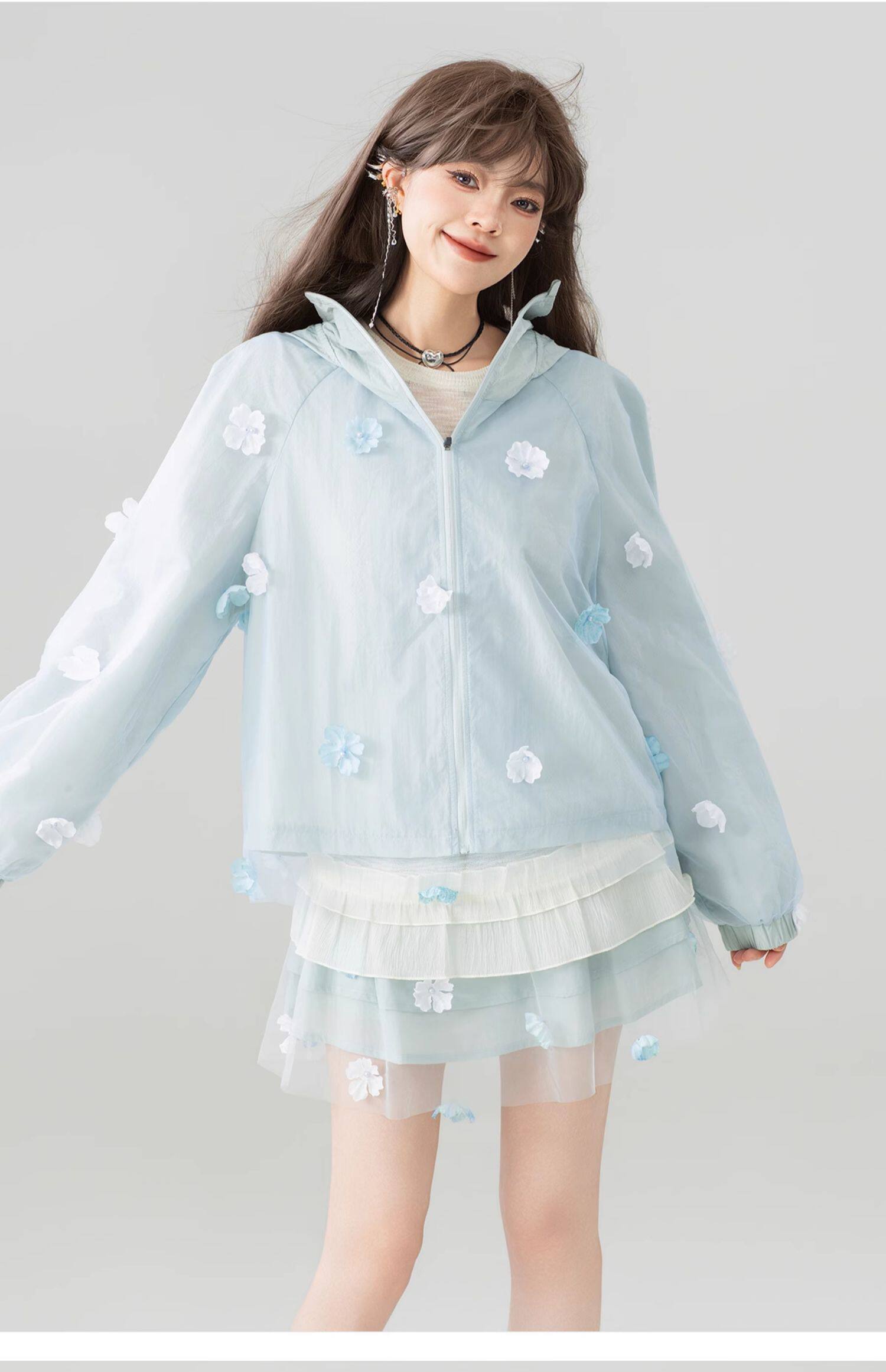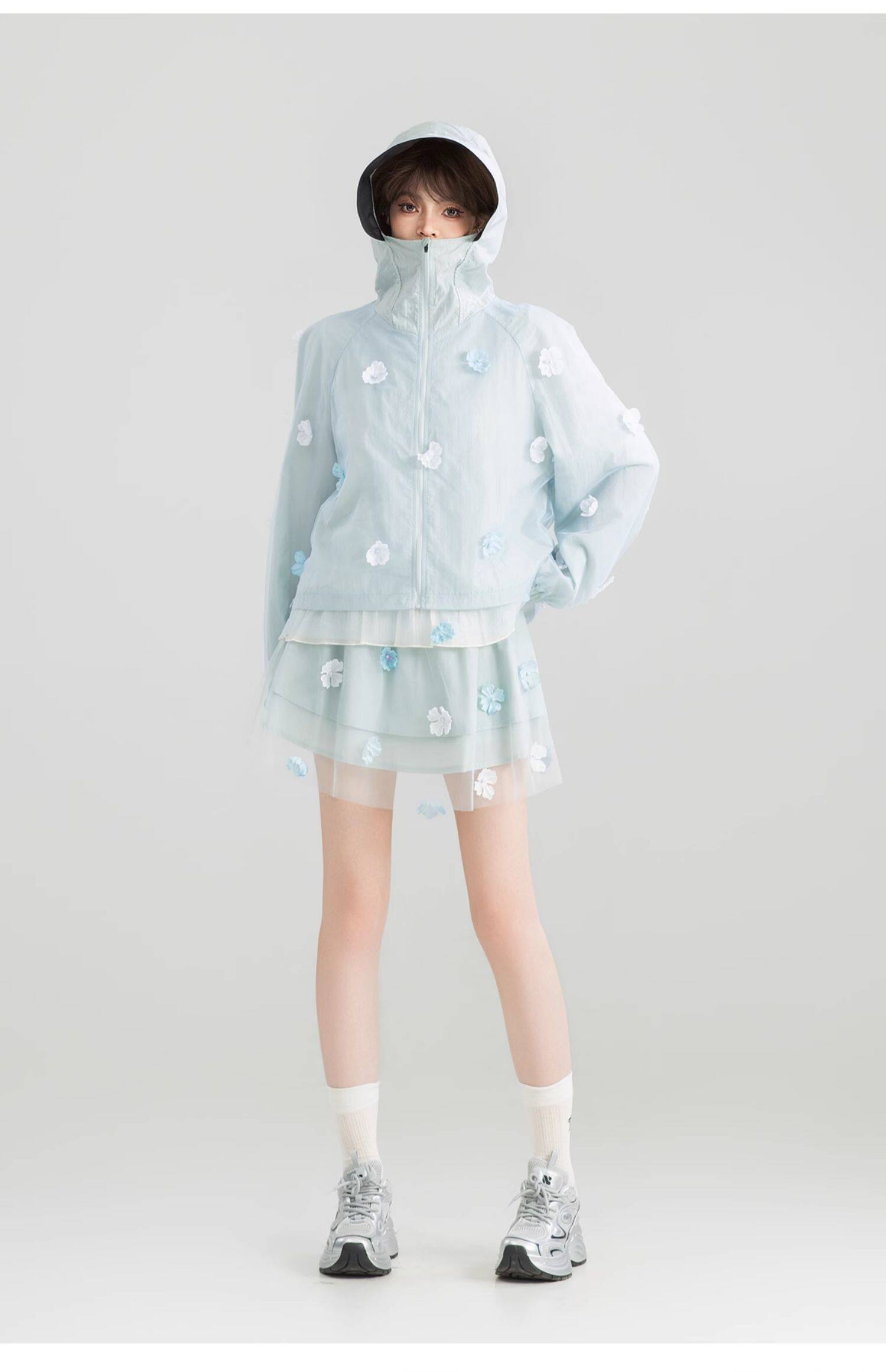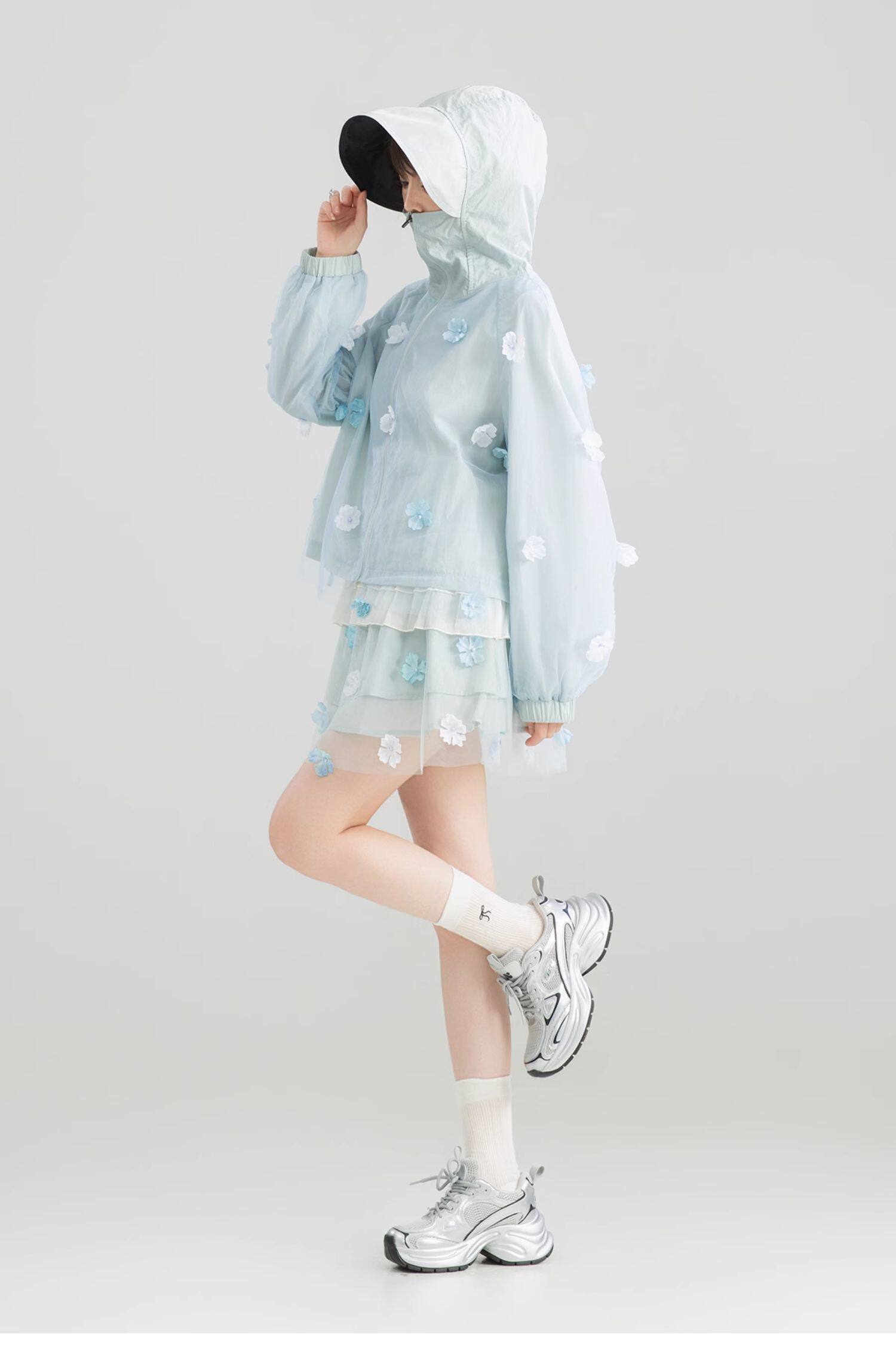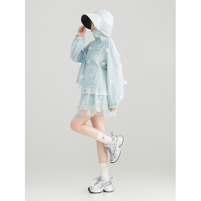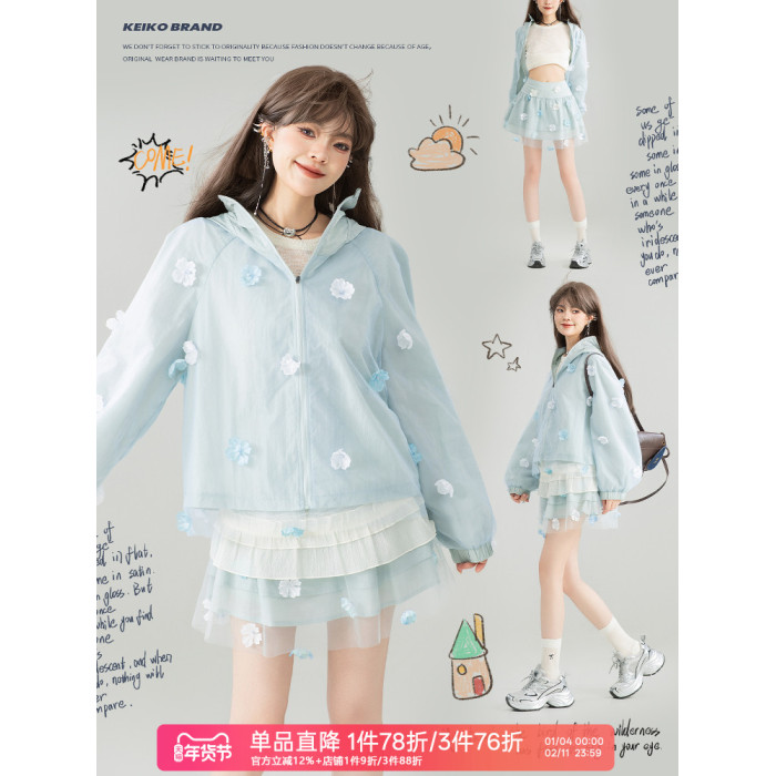 KEIKO UPF50+ 花漾立體紥花防曬衣女春夏大帽簷防紫外線薄款外套