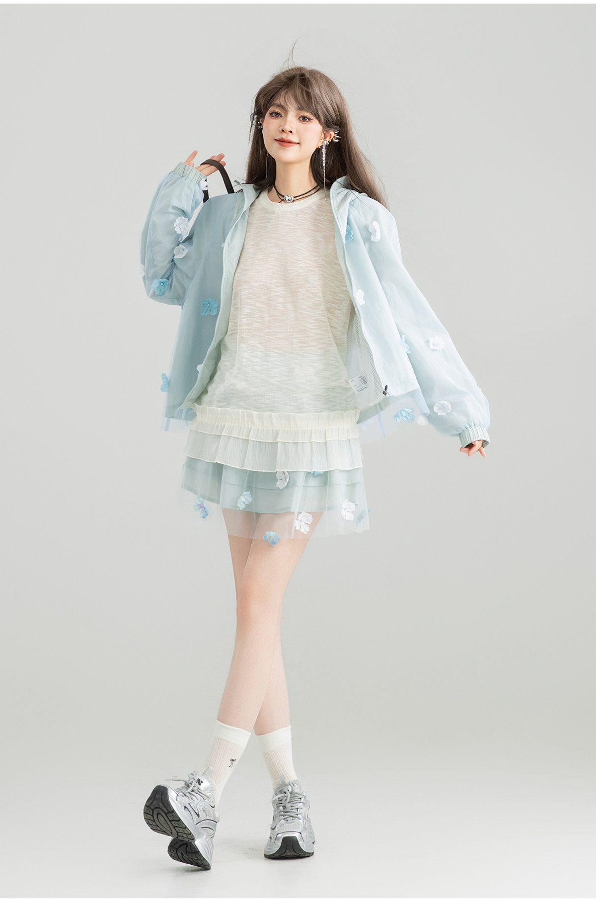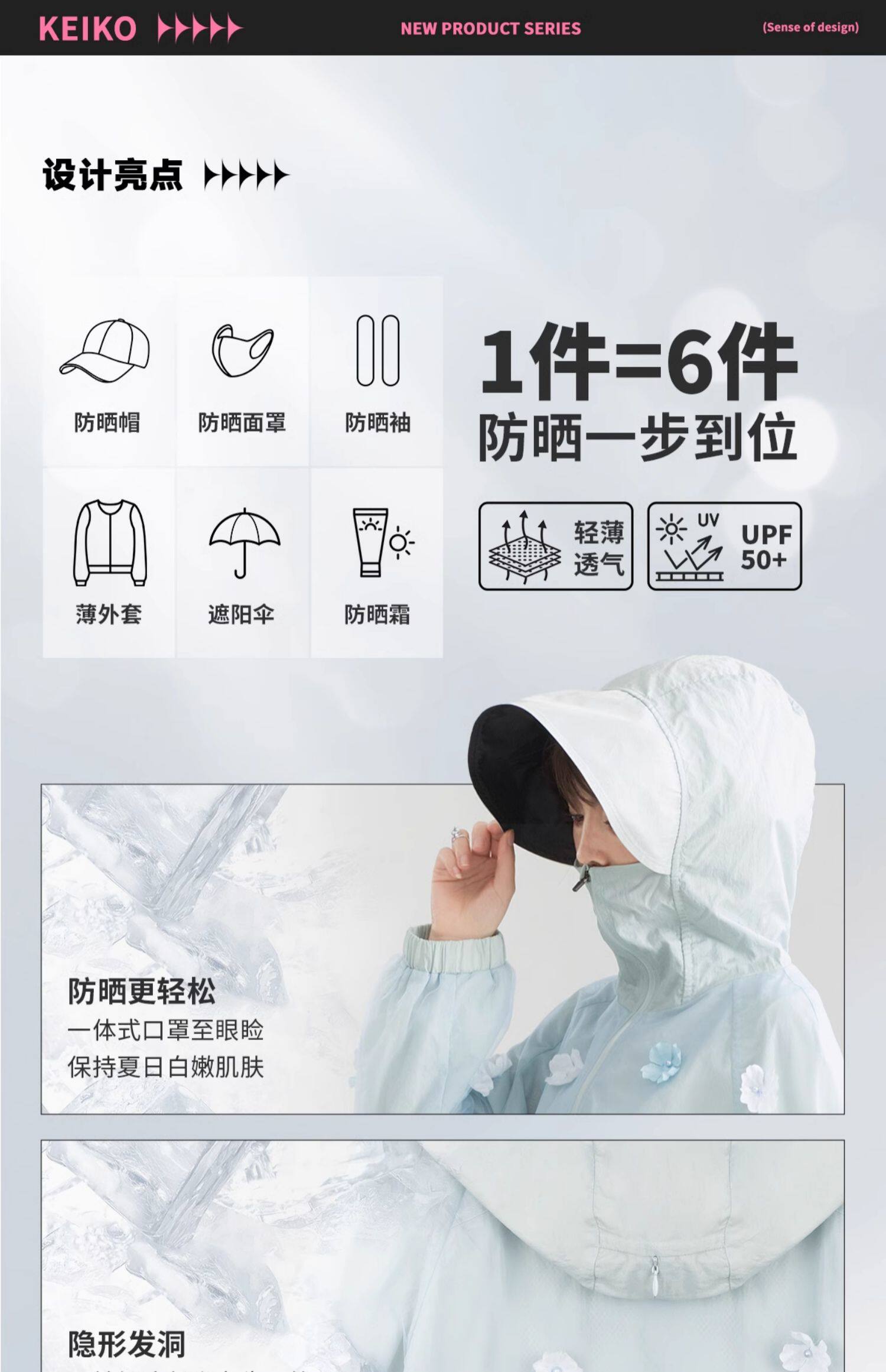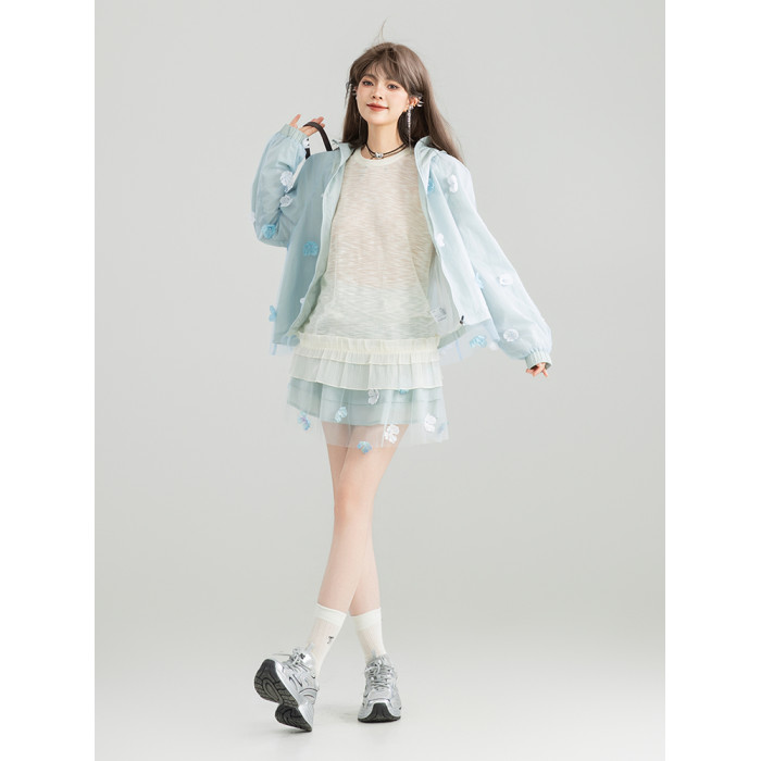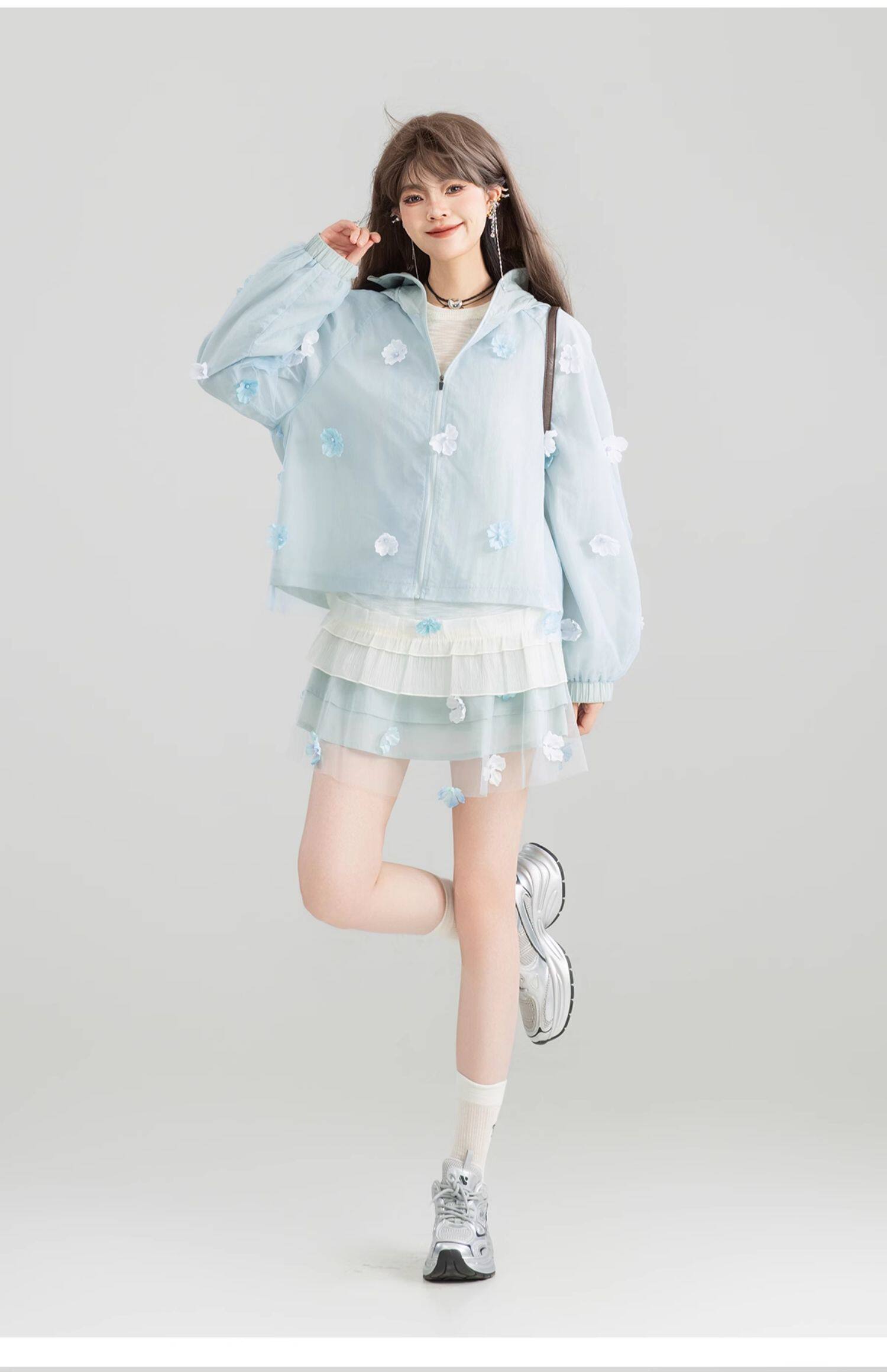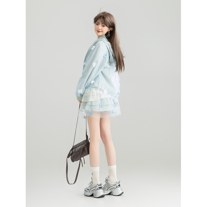 KEIKO UPF50+ 花漾立體紥花防曬衣女春夏大帽簷防紫外線薄款外套