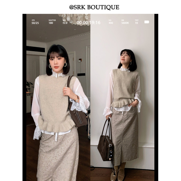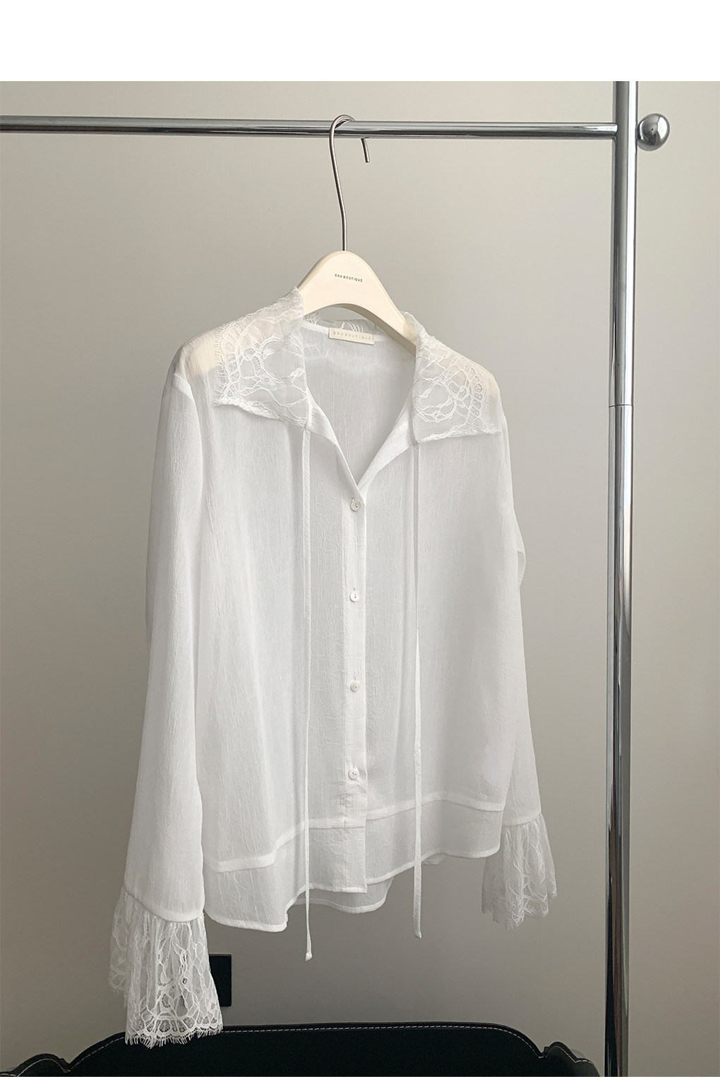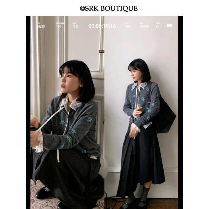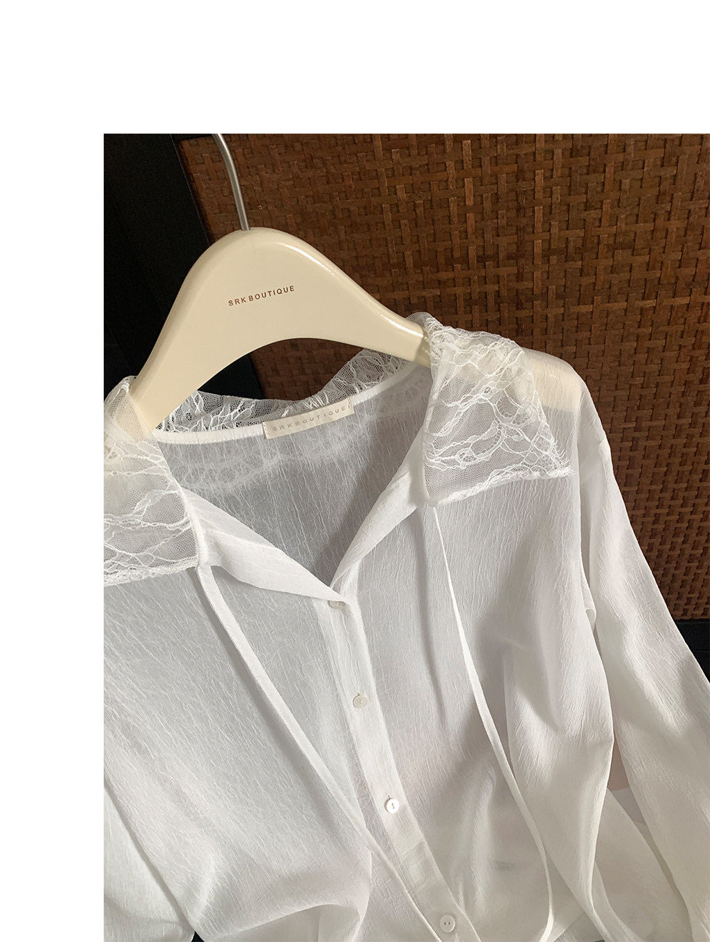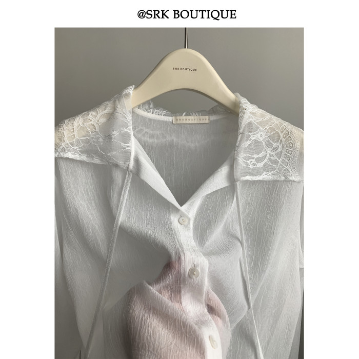 SRK 法式高級蕾絲拼接白襯衫設計感繙領甜美曡穿時尚顯瘦上衣女