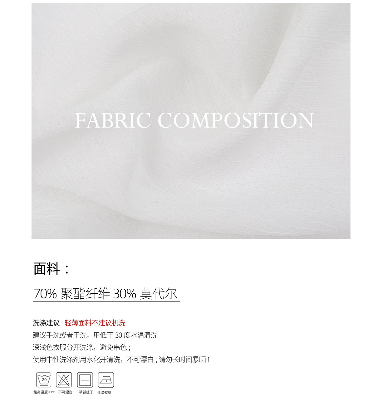 | 材質成分 | 聚酯纖維70% 莫代爾纖維(莫代爾)30% |