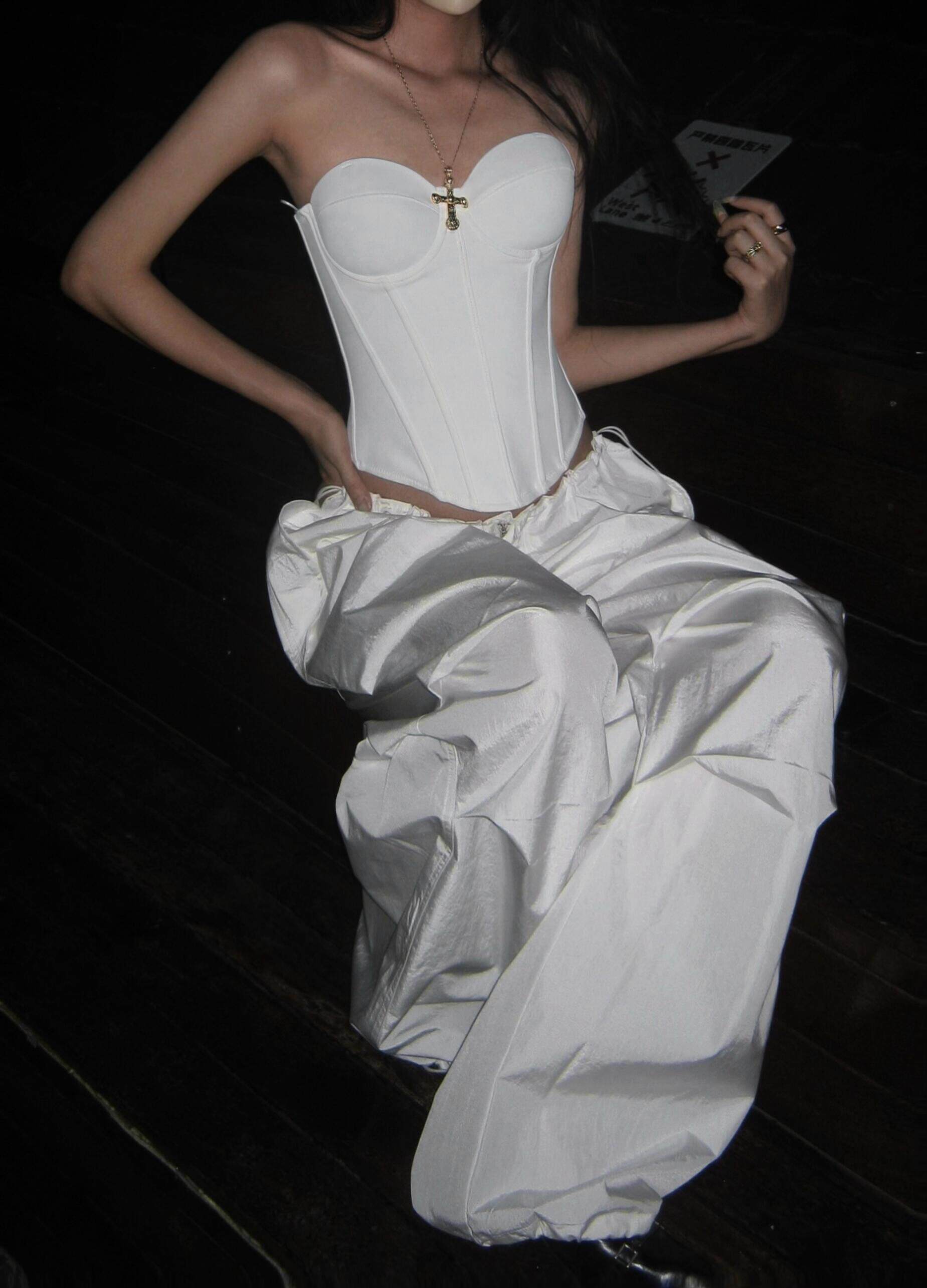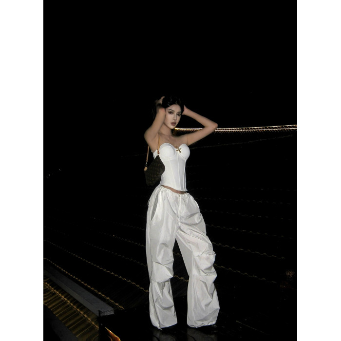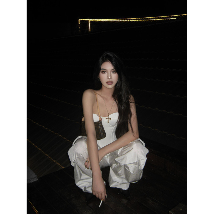OUTFlT STUDIO 歐美辣妹風白色修身魚骨束腰女性感短款束身衣