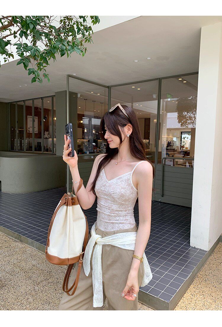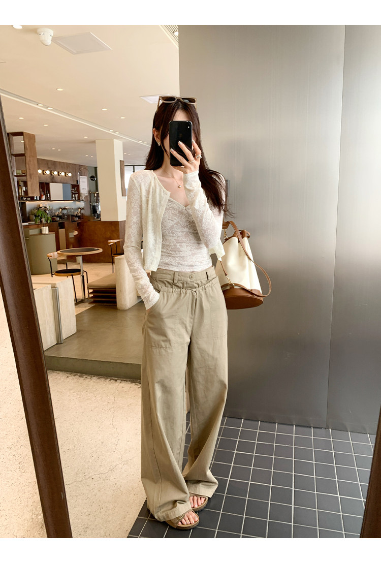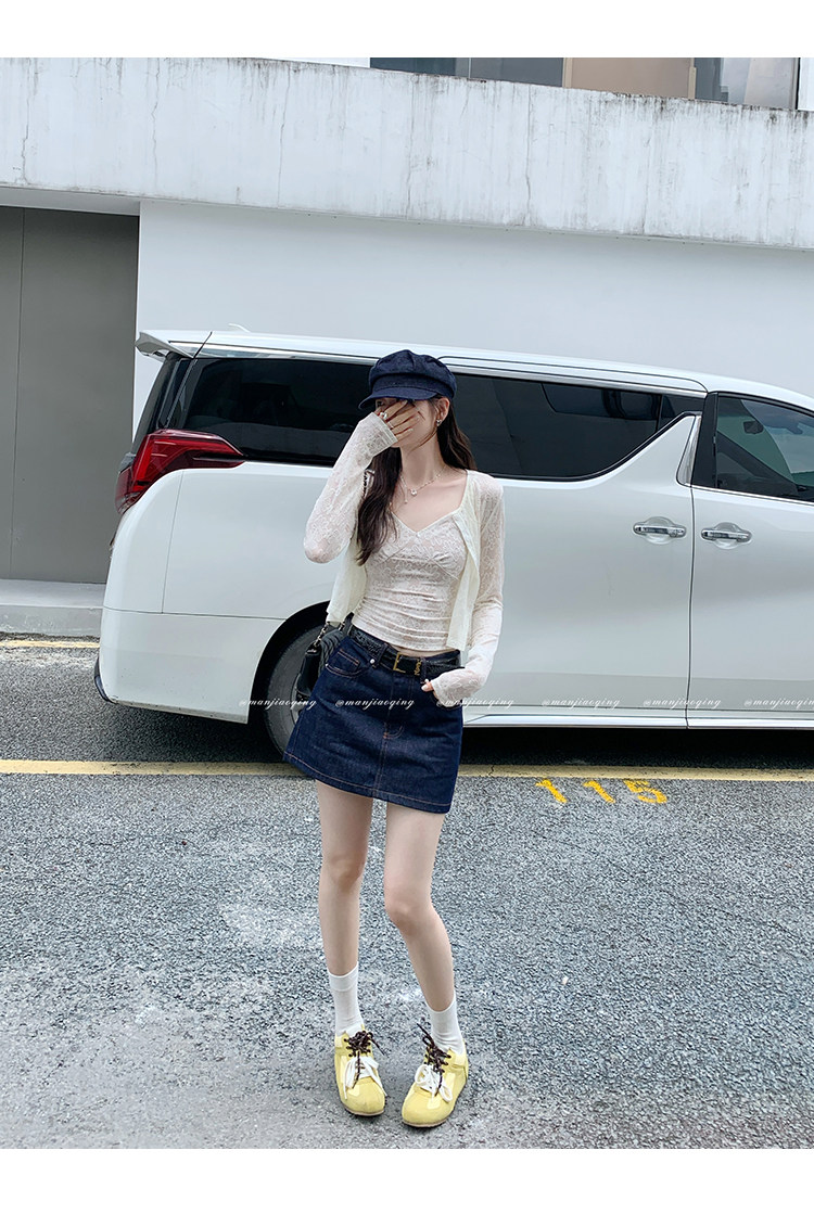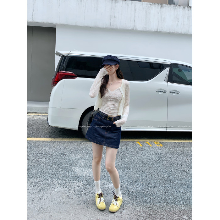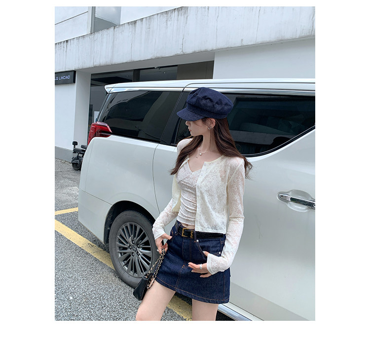 蕾絲吊帶長袖防曬開衫T恤外套兩件套裝女夏季薄款高級感短款上衣