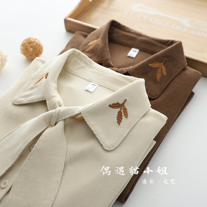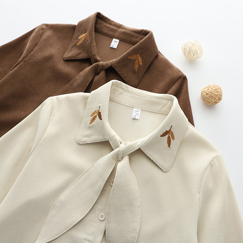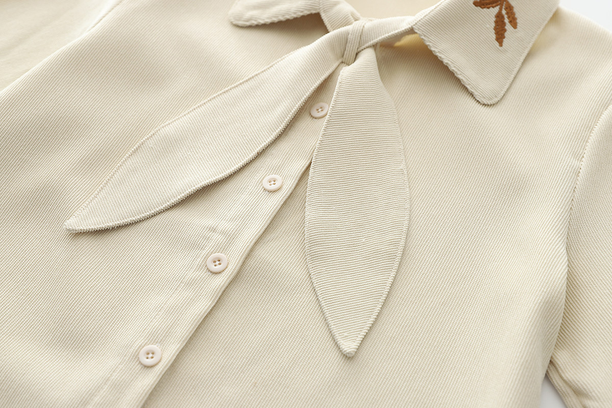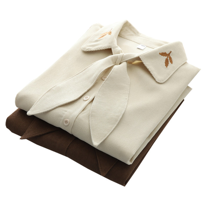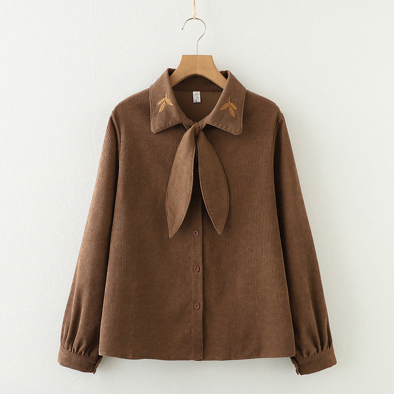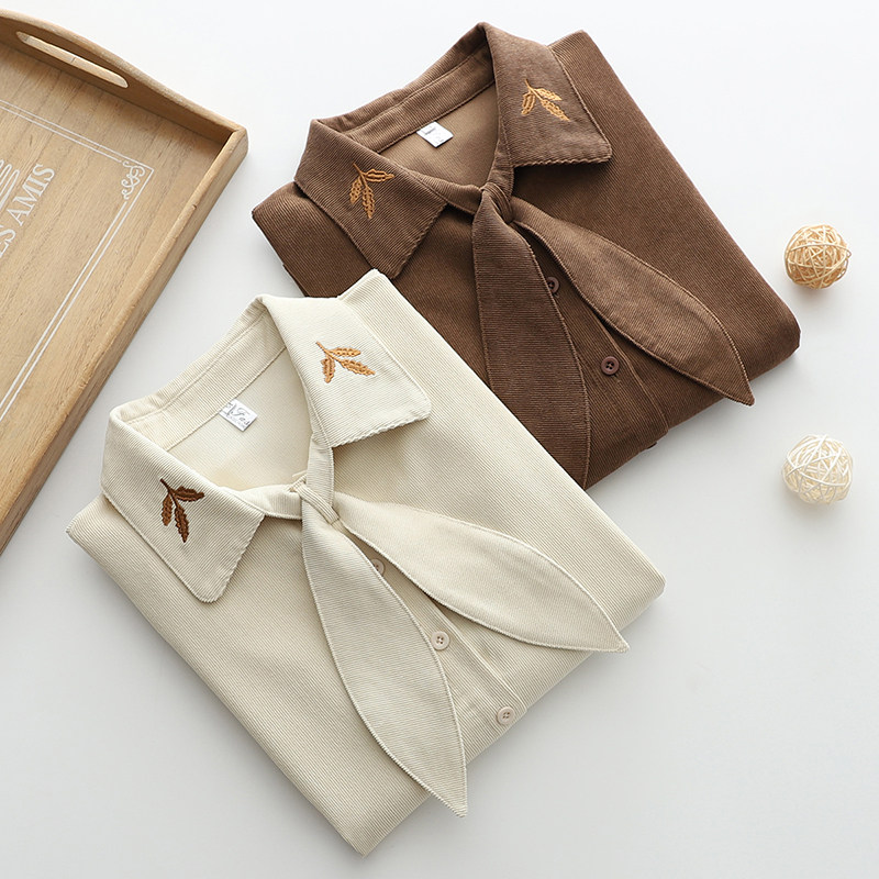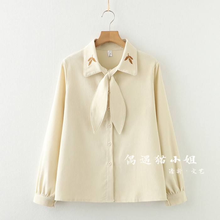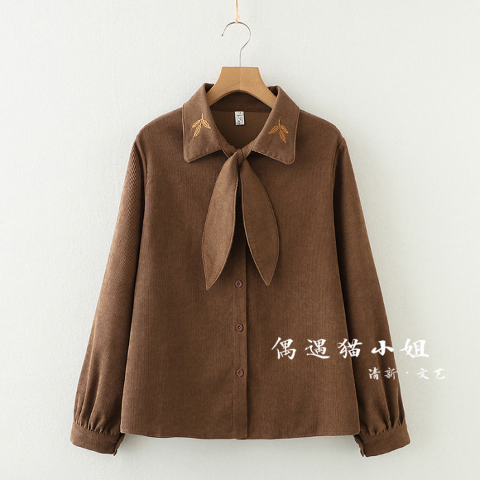 2025秋季新款燈芯絨兔耳蝴蝶結長袖襯衫女內搭甜美設計感小衆上衣