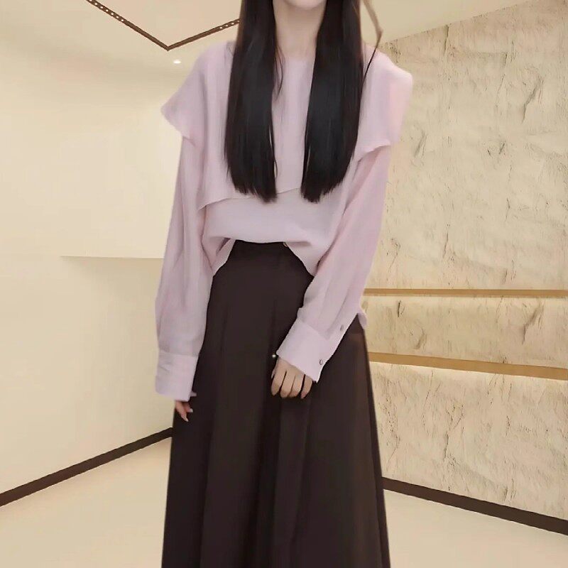 大碼女韓系寬鬆不規則拼接襯衫早春2026新款胖mm顯瘦獨特絕美上衣