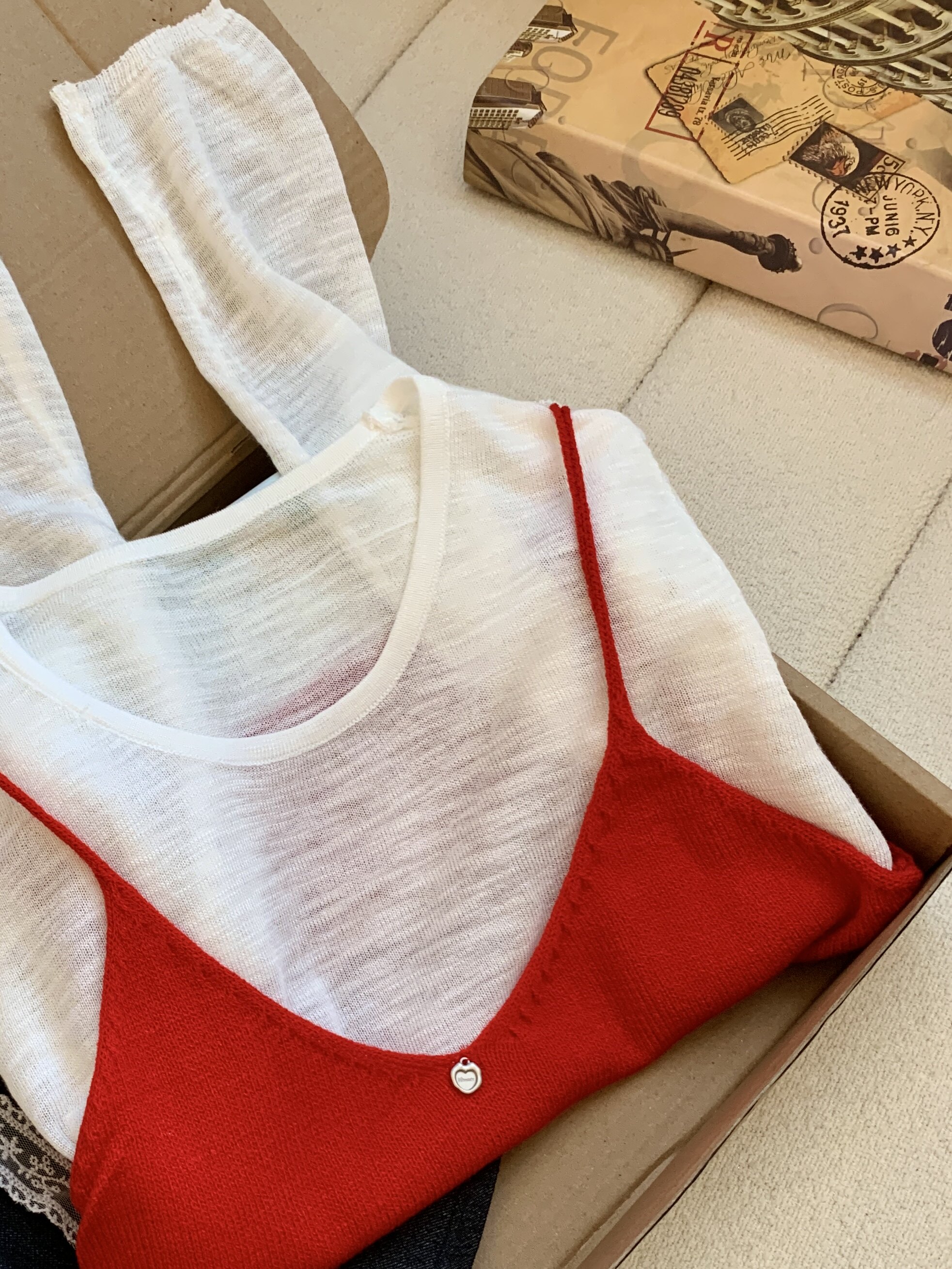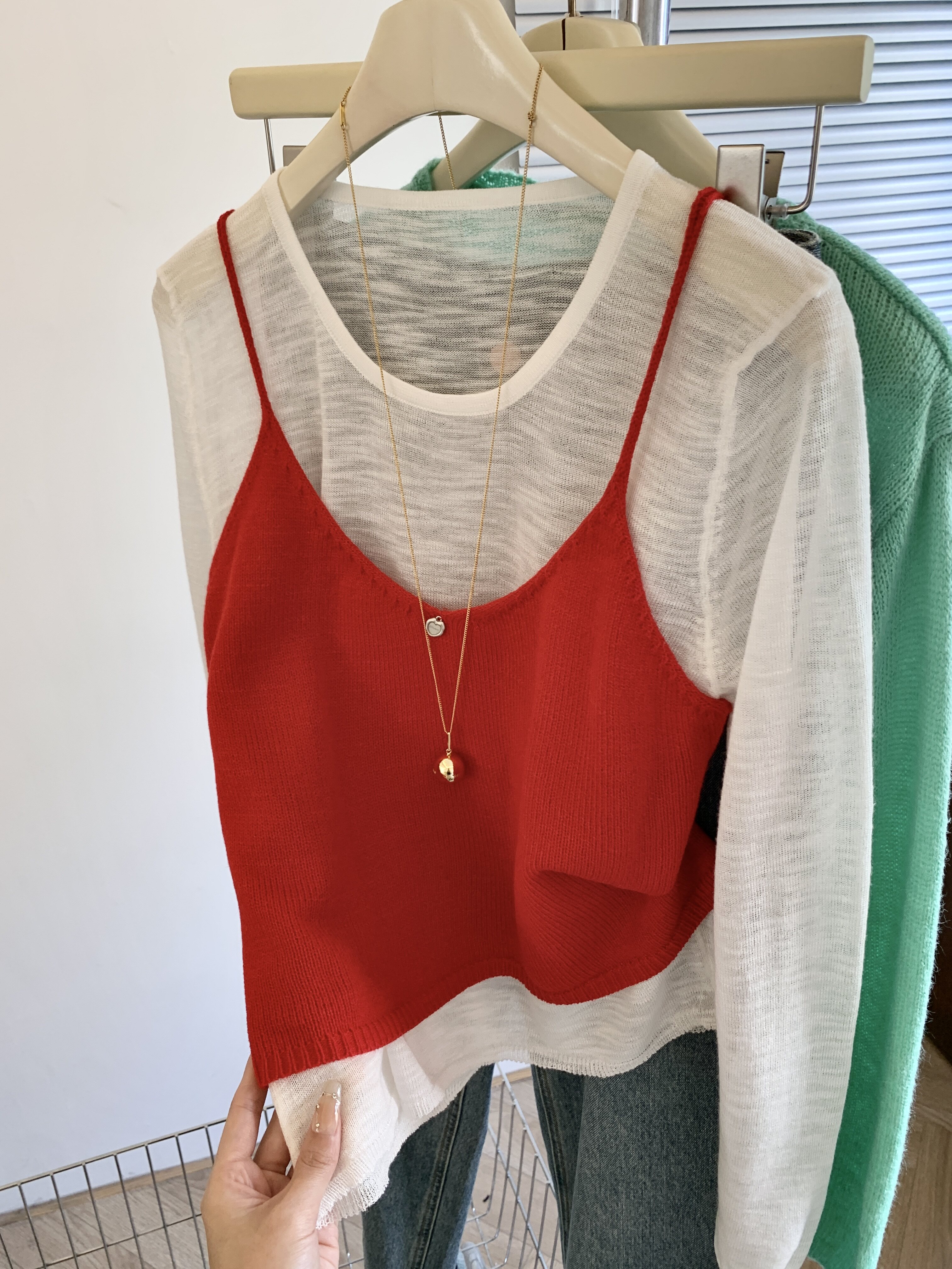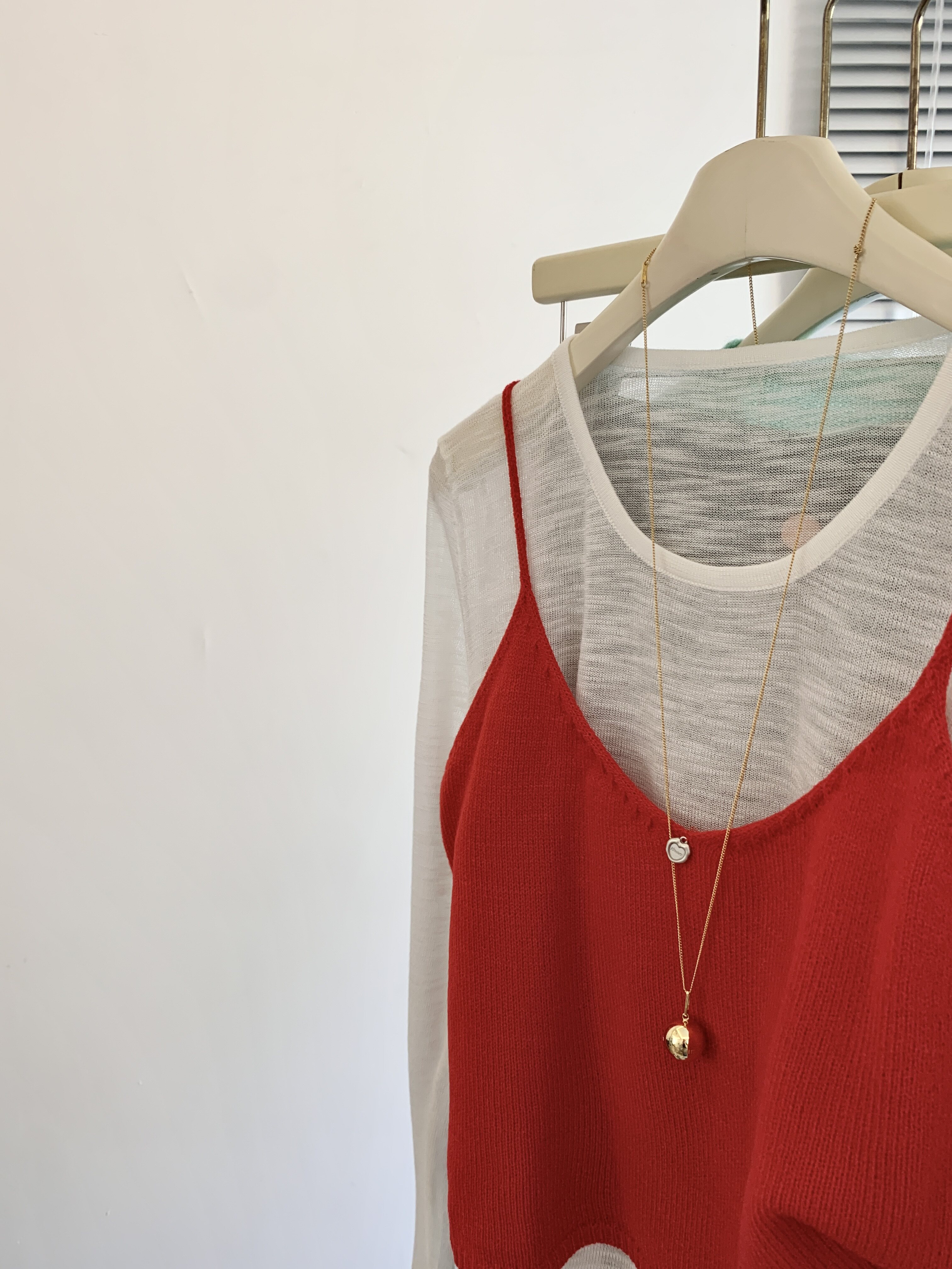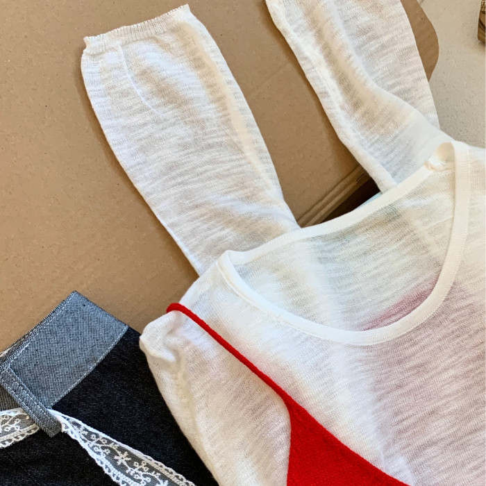 專櫃撤廻剪標韓系圓領薄款長袖T恤女夏季新款針織吊帶曡穿兩件套