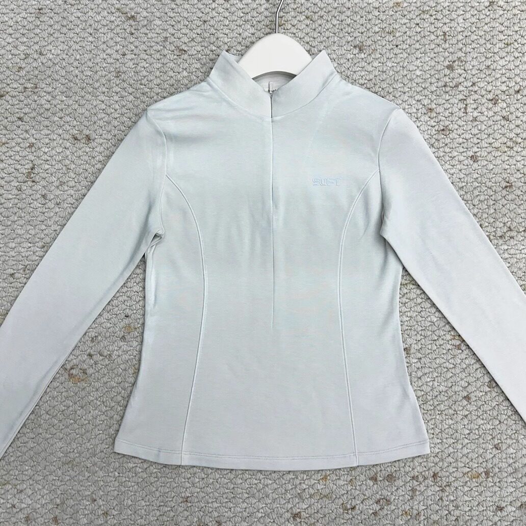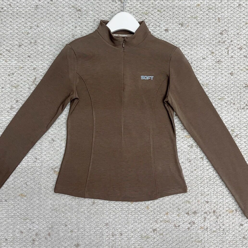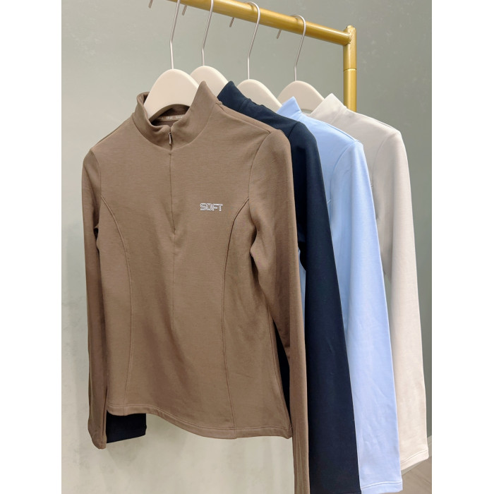 半高領 修身拉鍊 薄絨長袖 打底衫