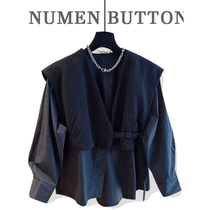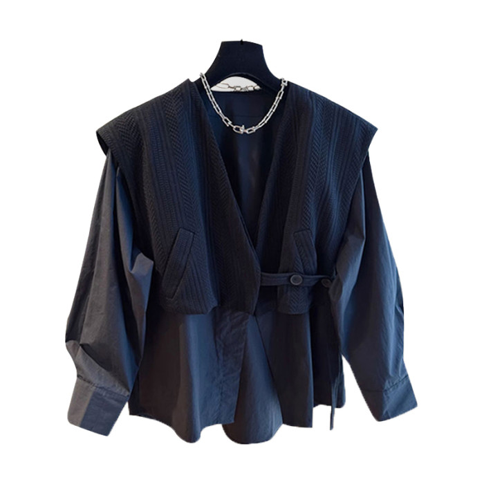 大碼春秋裝慵懶風高級感超好看襯衫女2026新款黑色寬鬆假兩件上衣