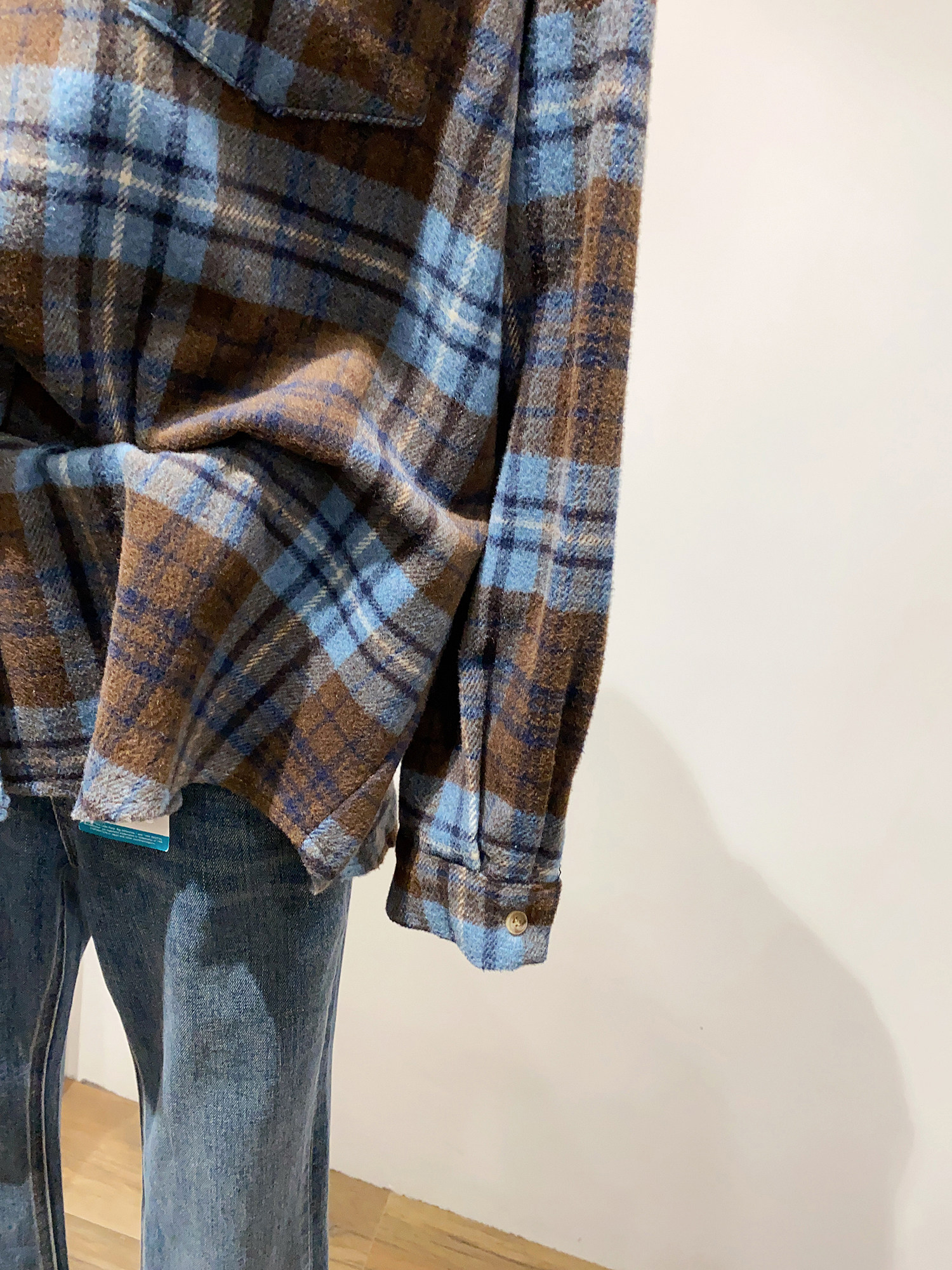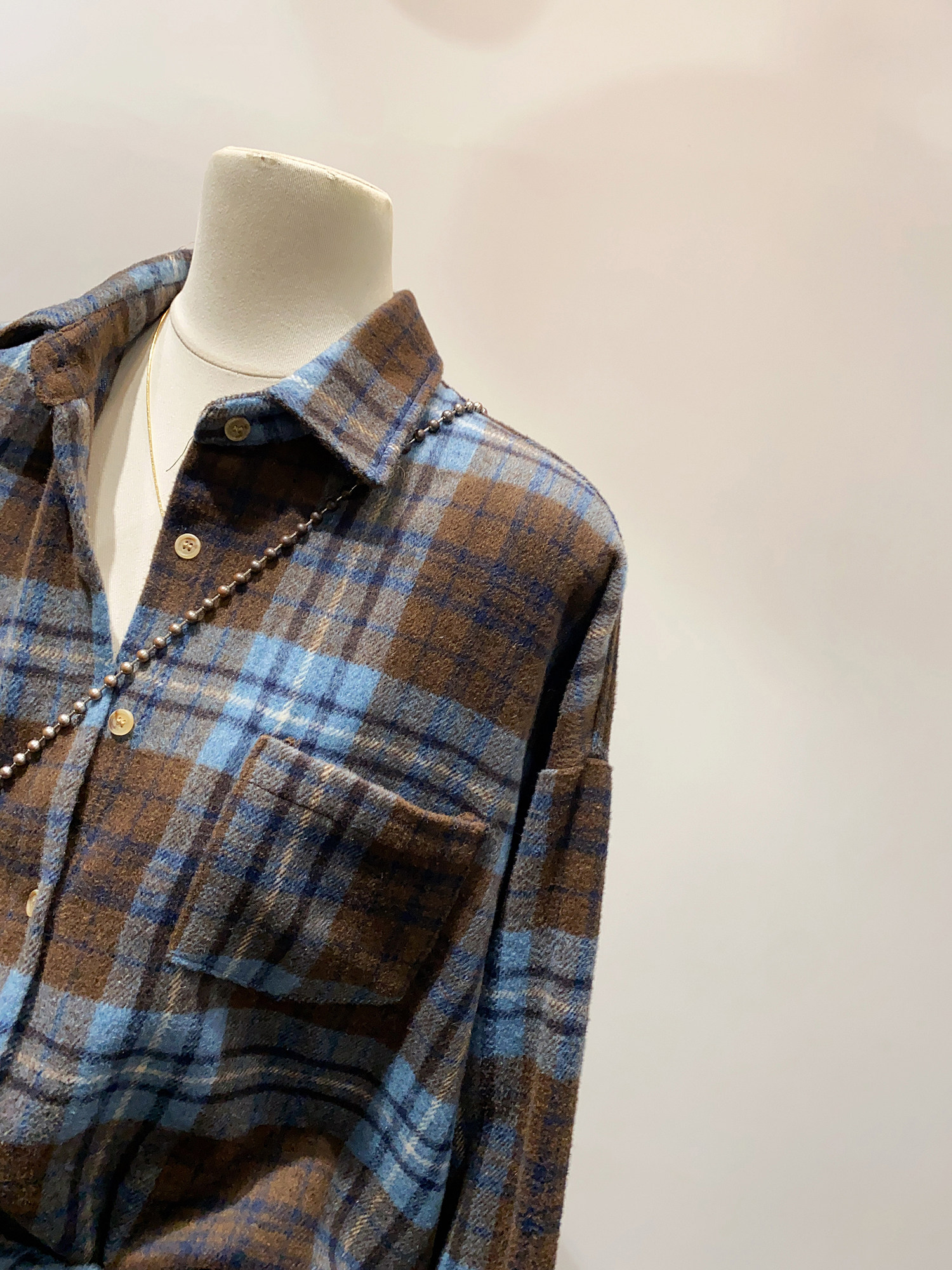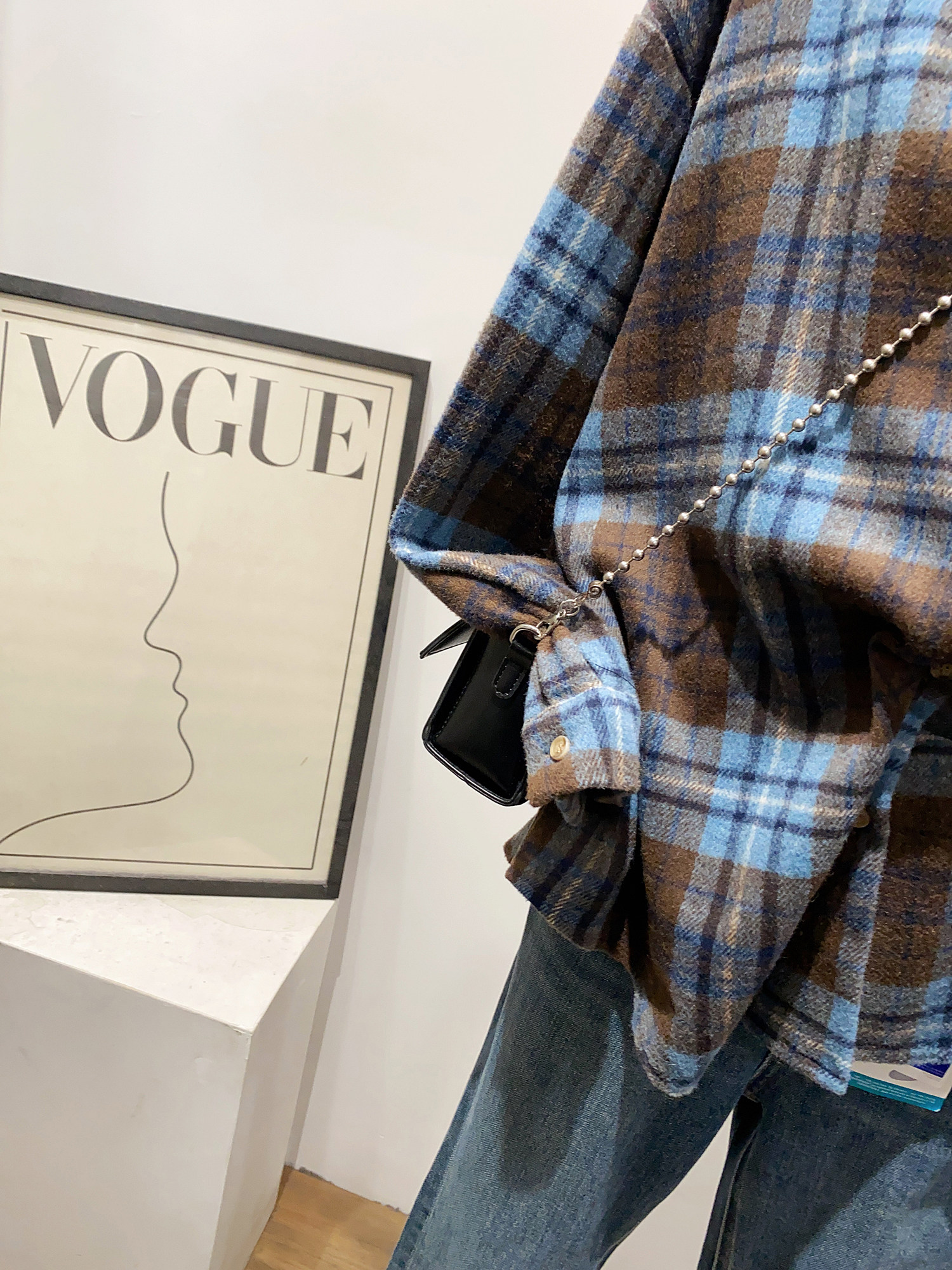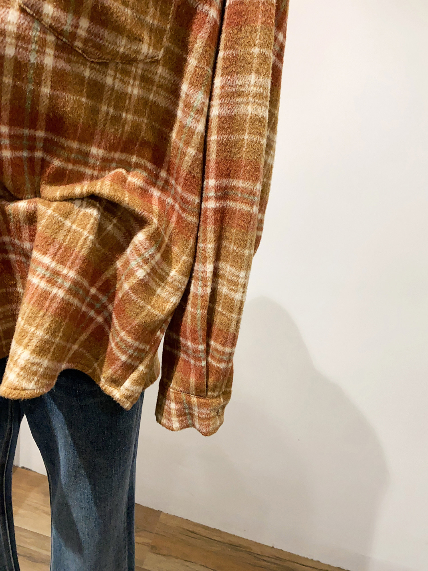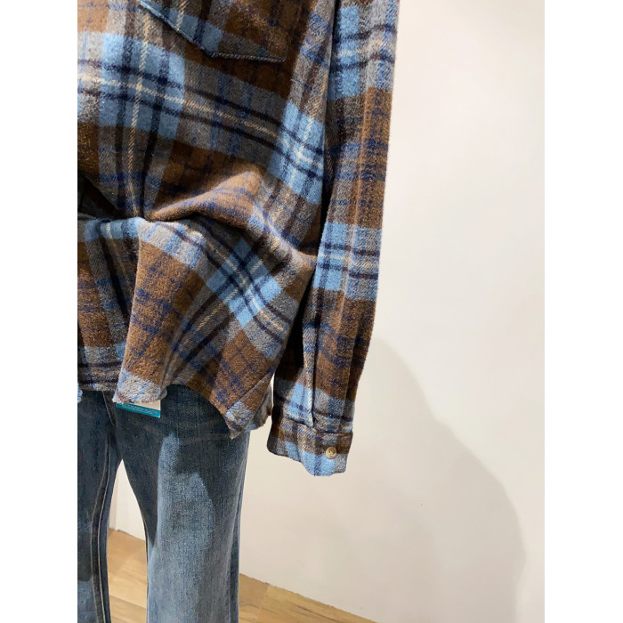 怎麽搭都好看~日系文藝感單口袋磨毛格子襯衫女秋冬款慵懶感上衣
