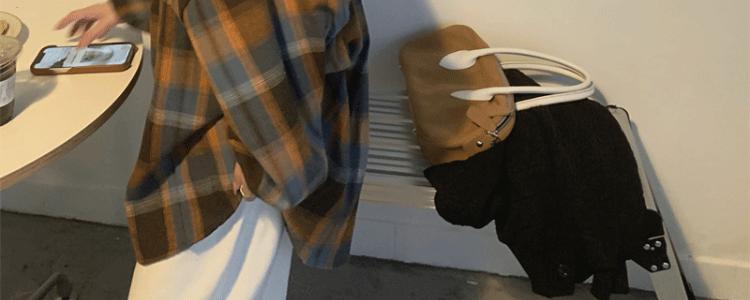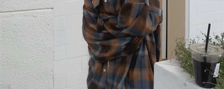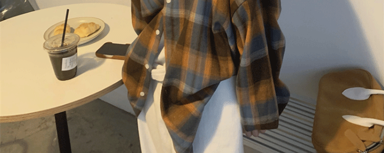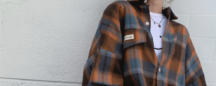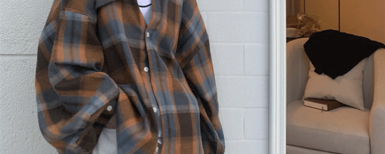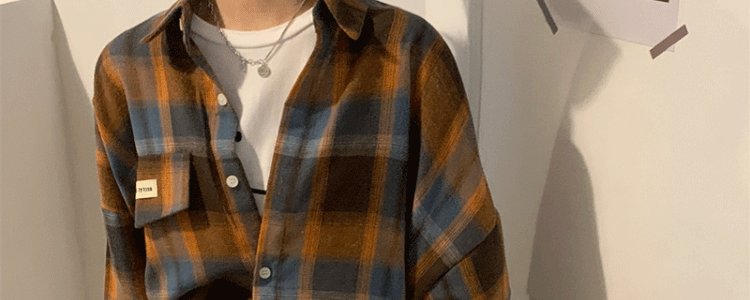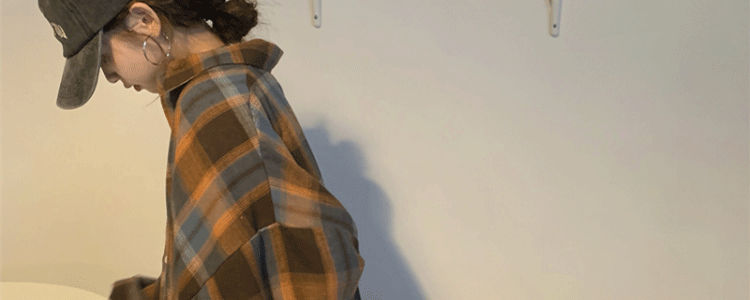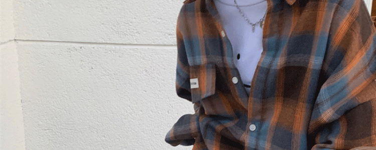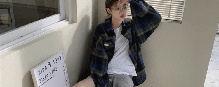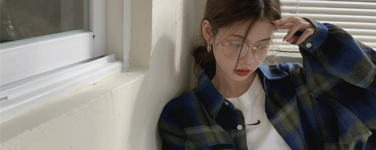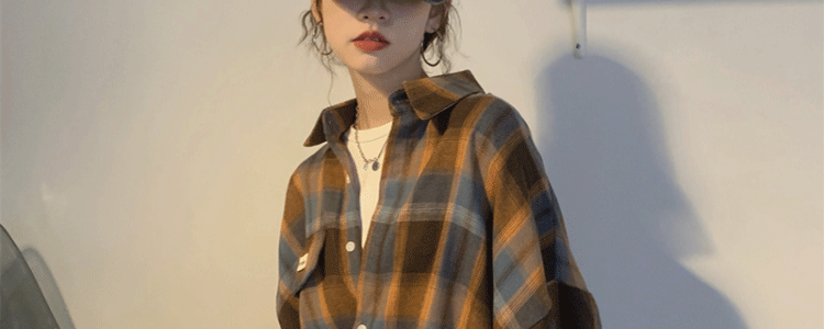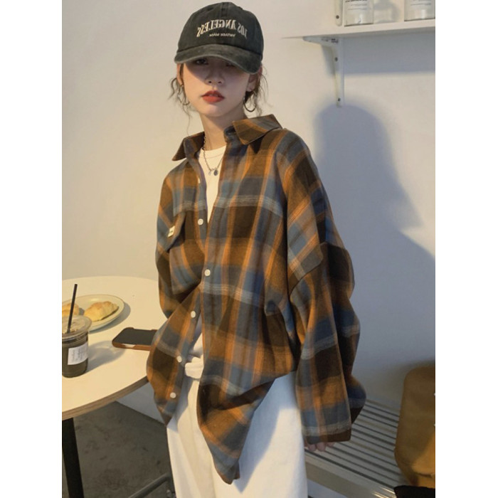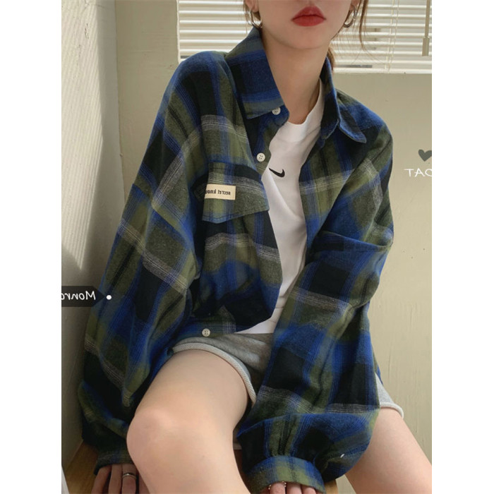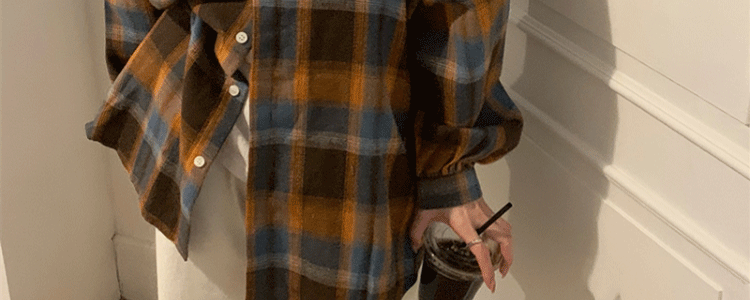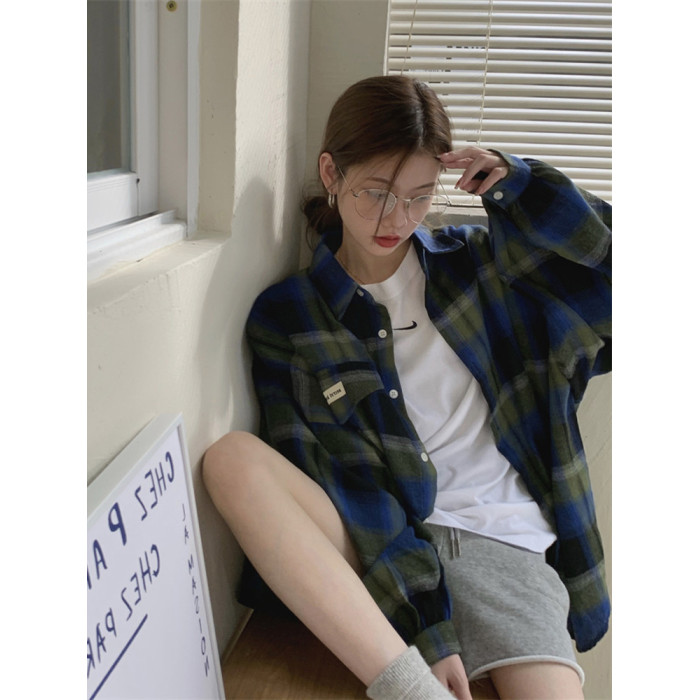 磨毛藍色格子襯衫女秋美式復古小個子長袖上衣外套學生中長款襯衣