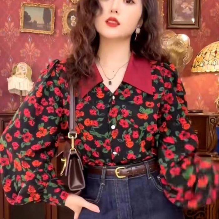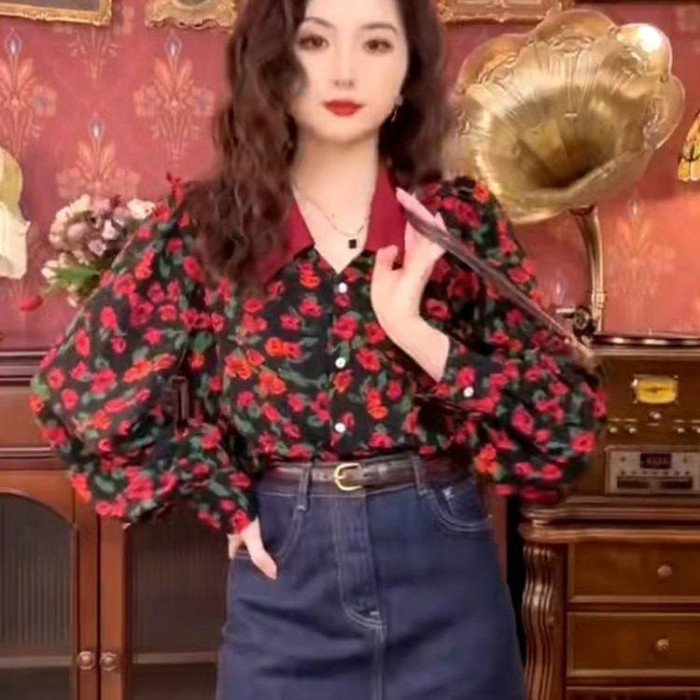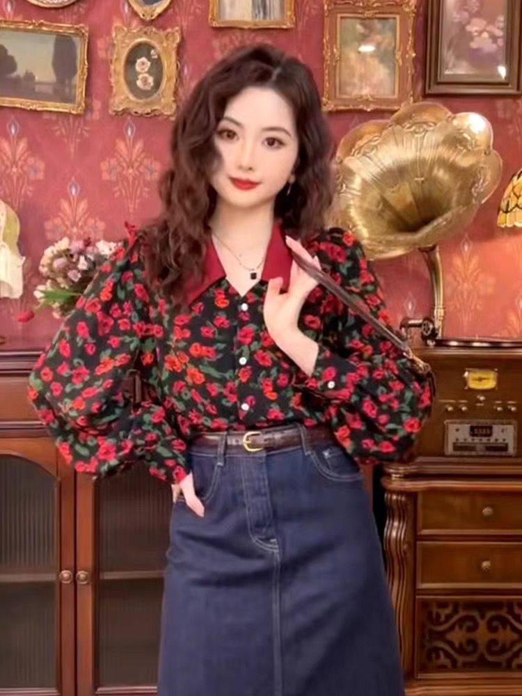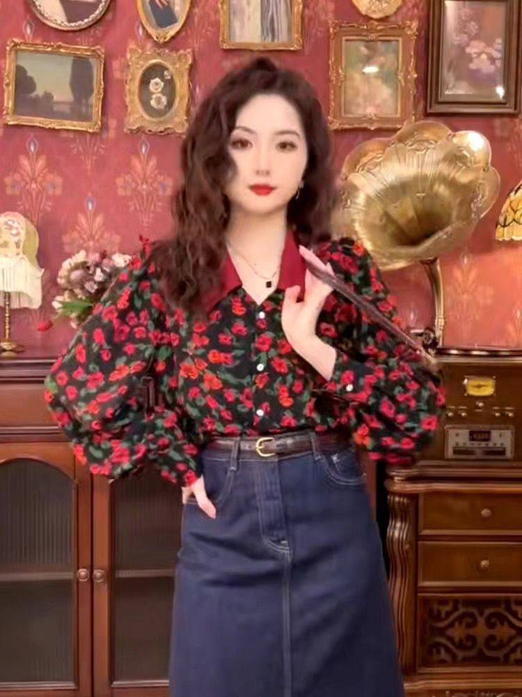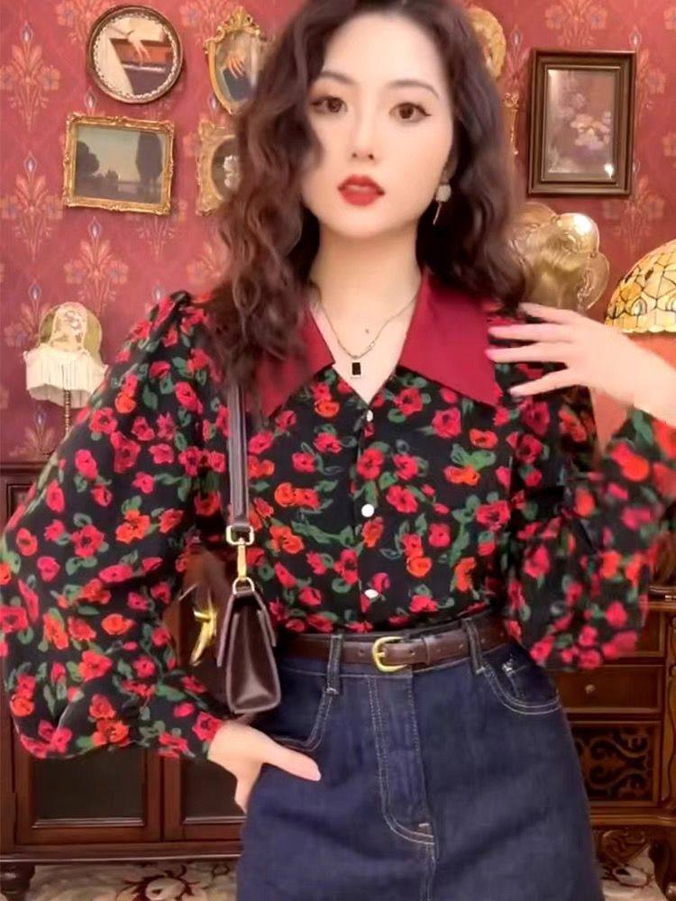 港風復古碎花襯衫女歐貨春秋2025新款氣質時尚洋氣長袖高級感上衣