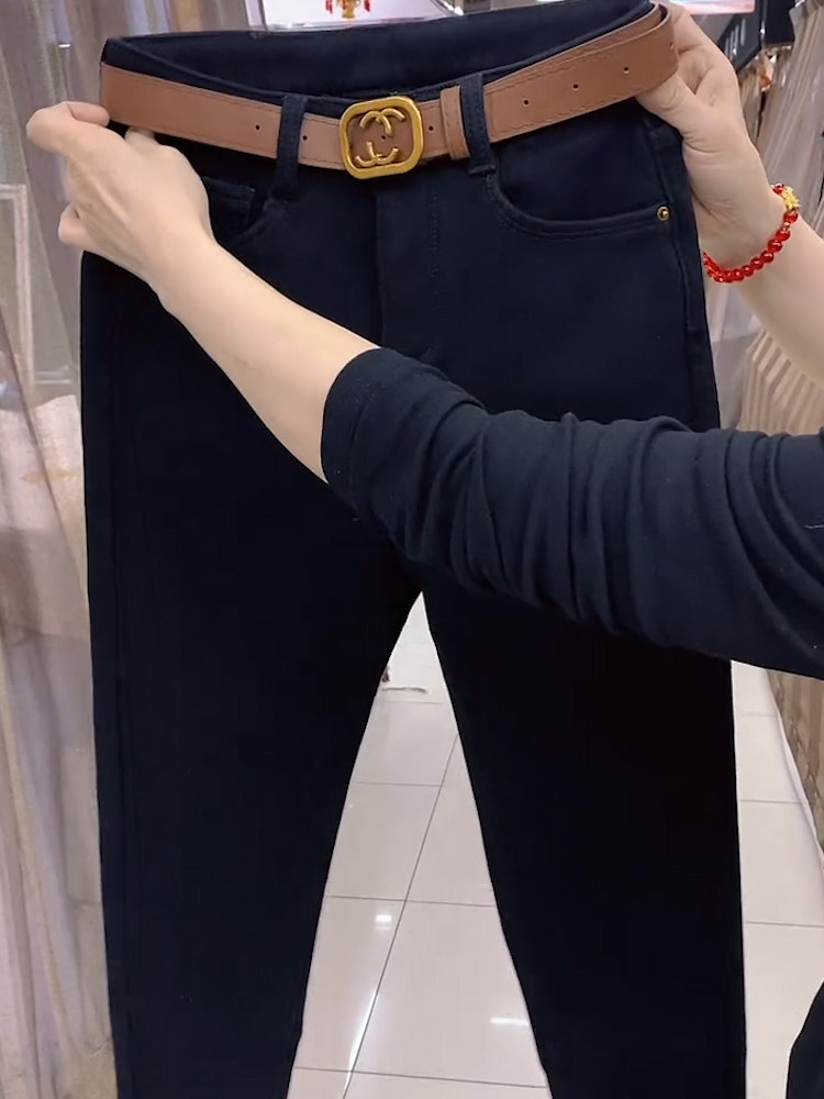 今年新款黑色加厚牛仔褲女秋季韓版高級洋氣街頭質感保暖哈倫褲