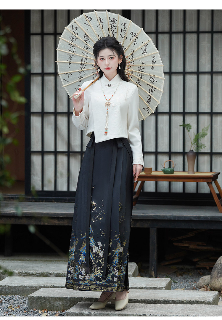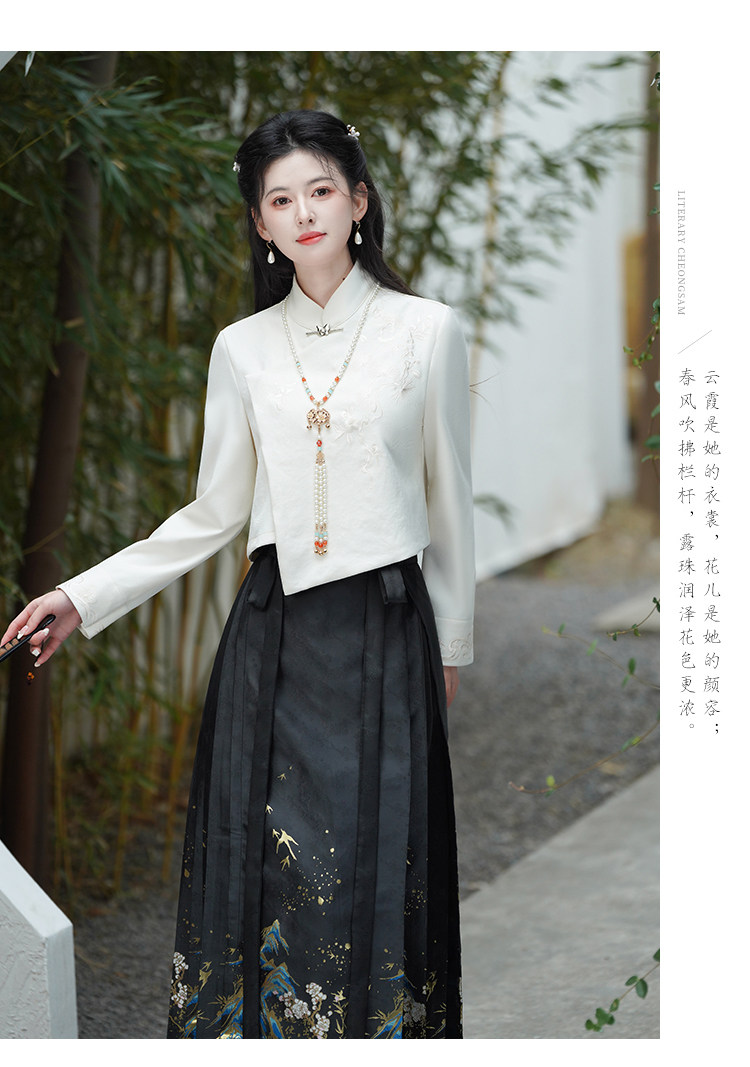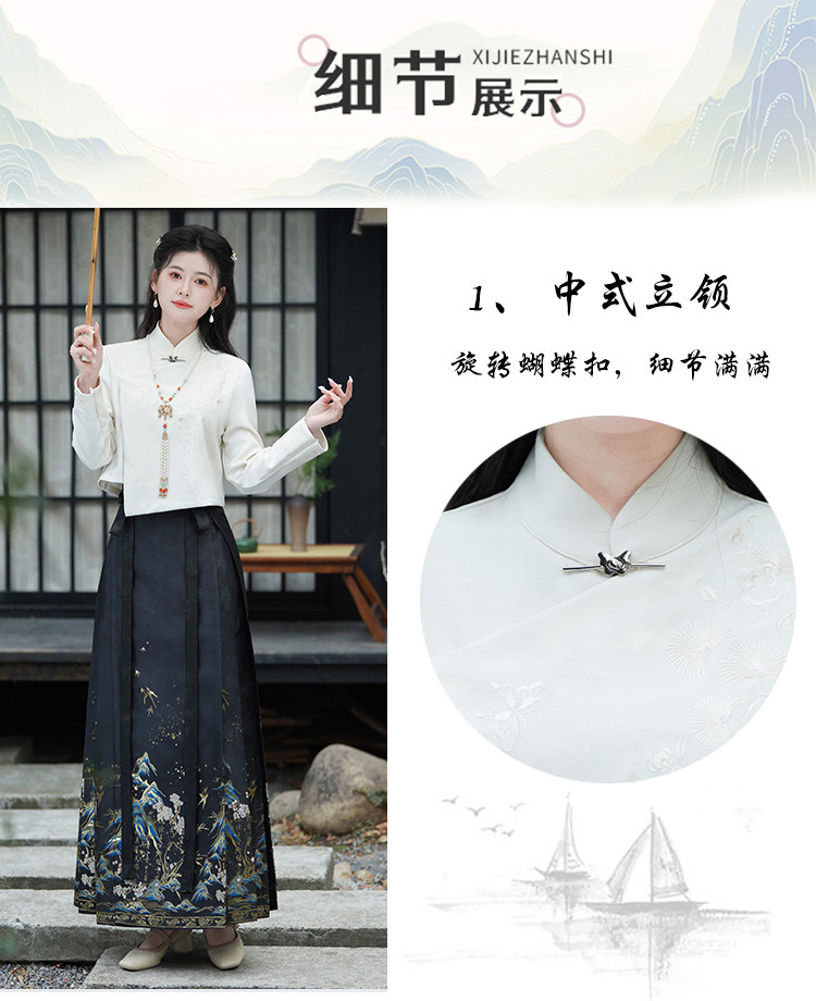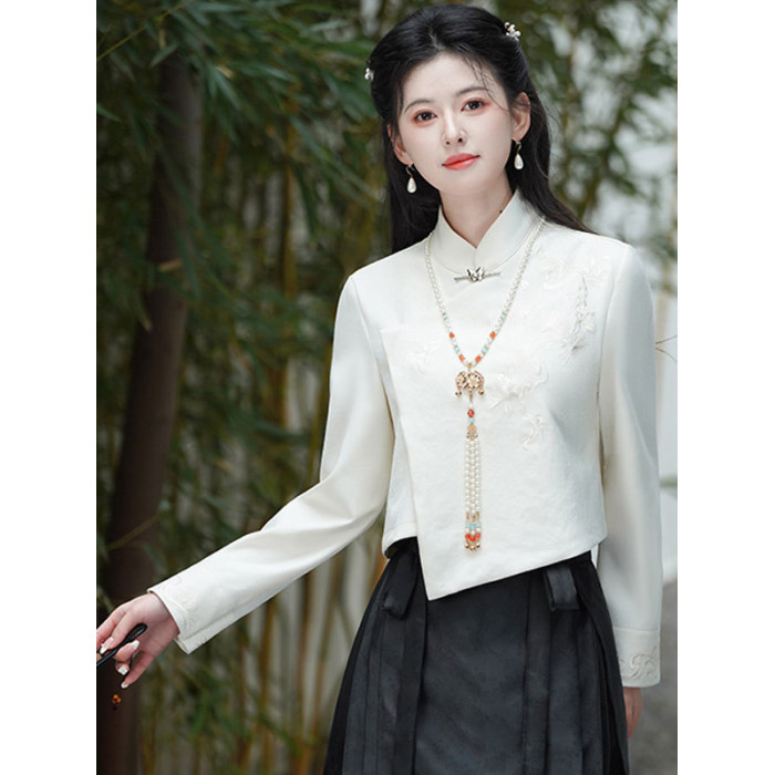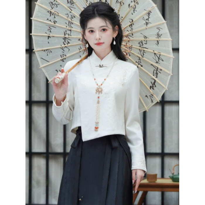 新中式國風盤釦襯衫女氣質高級感小衆馬面裙上衣搭配春秋2026新款