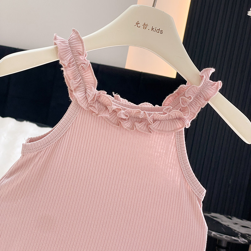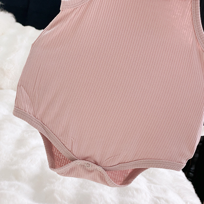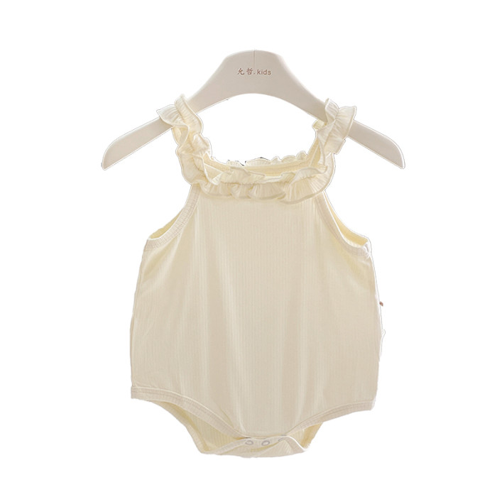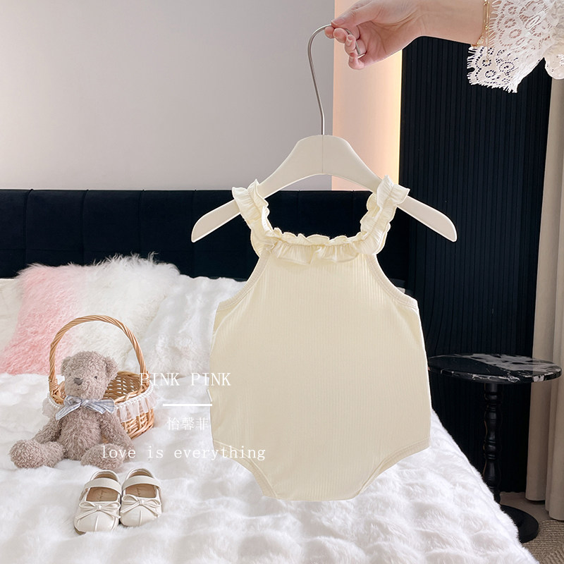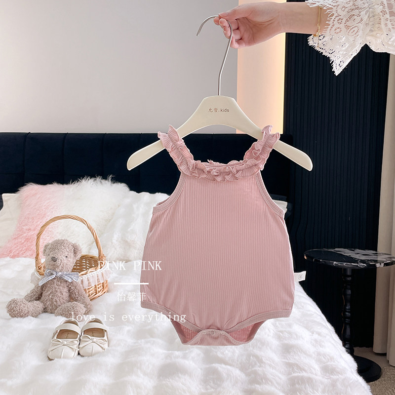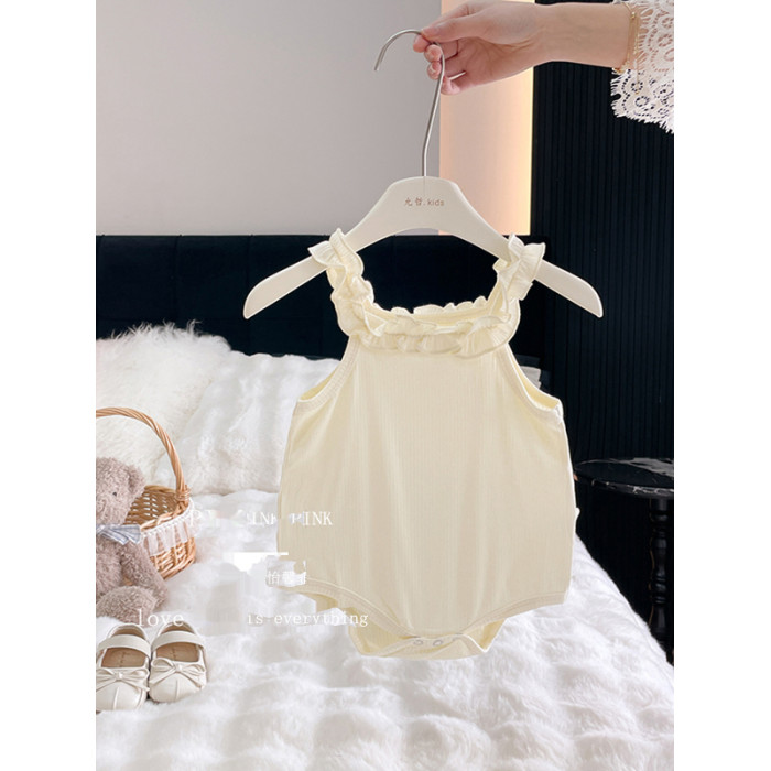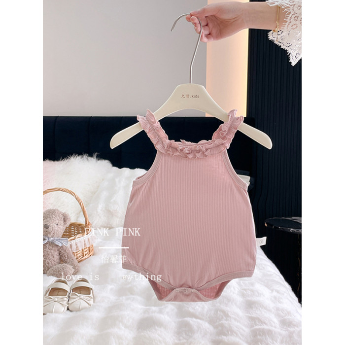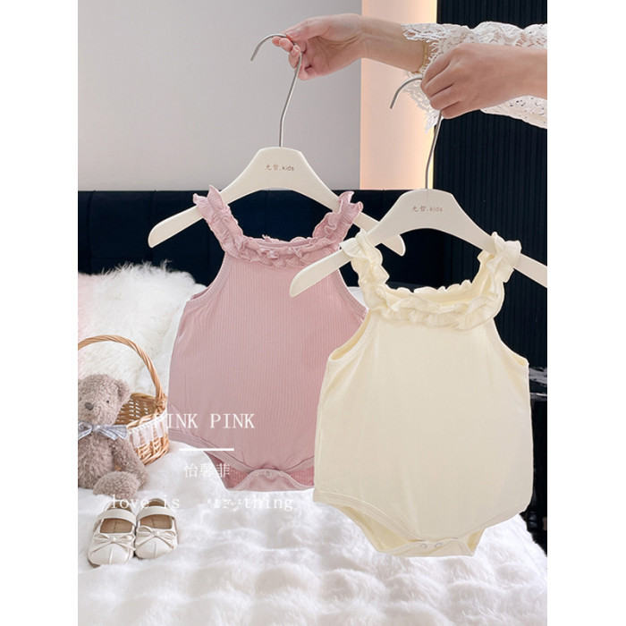 【閉眼入】夏季新款嬰兒可愛木耳邊吊帶連體衣女寶寶甜美無袖背心