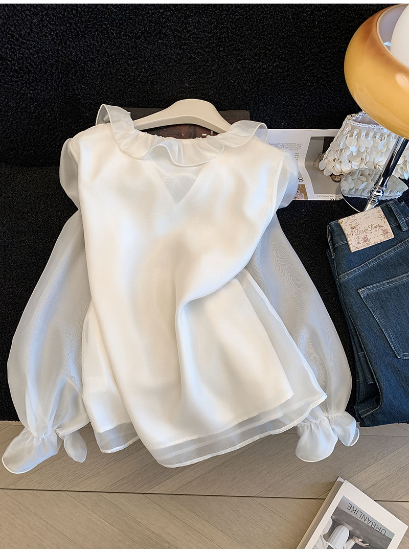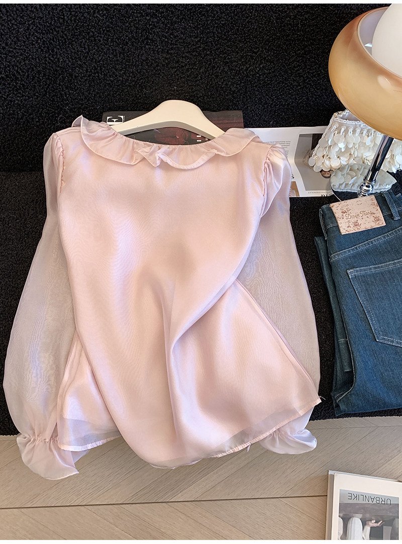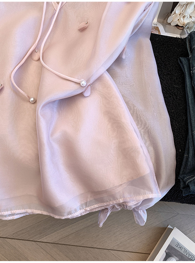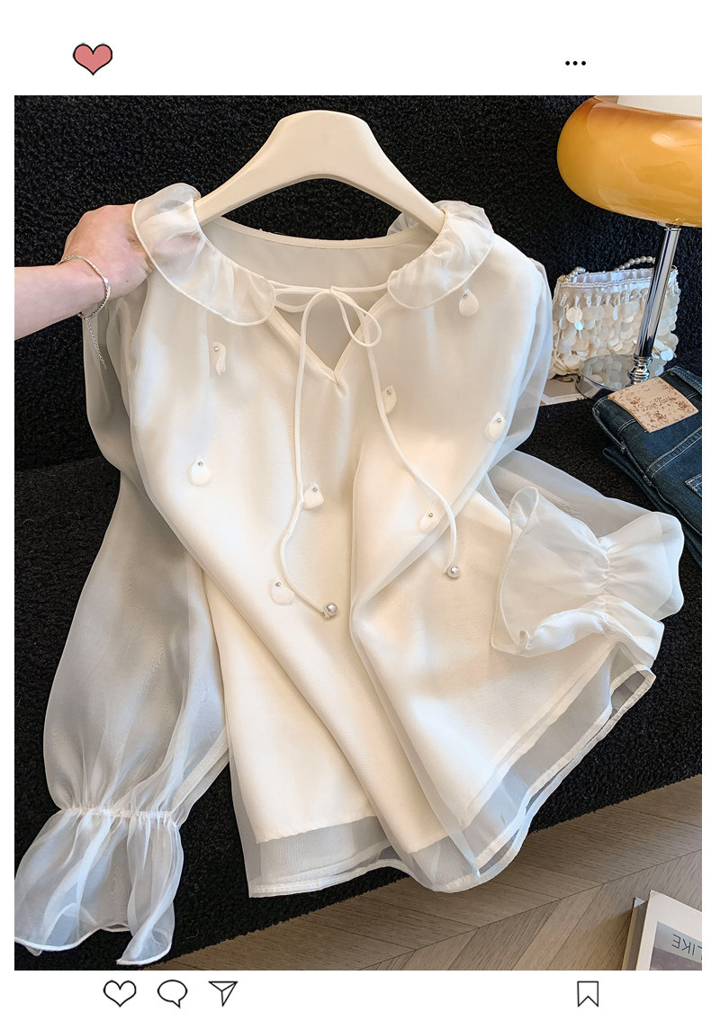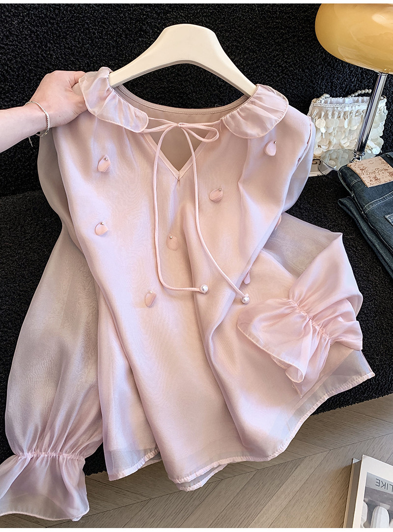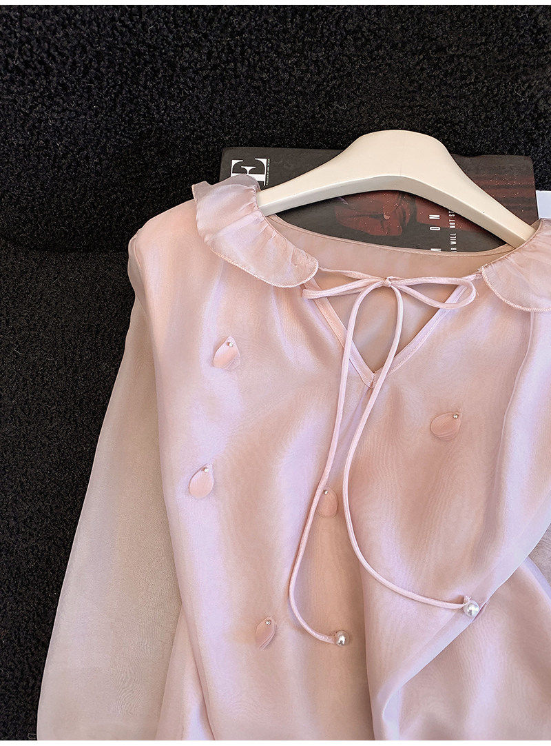 自畱款推薦~溫柔風立體花朵釘珠系帶襯衫女2026春季新款減齡上衣