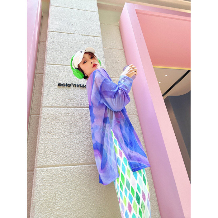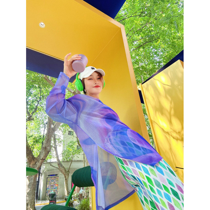 冰絲漸變防曬衣女夏季新款寬鬆長袖罩衫運動健身房瑜珈上衣