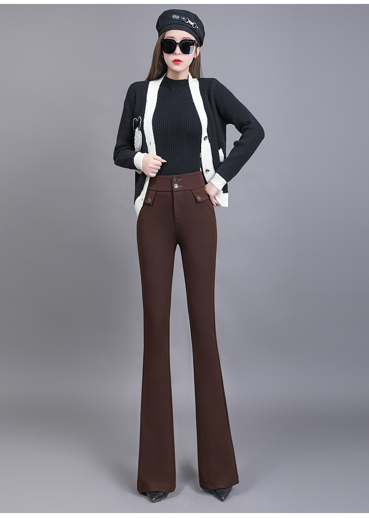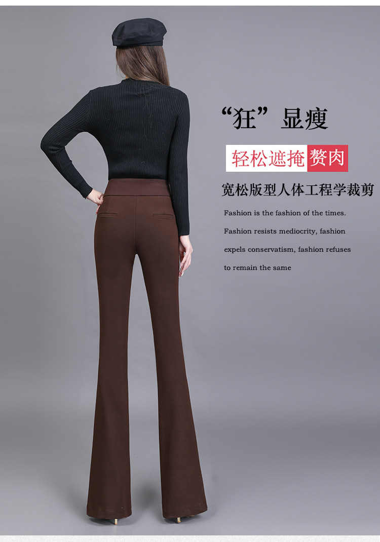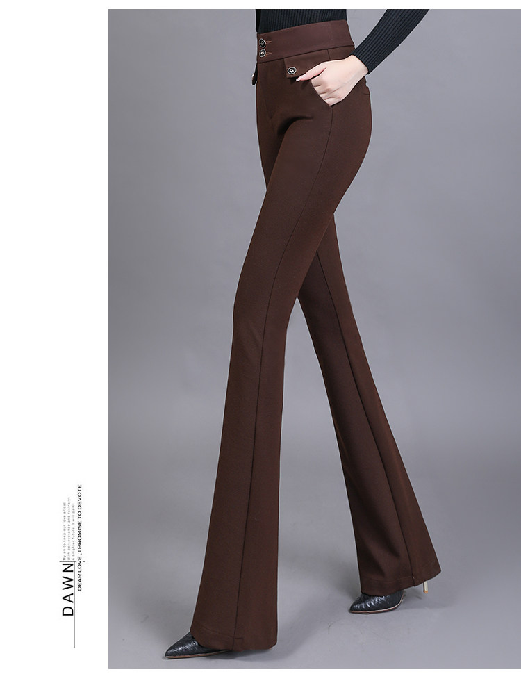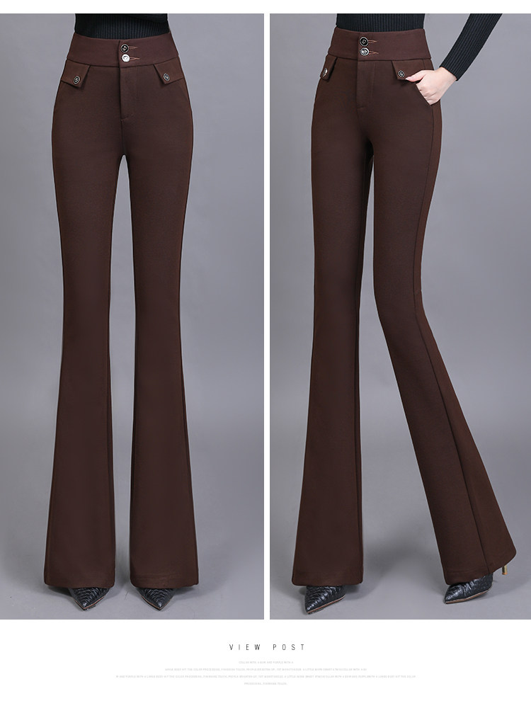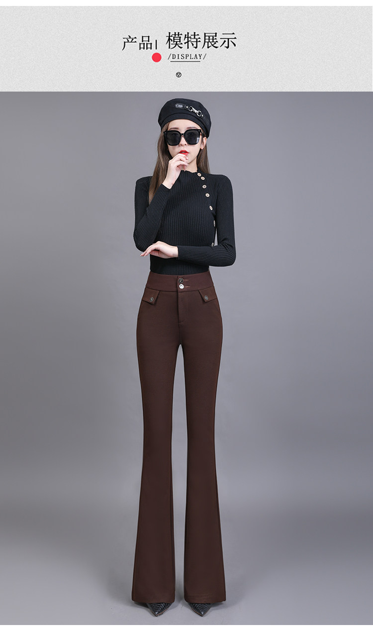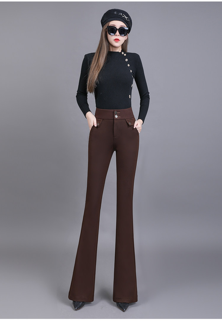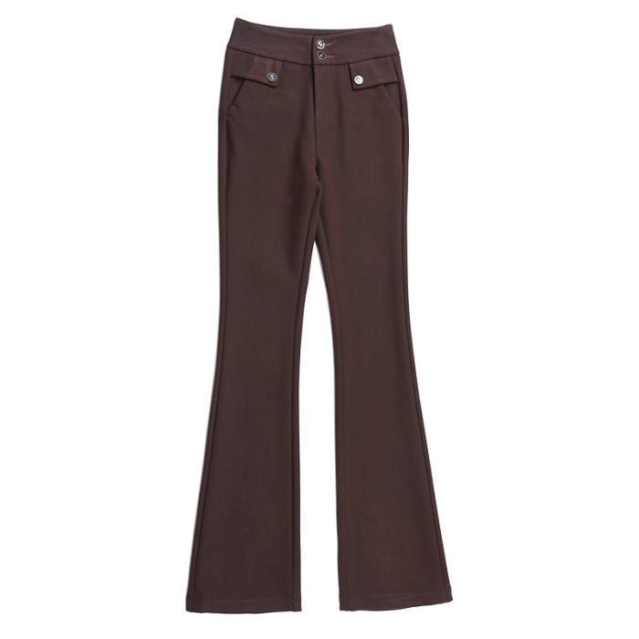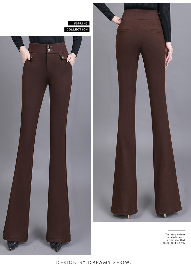 高腰喇叭褲棕色女微喇褲2023年春夏經典咖色韓版時尚搞皺顯瘦女褲