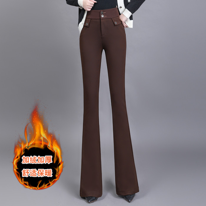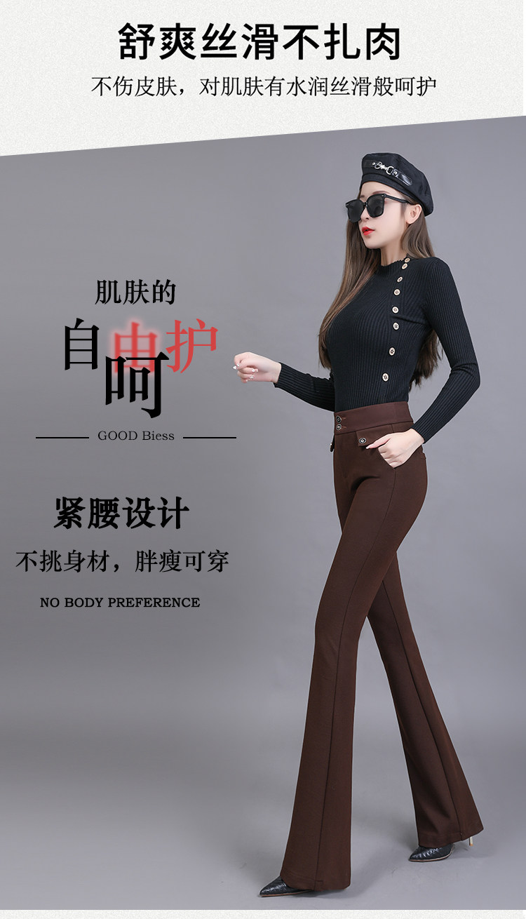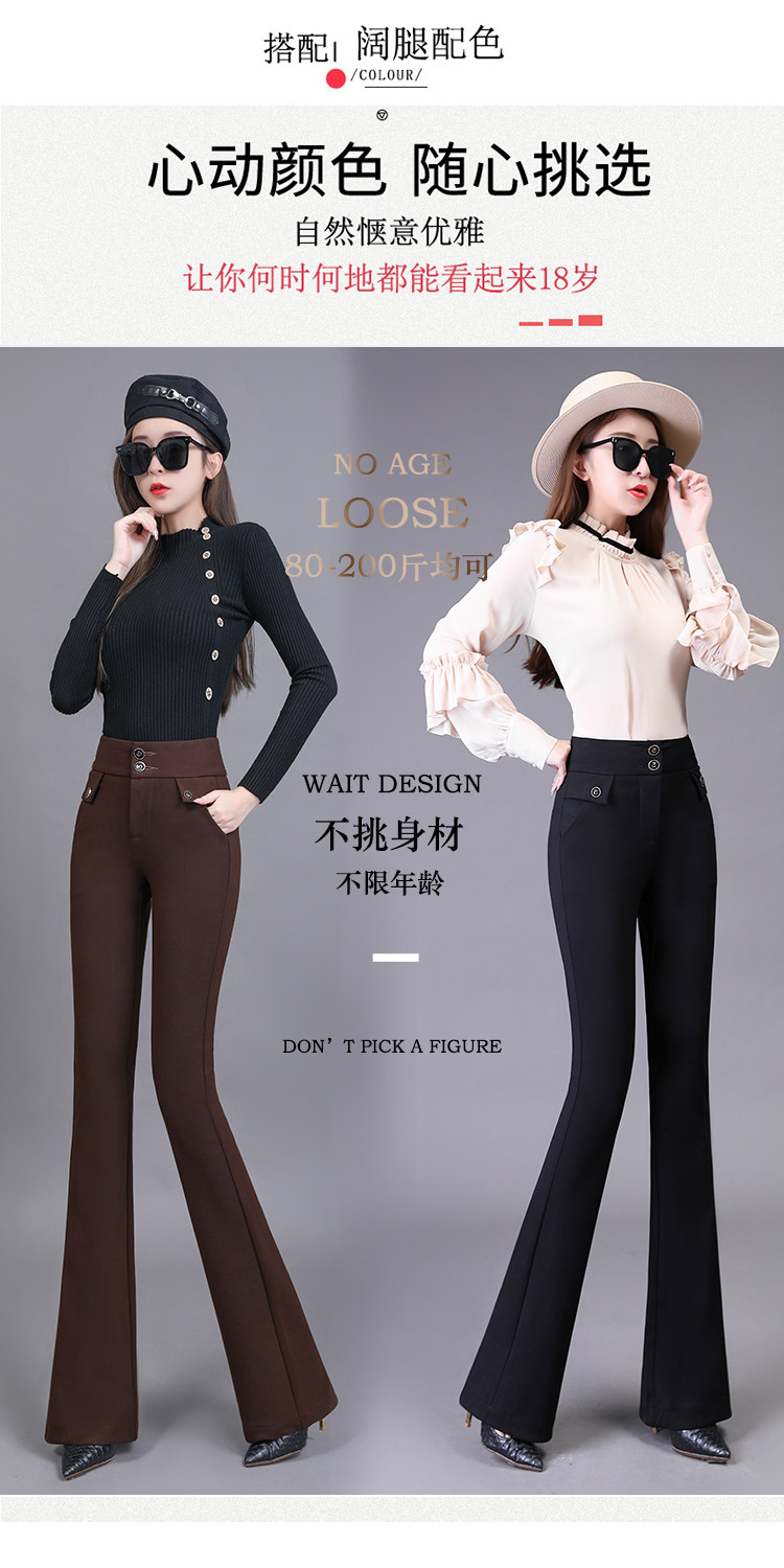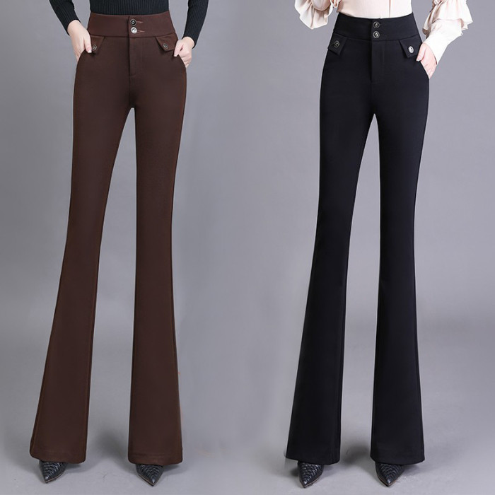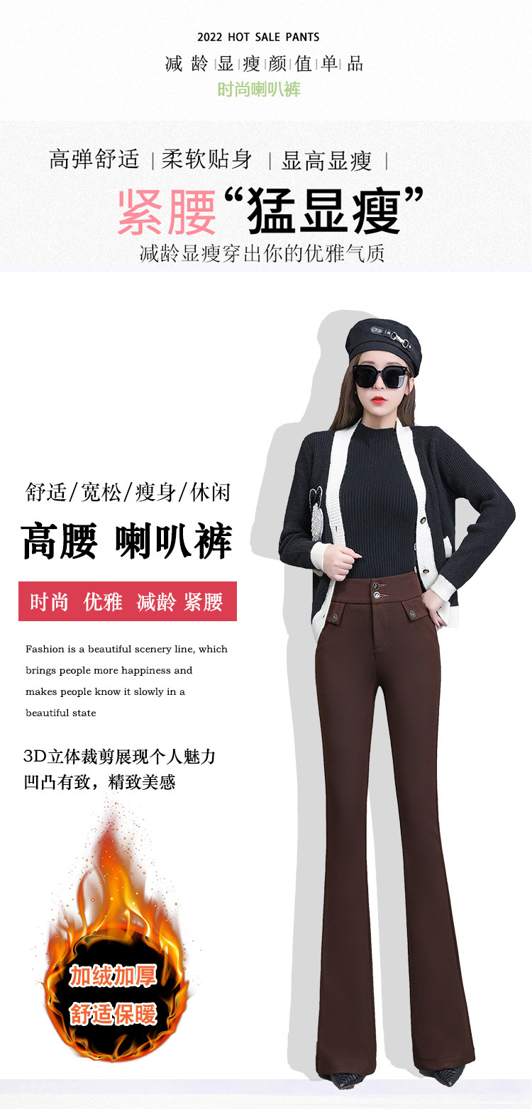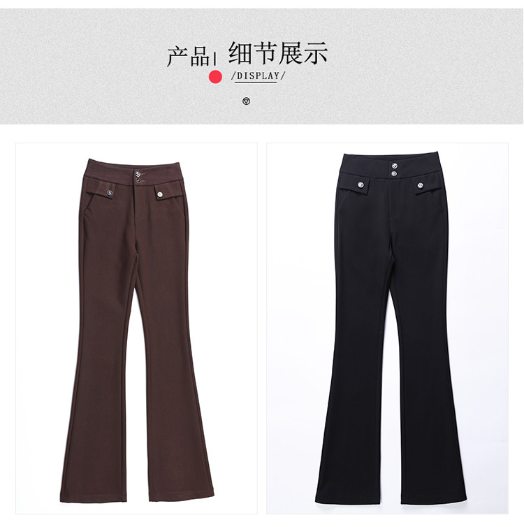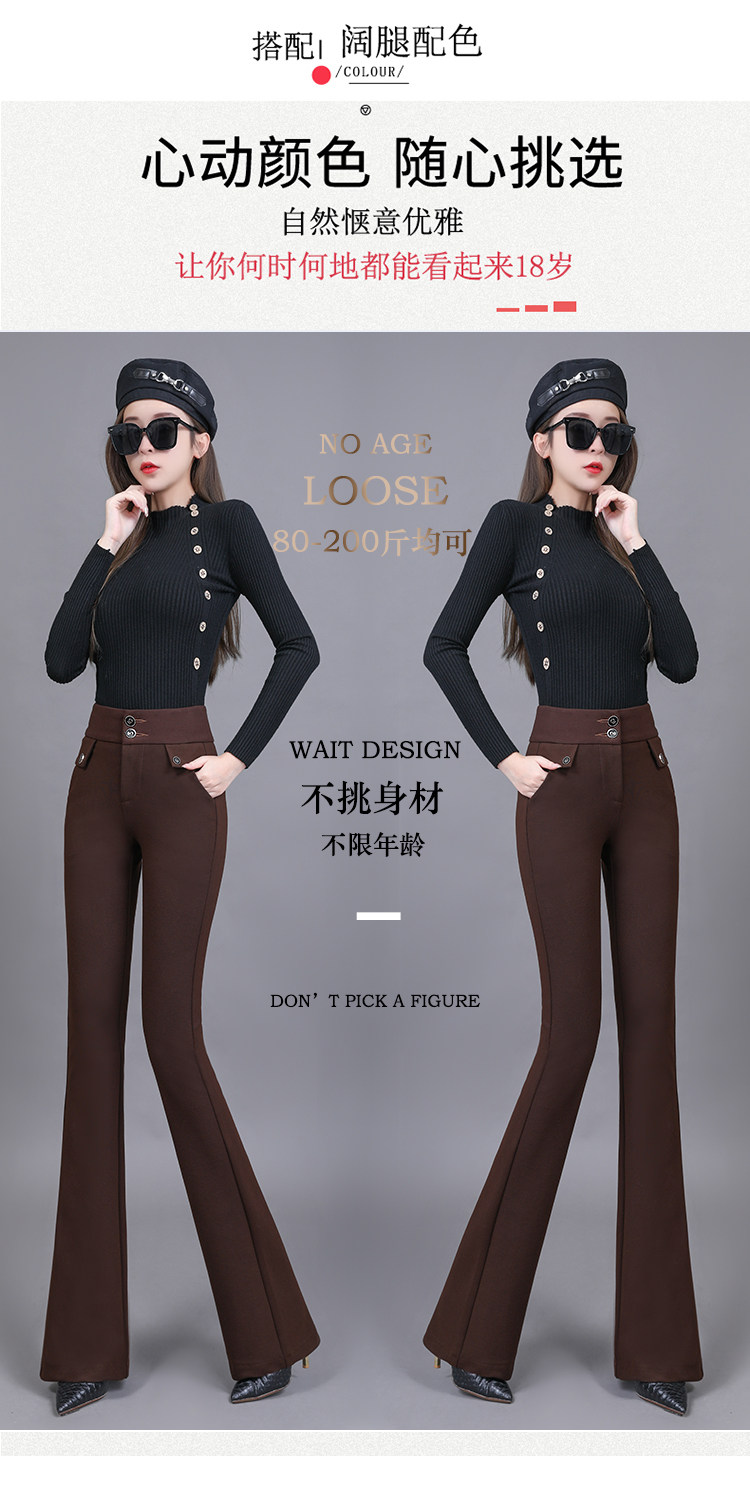 高腰喇叭褲棕色女微喇褲2023年春夏經典咖色韓版時尚搞皺顯瘦女褲