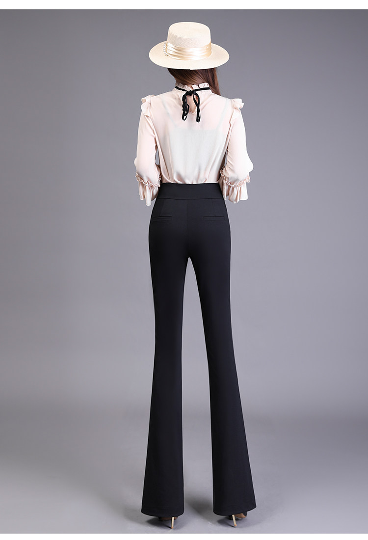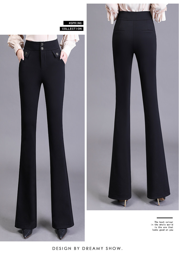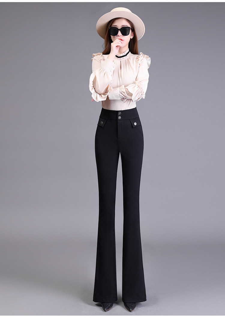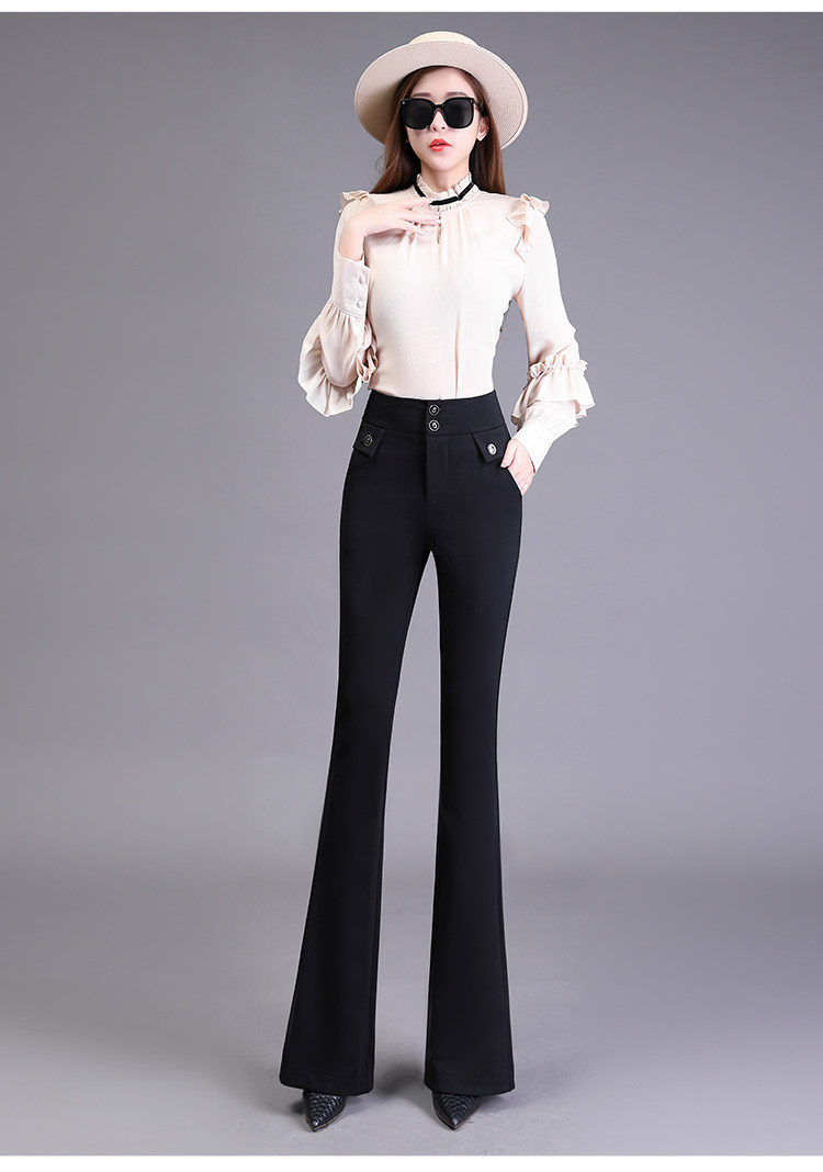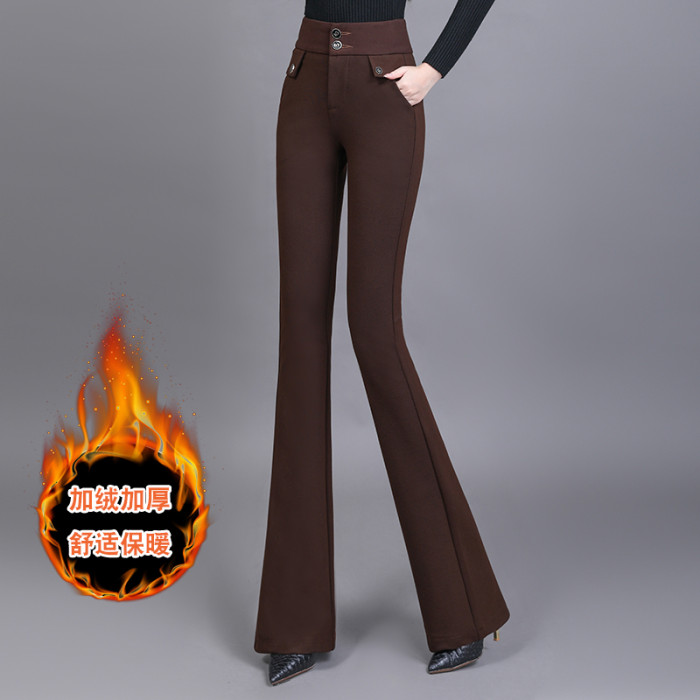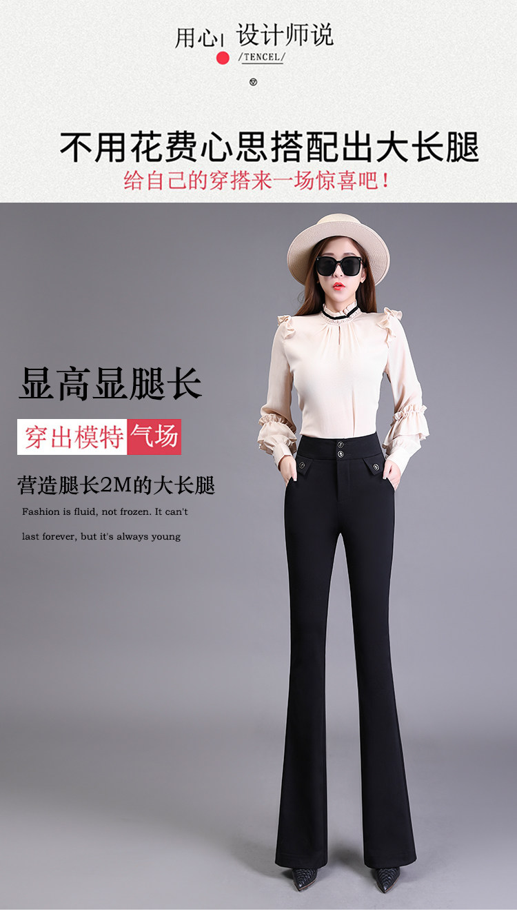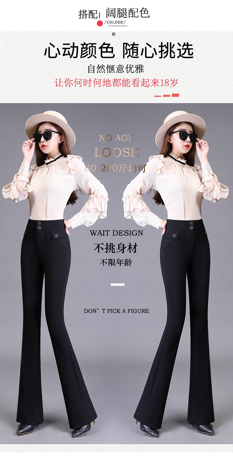 高腰喇叭褲棕色女微喇褲2023年春夏經典咖色韓版時尚搞皺顯瘦女褲