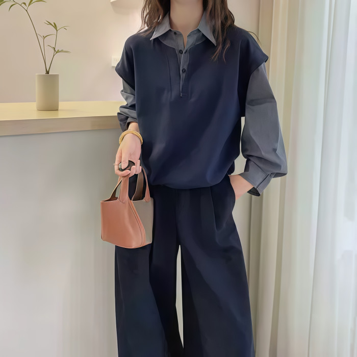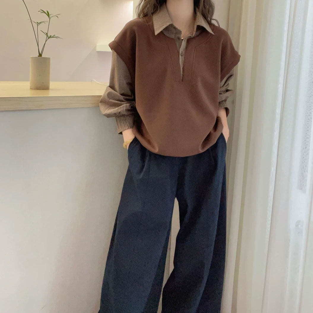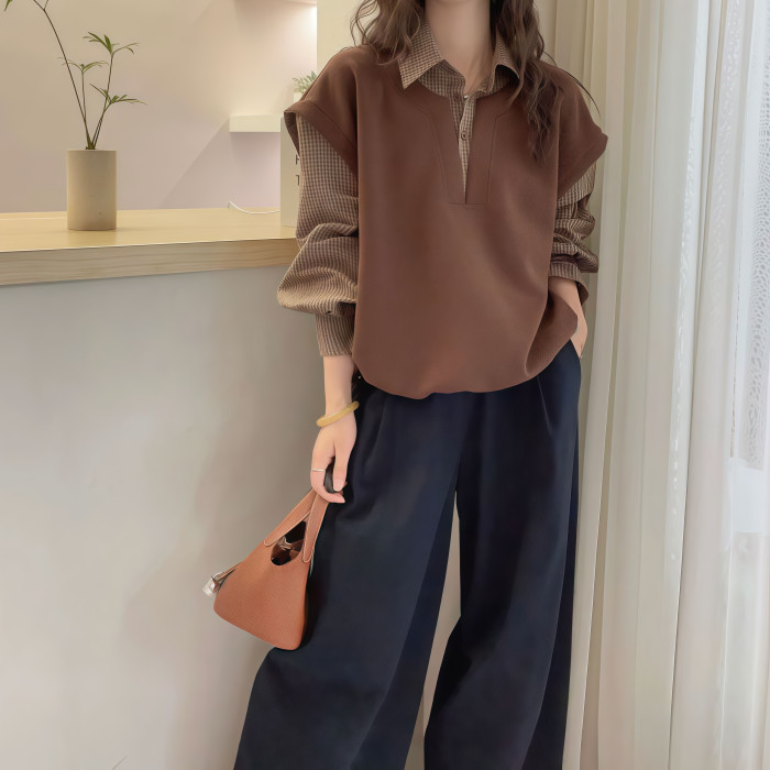 歐洲站2025秋裝新款歐貨假兩件衛衣拼接格子長袖襯衫女春秋襯衫潮