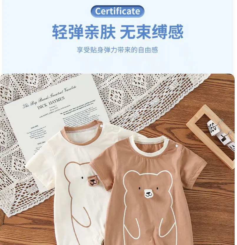 短袖可愛嬰幼兒超萌簡約連體衣男女寶寶肩釦哈衣新生兒夏季外出服
