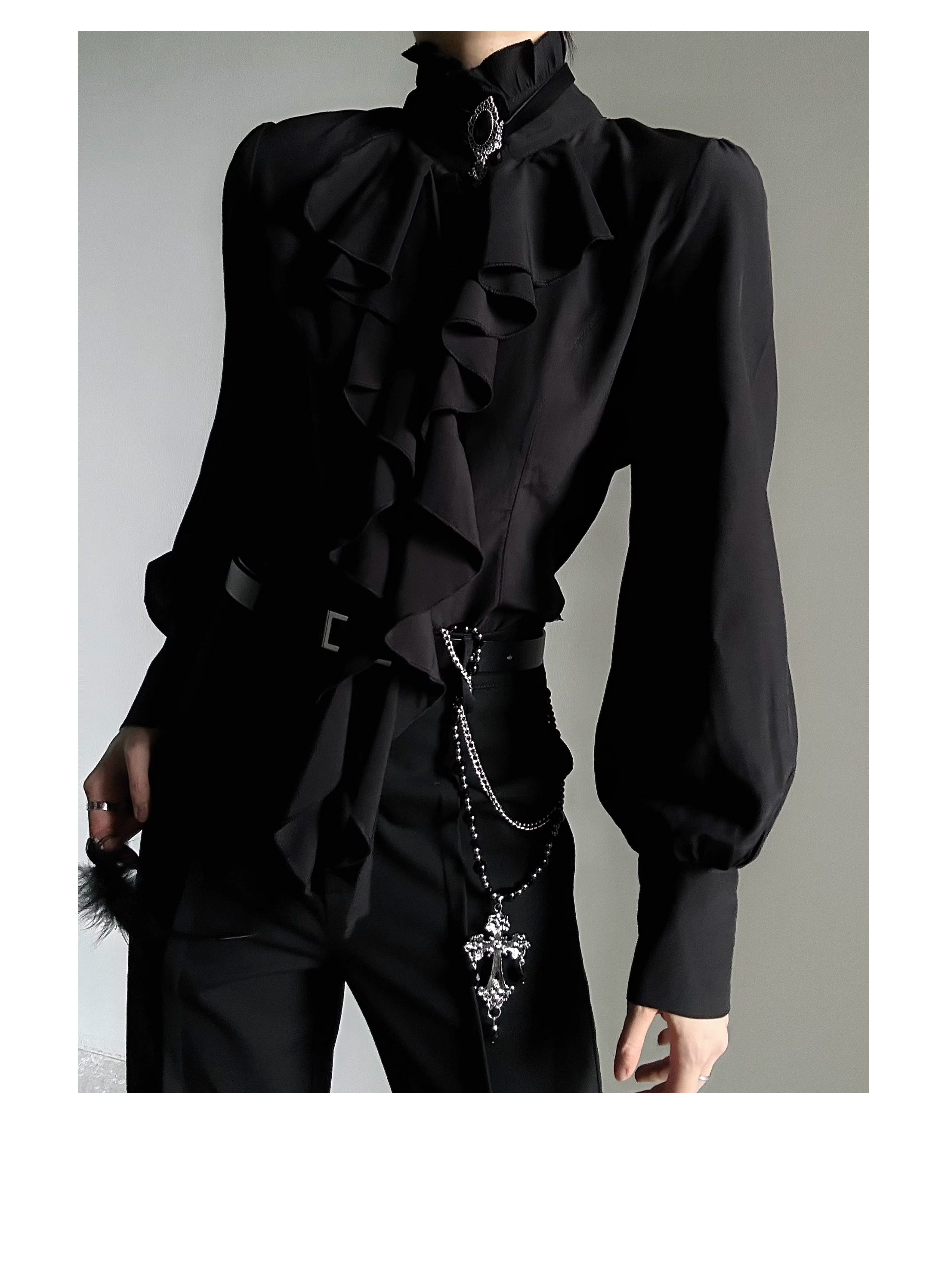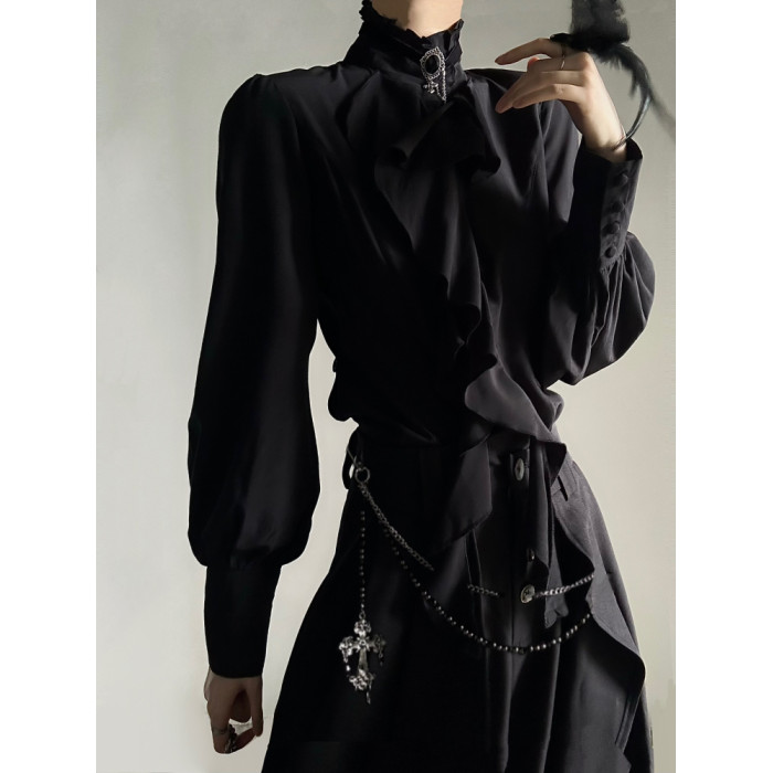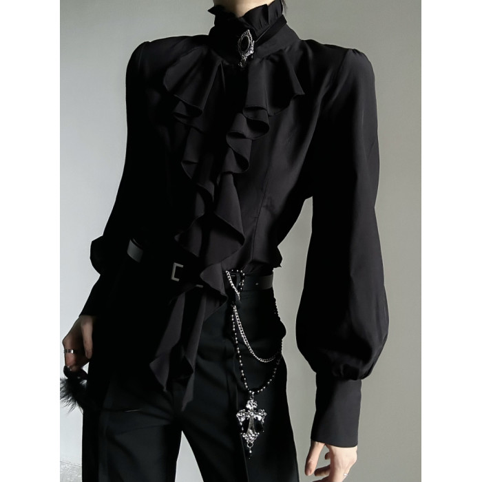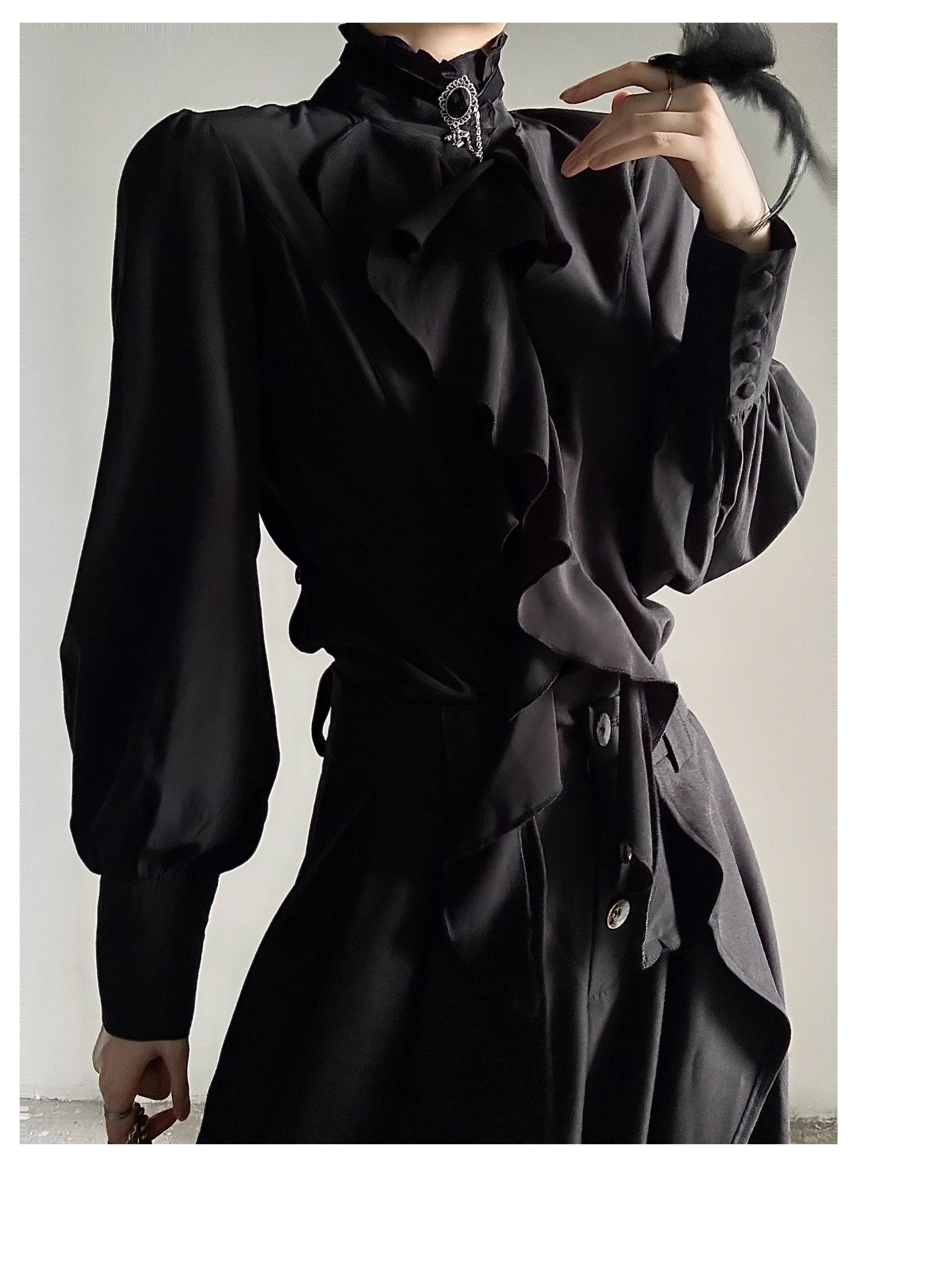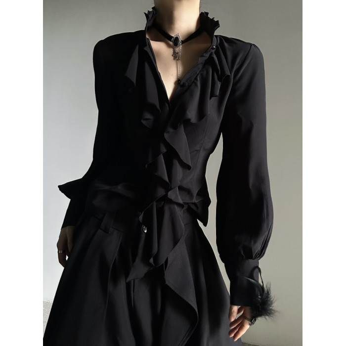 ASAE 暗黑日系復古宮廷風襯衫高級感設計感襯衫風荷葉邊襯衣