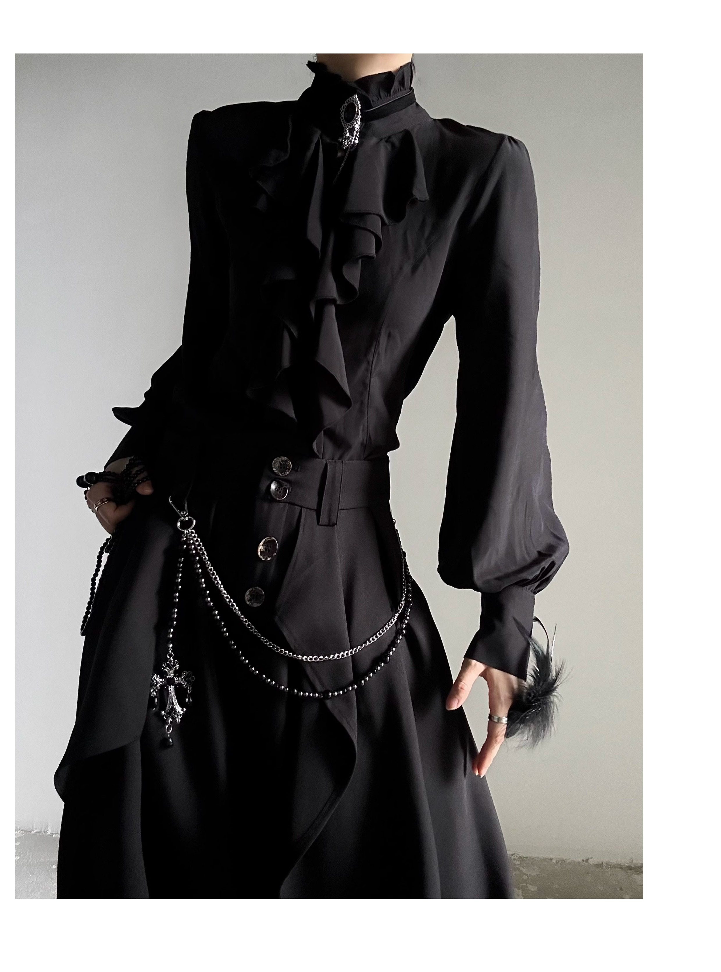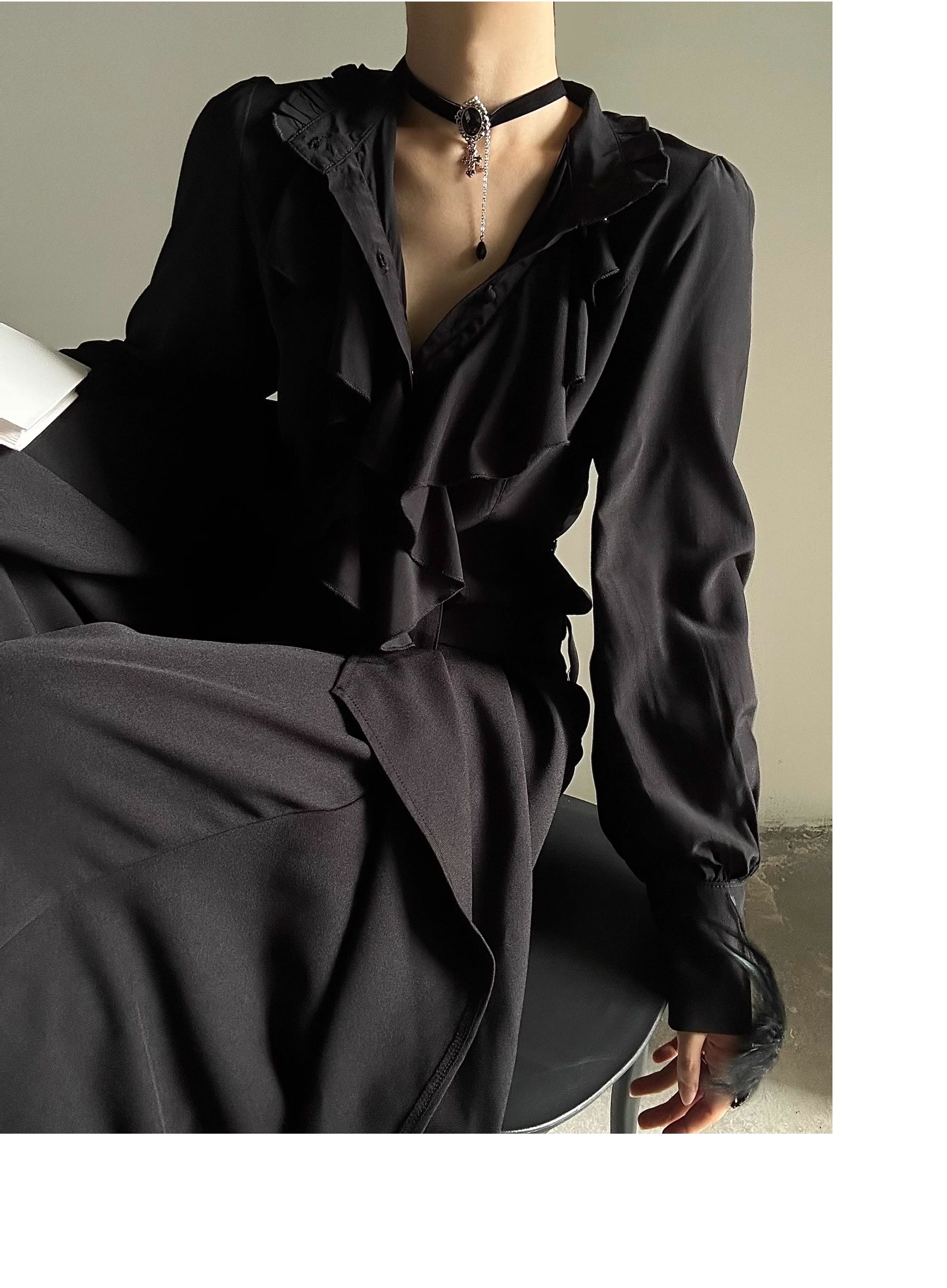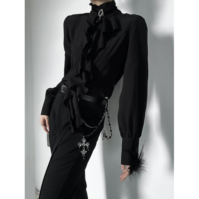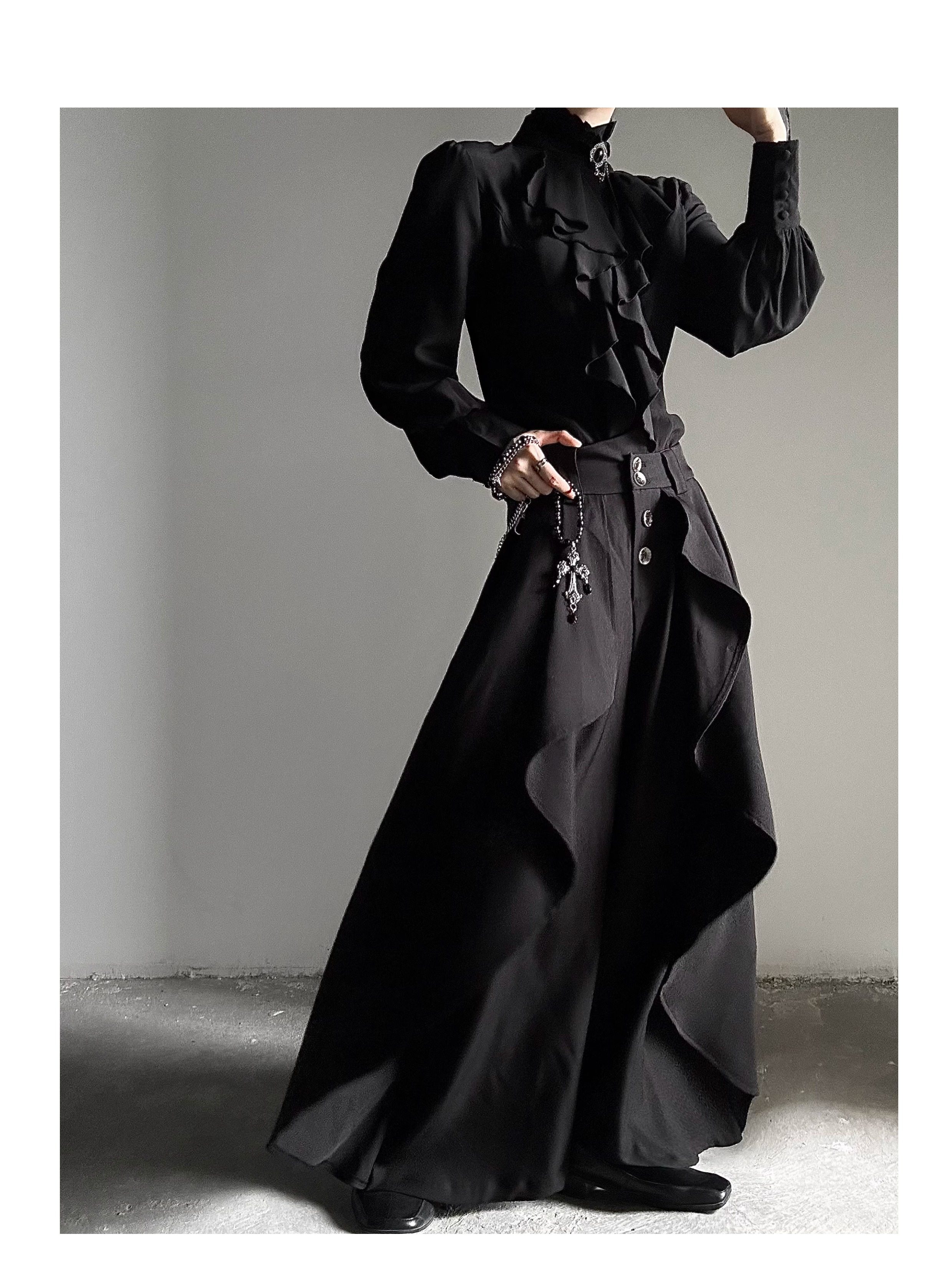 ASAE 暗黑日系復古宮廷風襯衫高級感設計感襯衫風荷葉邊襯衣