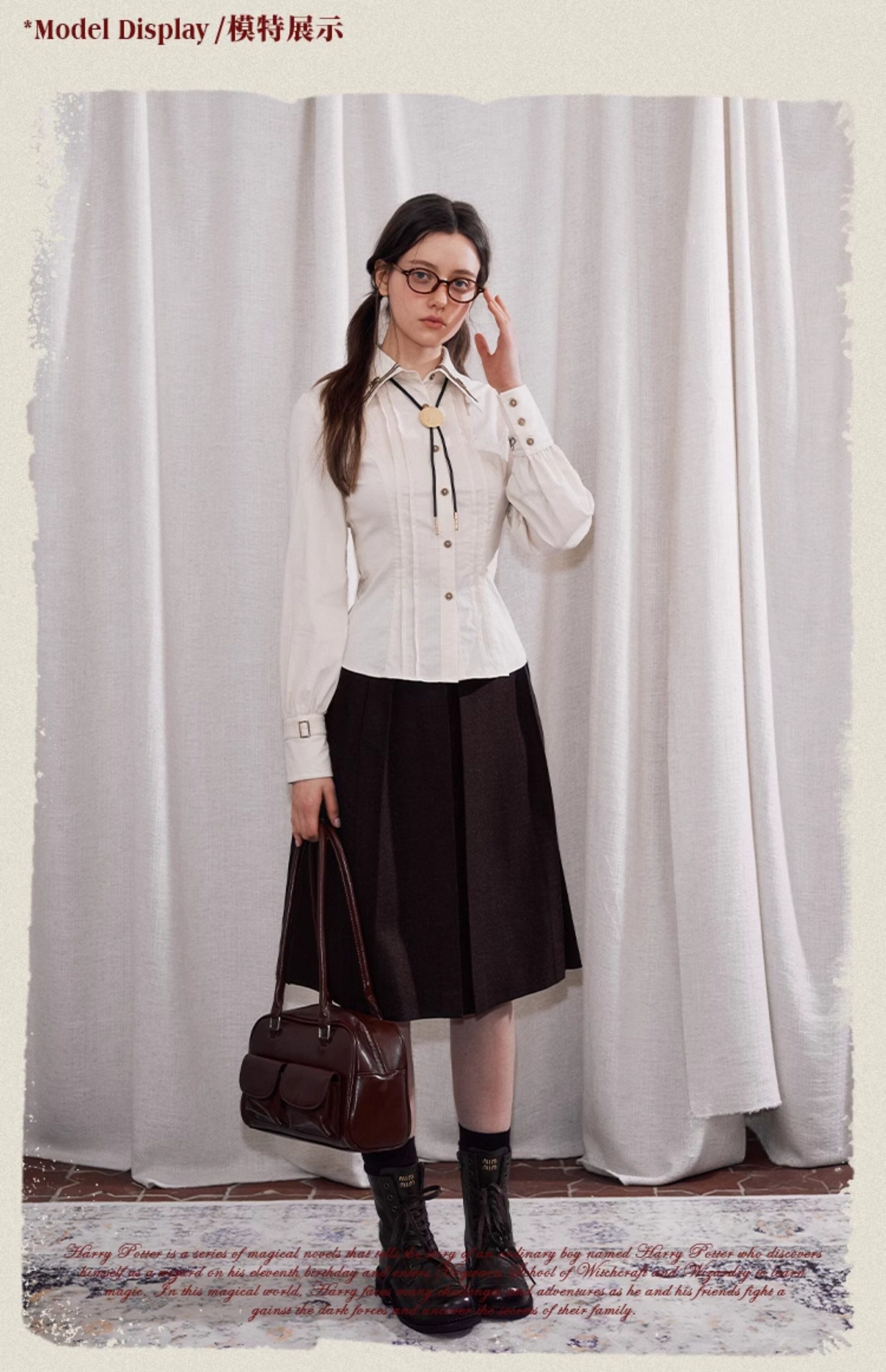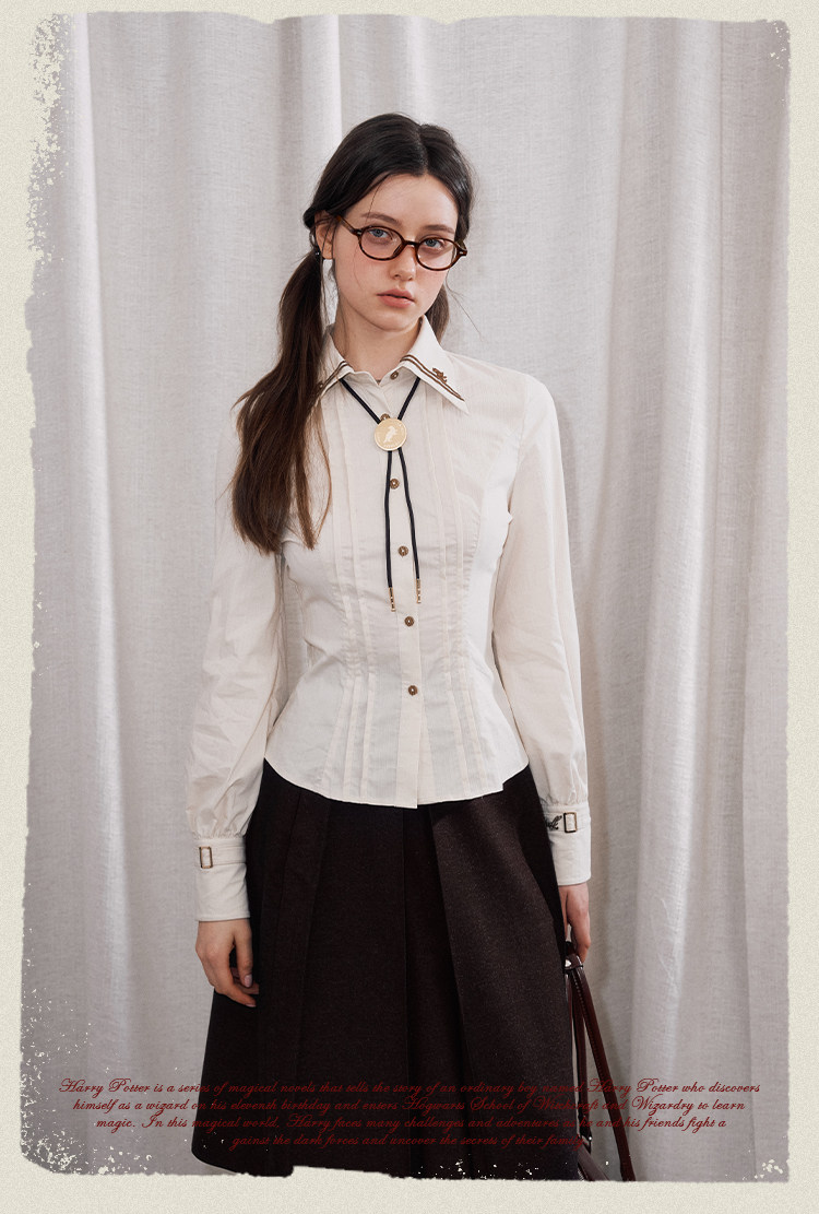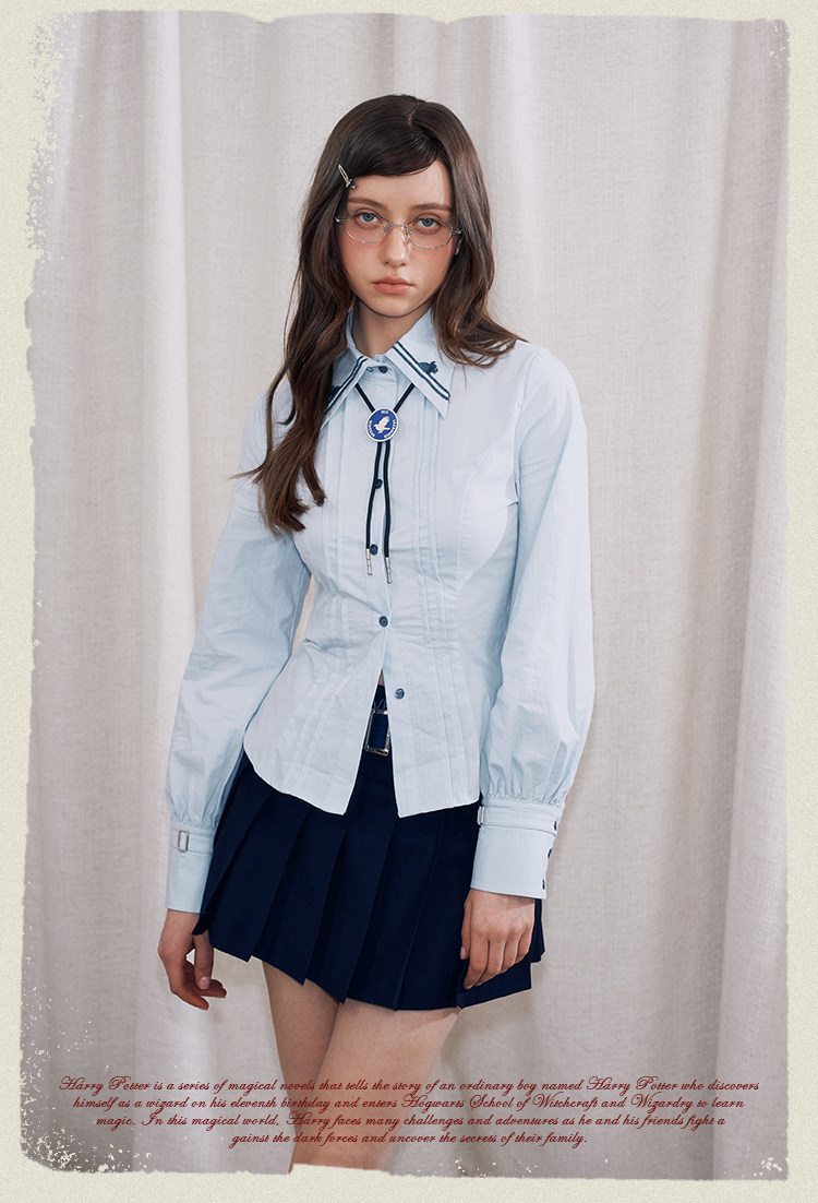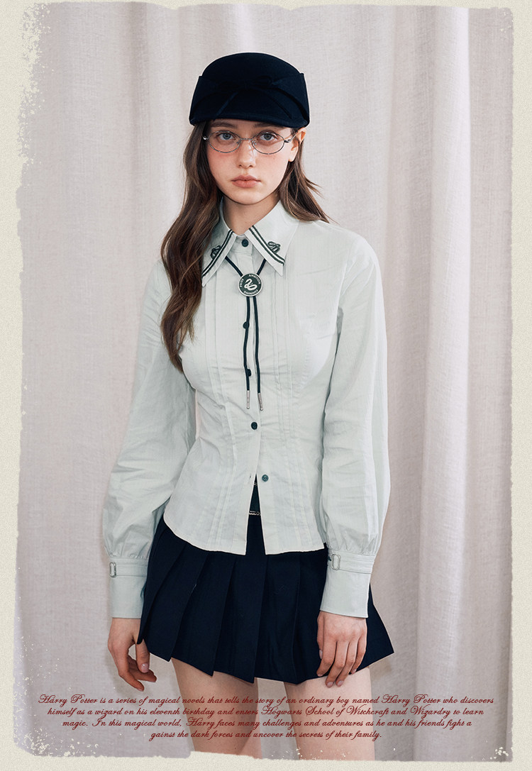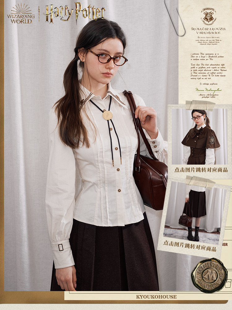 【Kyouko】哈利波特聯名正版授權條紋襯衫修身顯瘦長袖上衣女裝